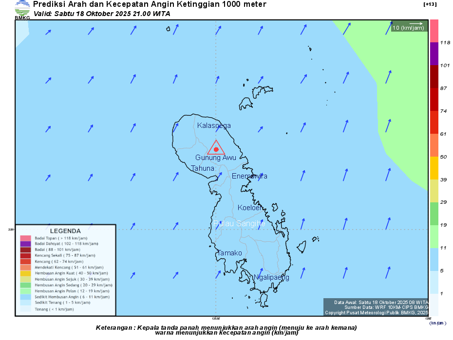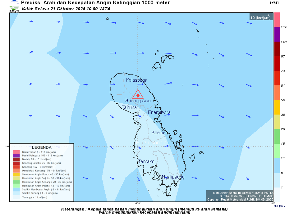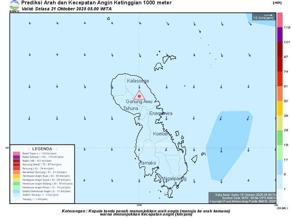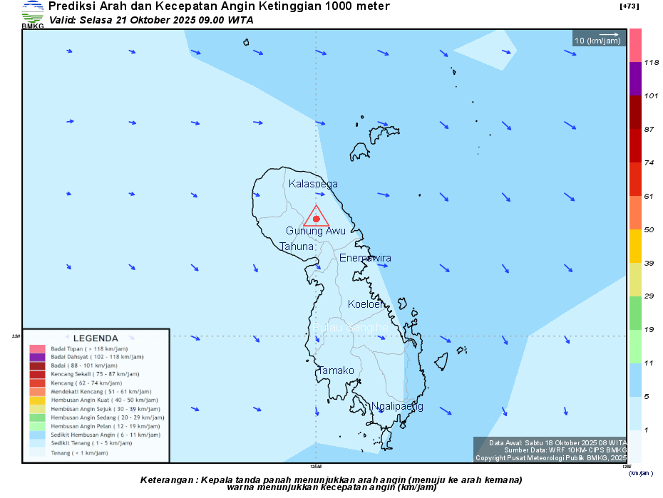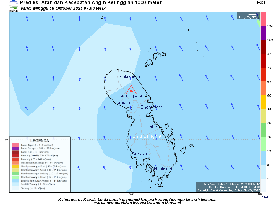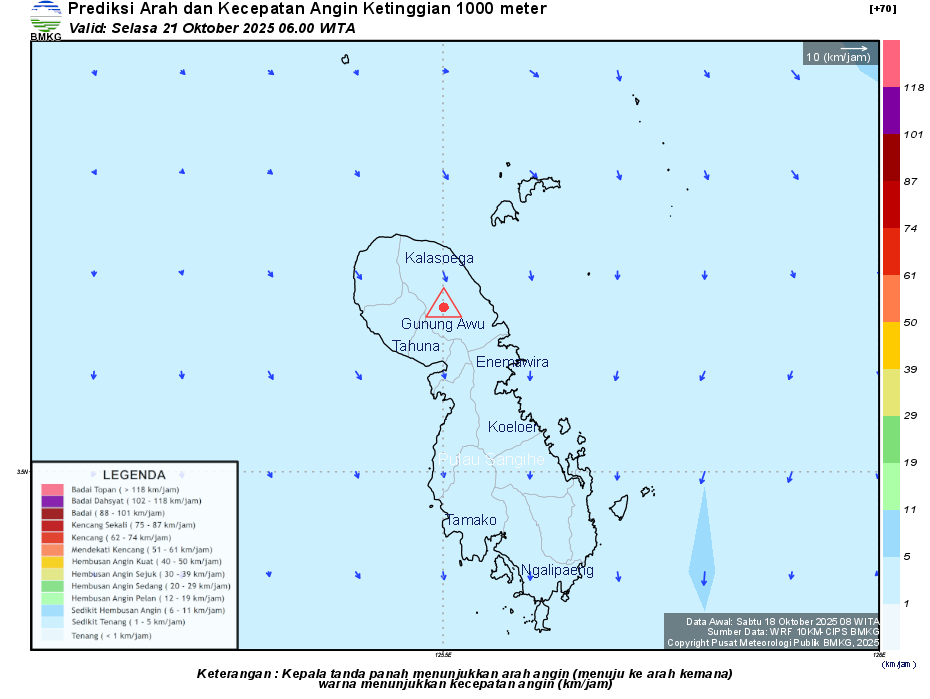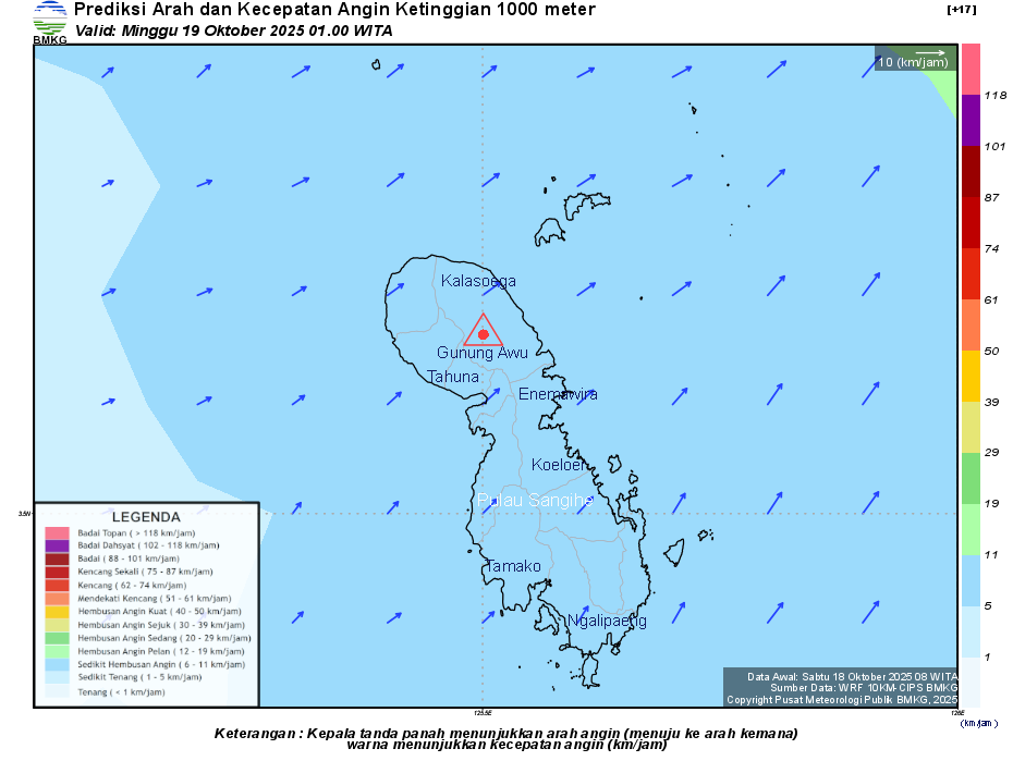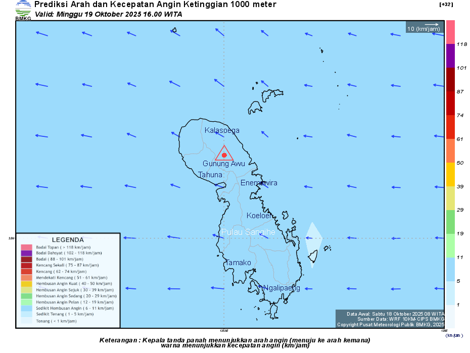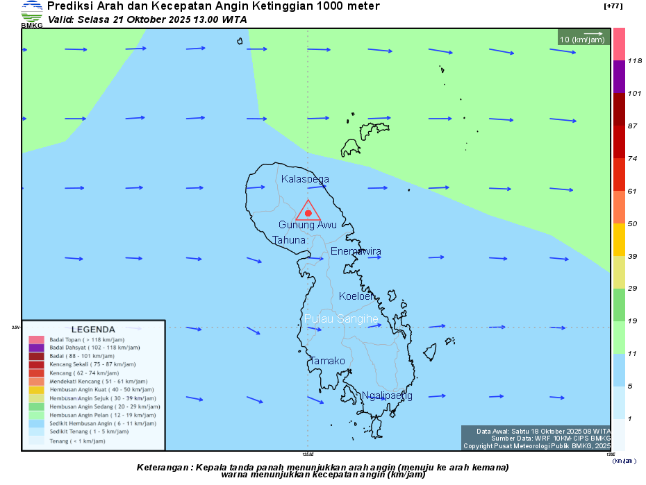 Prakiraan Angin Lapisan 10m Gunung Awu