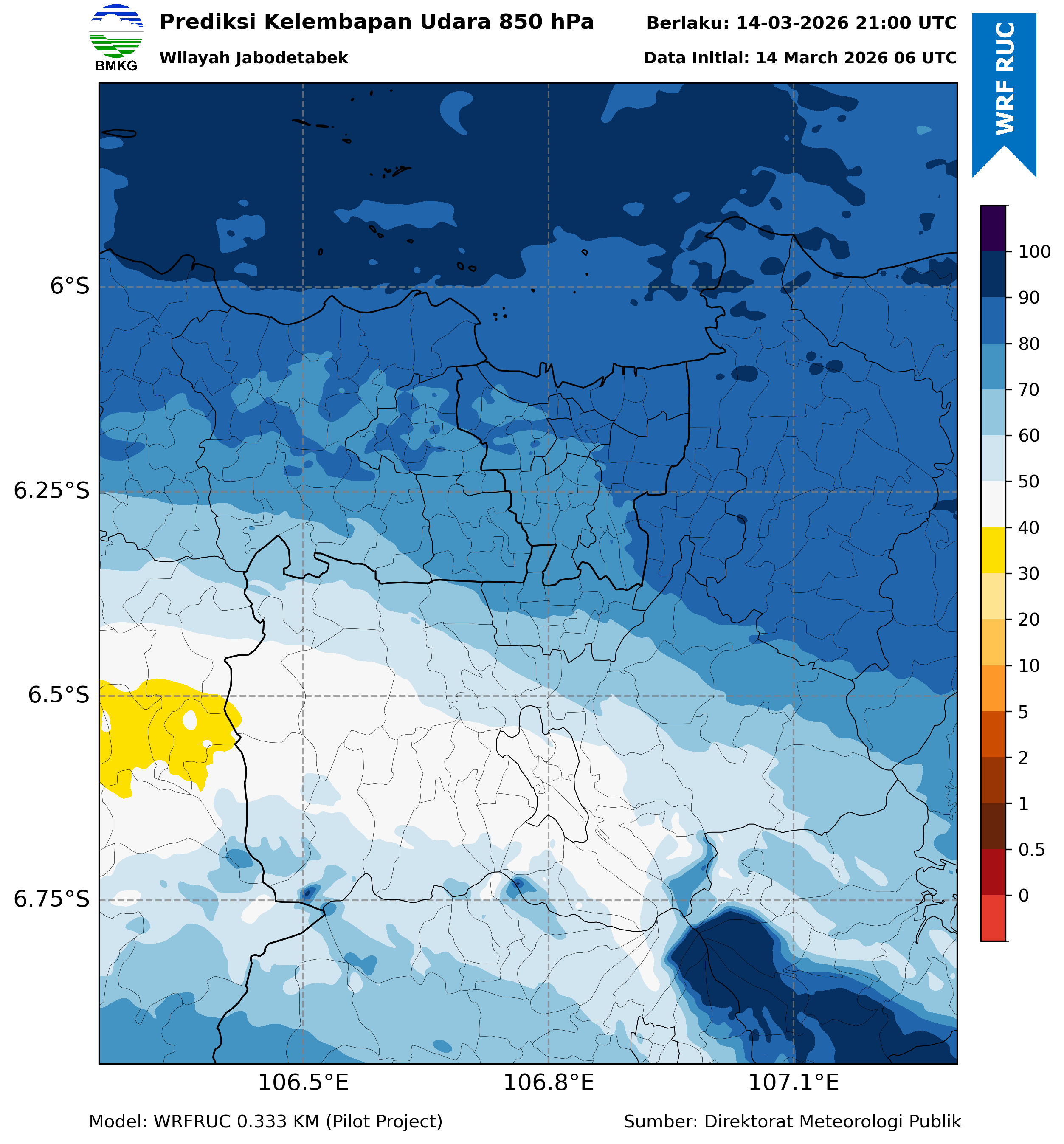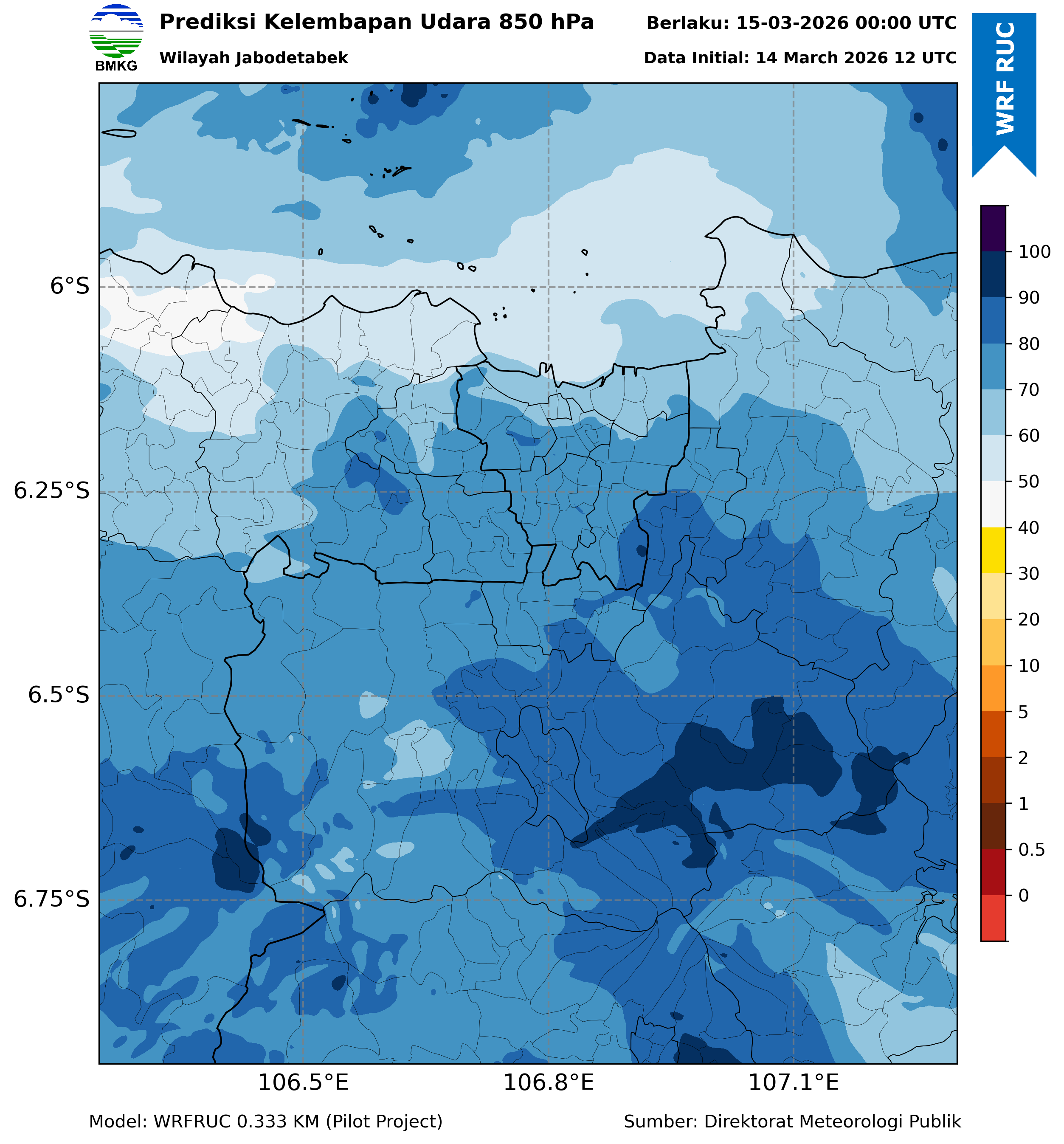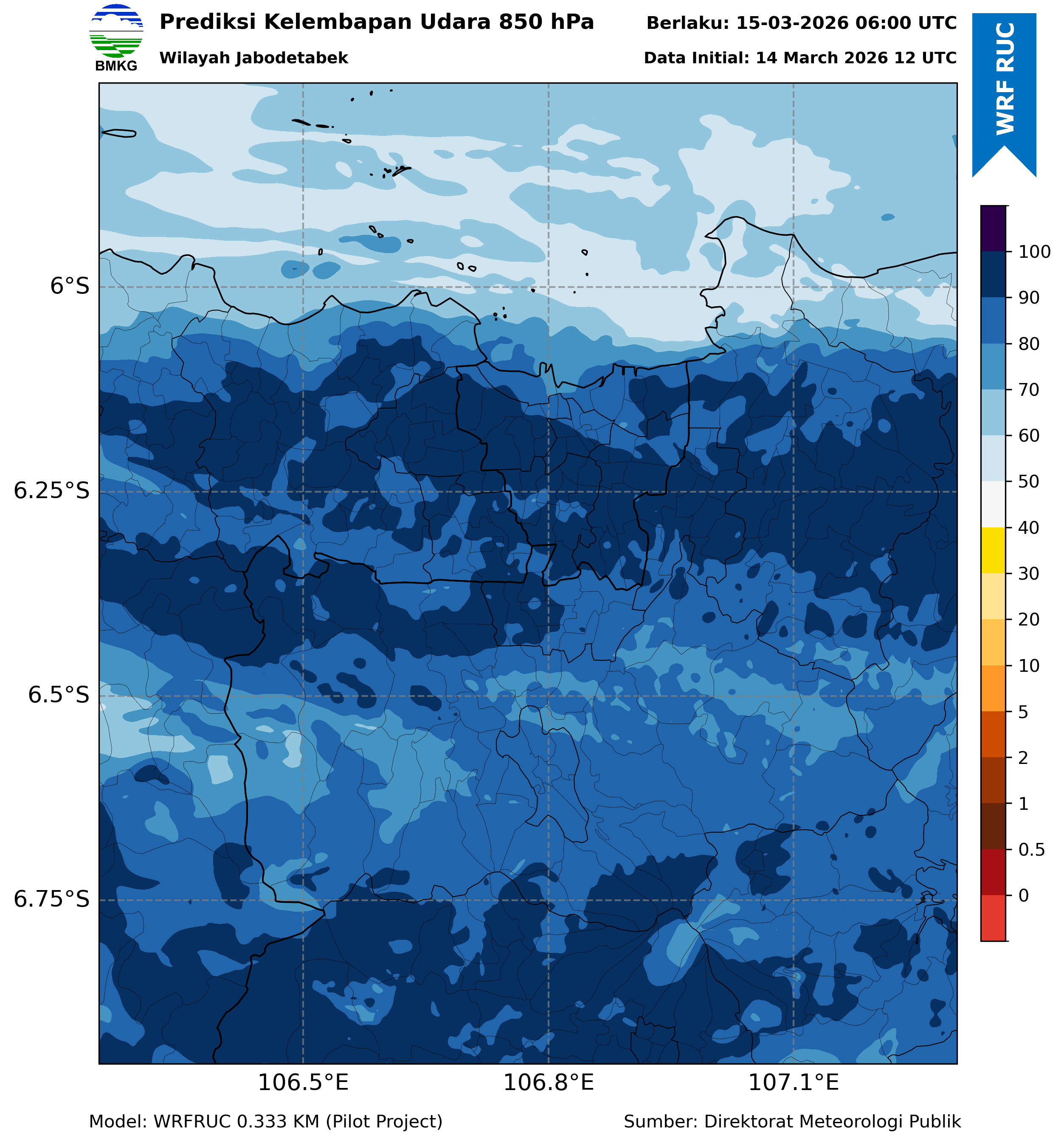 WRFDA RH Forecast 850 hPa Jakarta