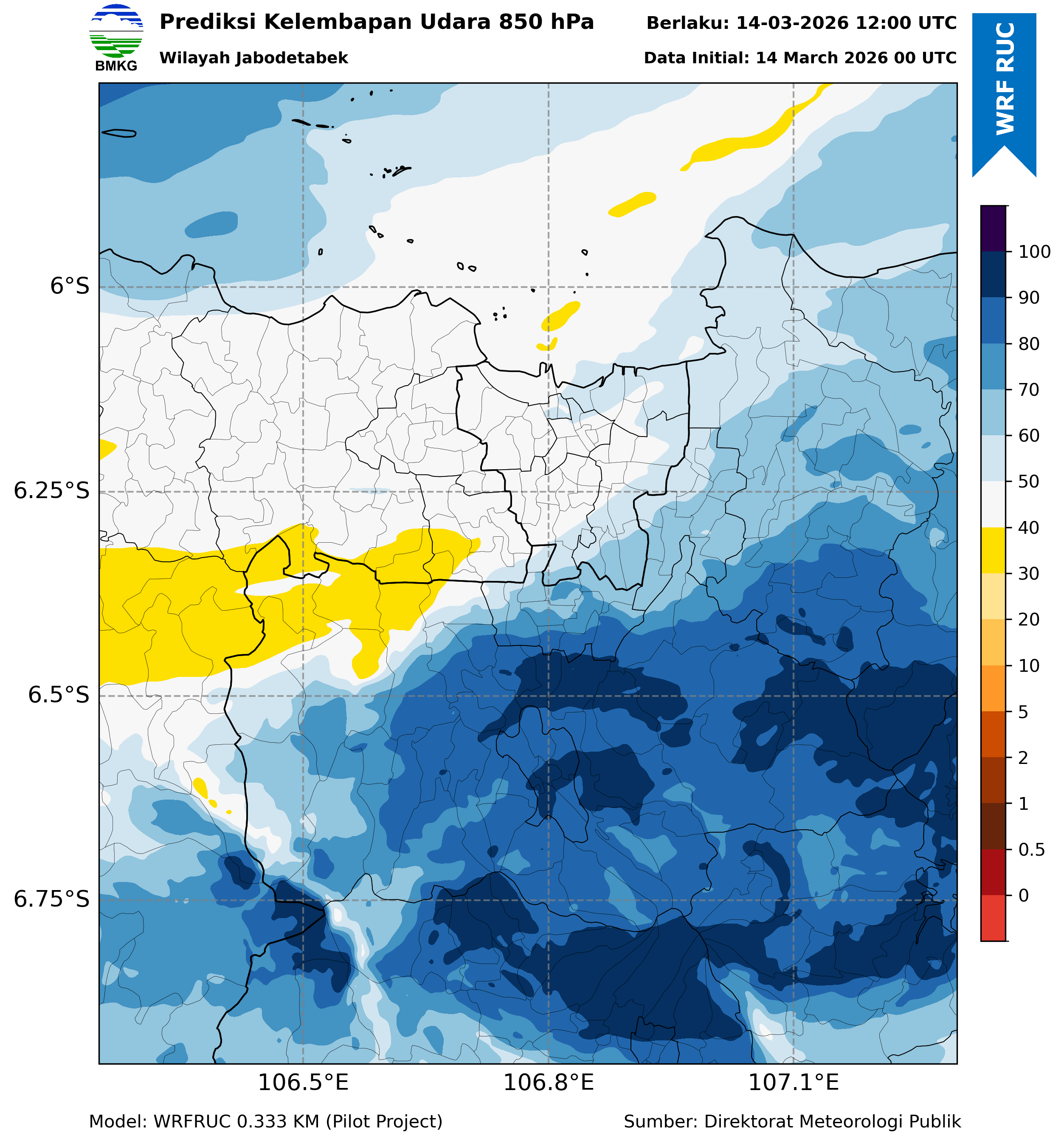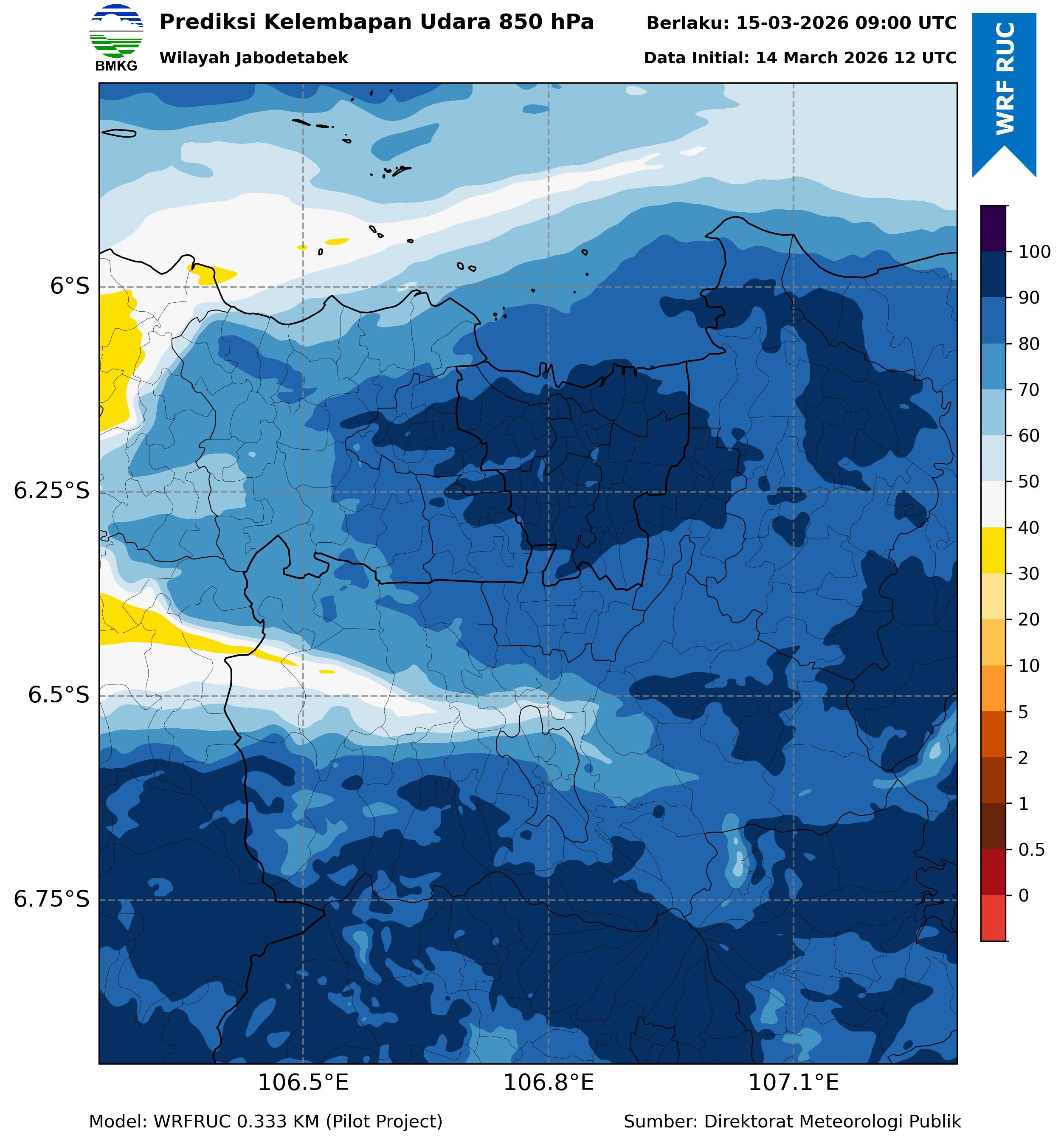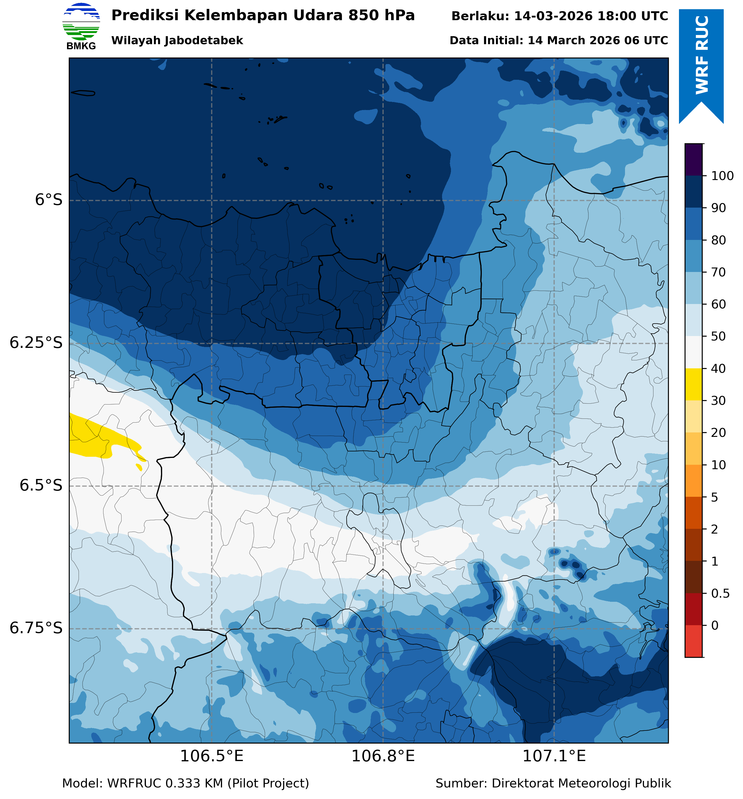 WRFDA RH Forecast 850 hPa Jakarta