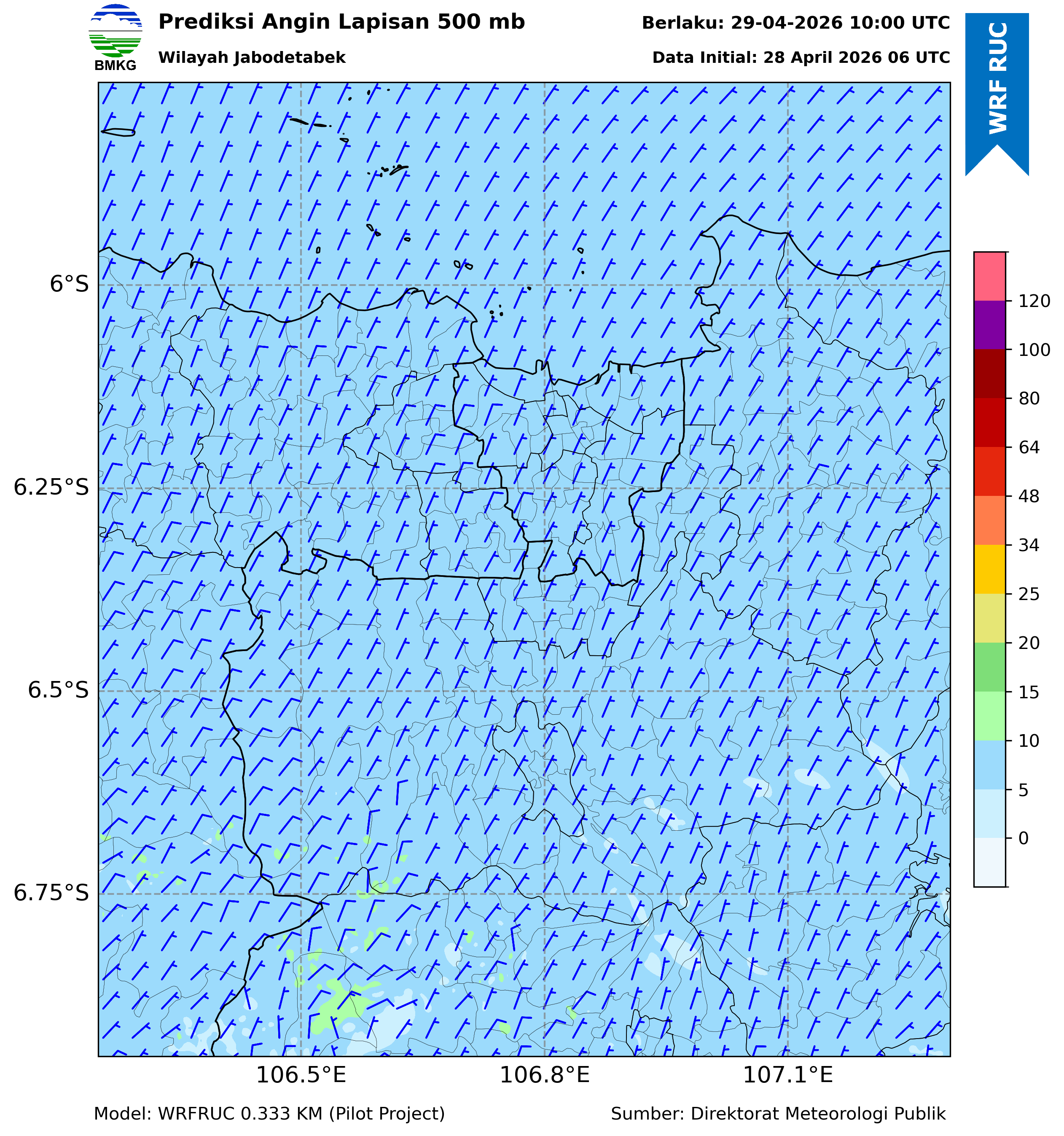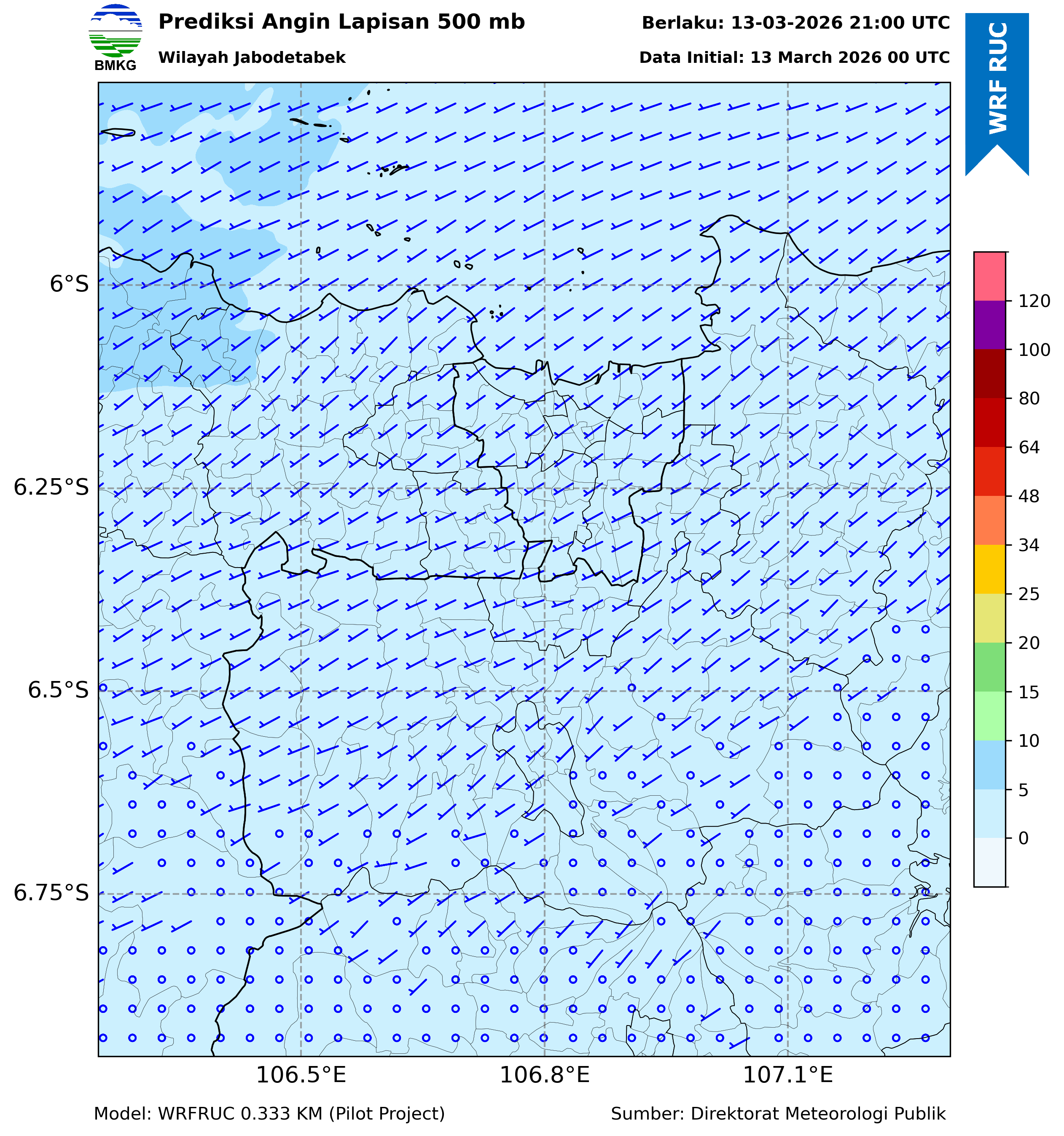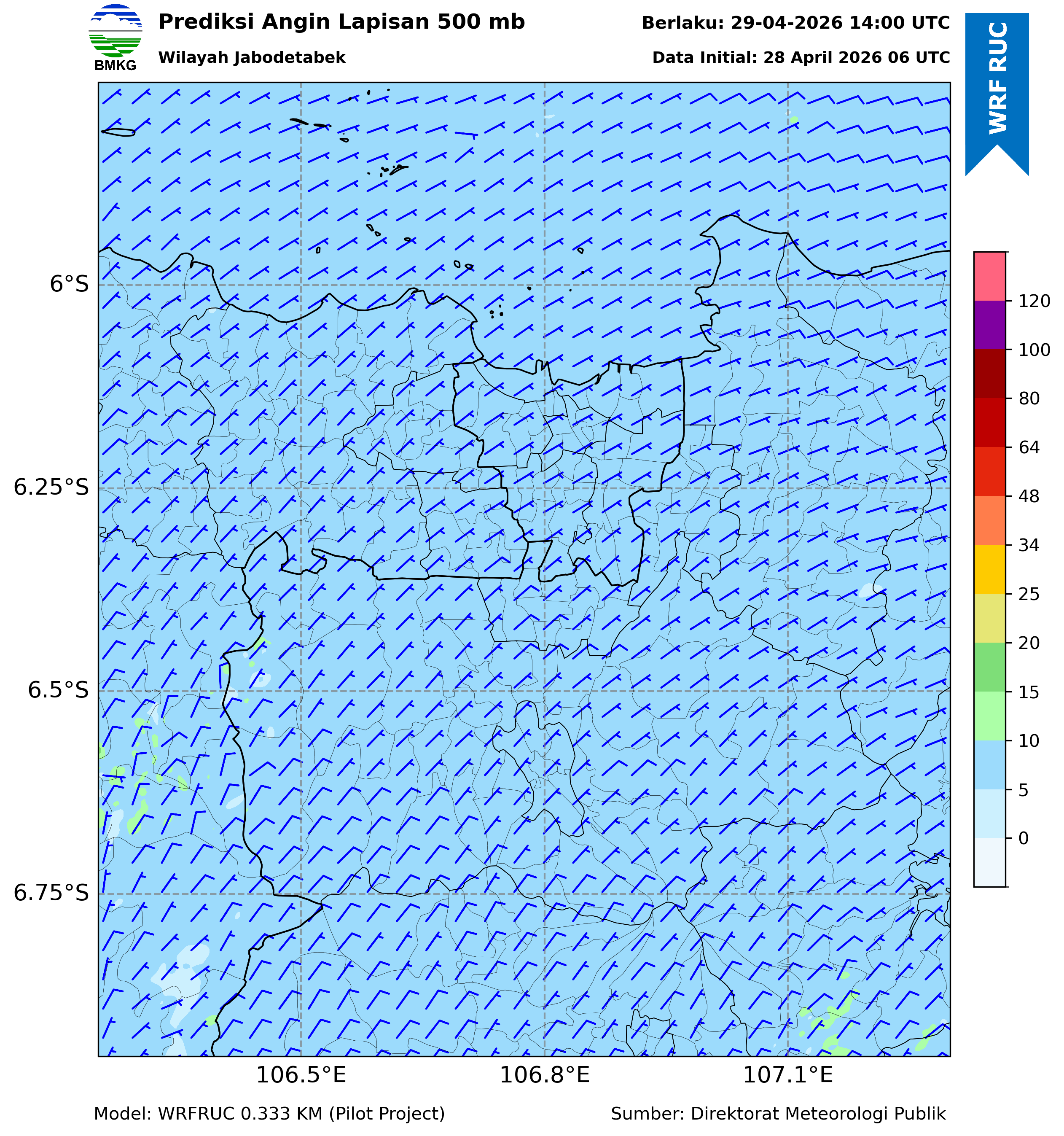 WRFDA Wind Forecast 500 hPa Jakarta