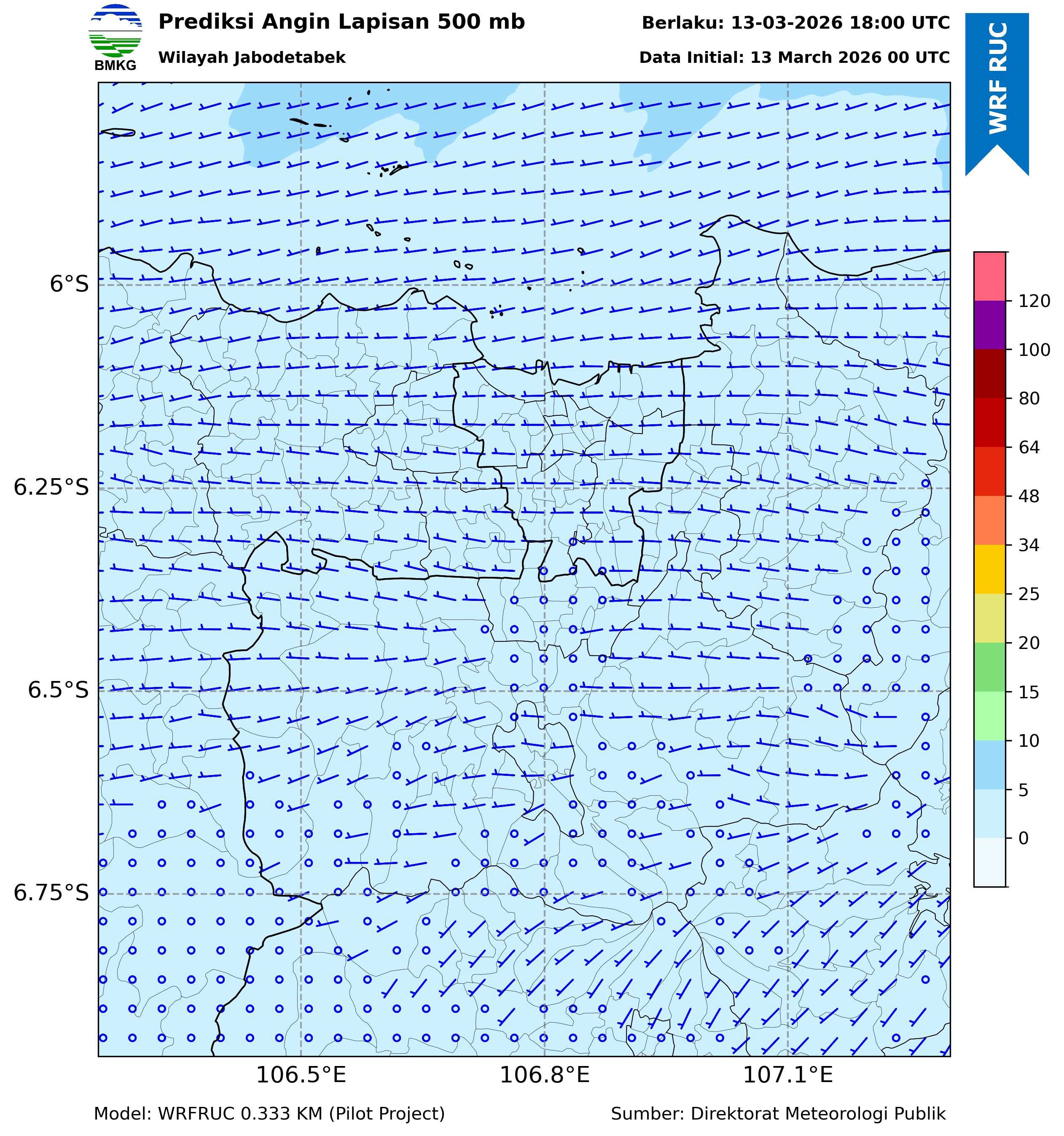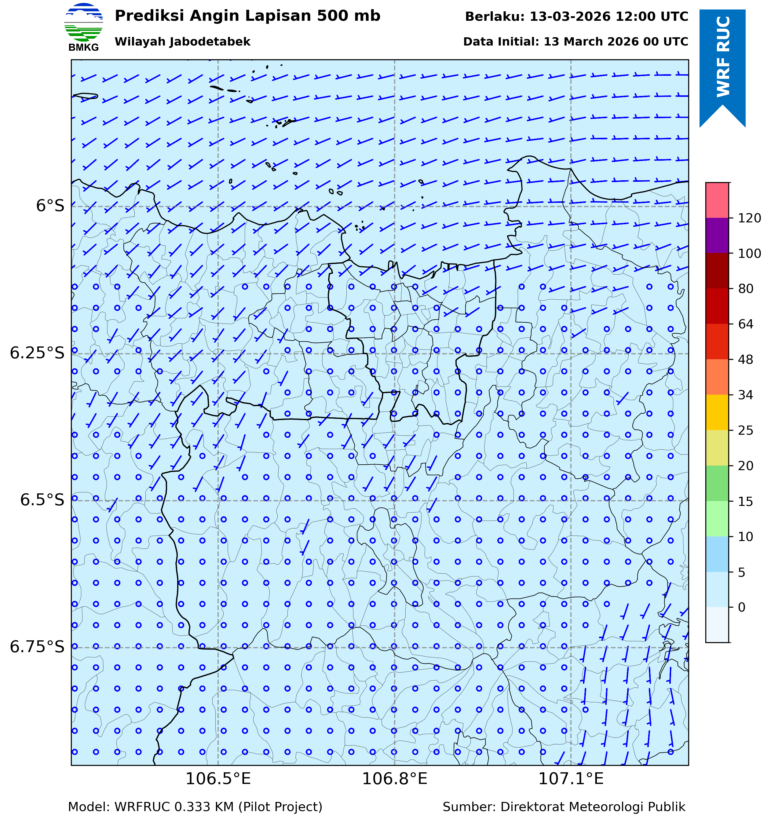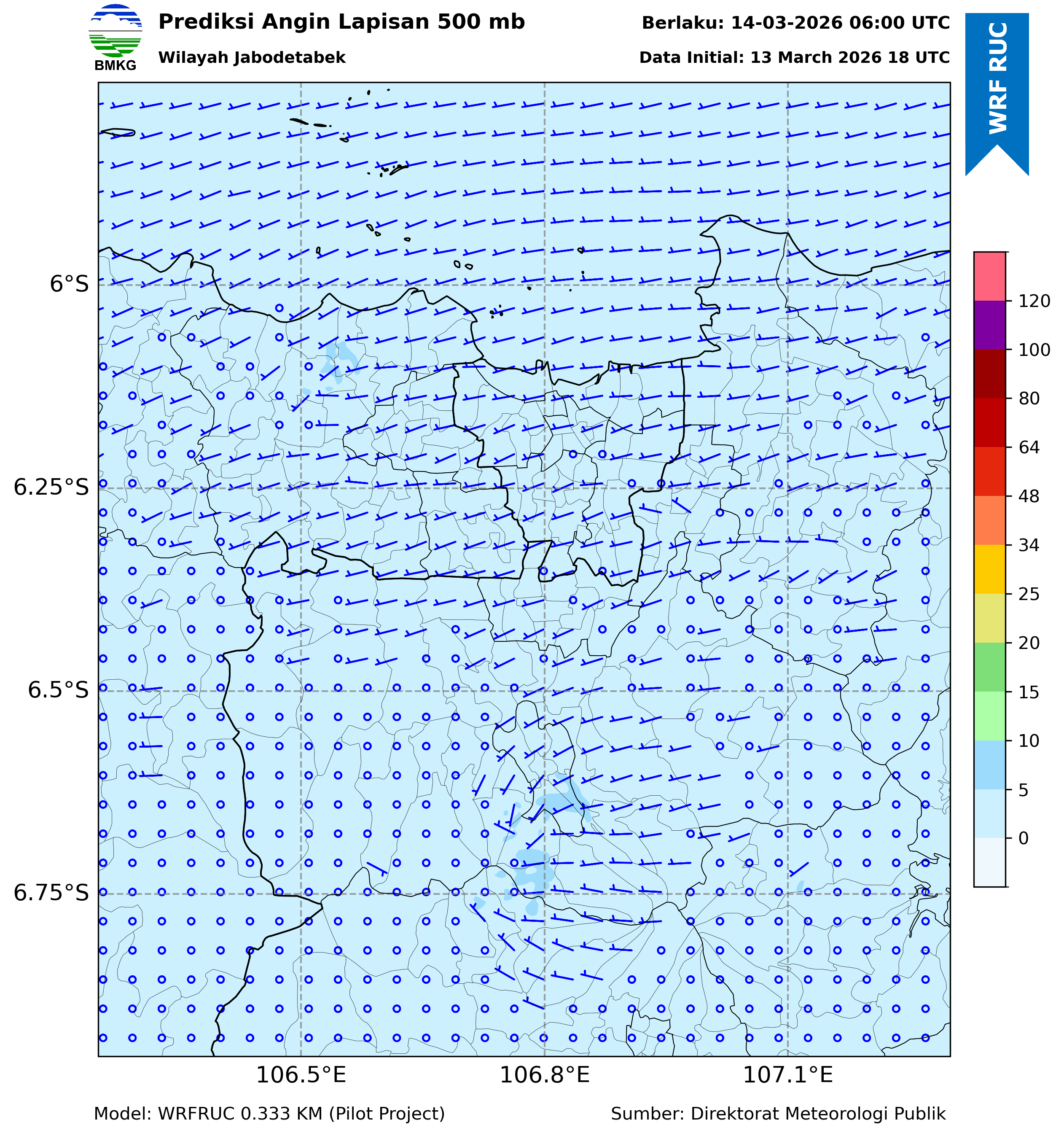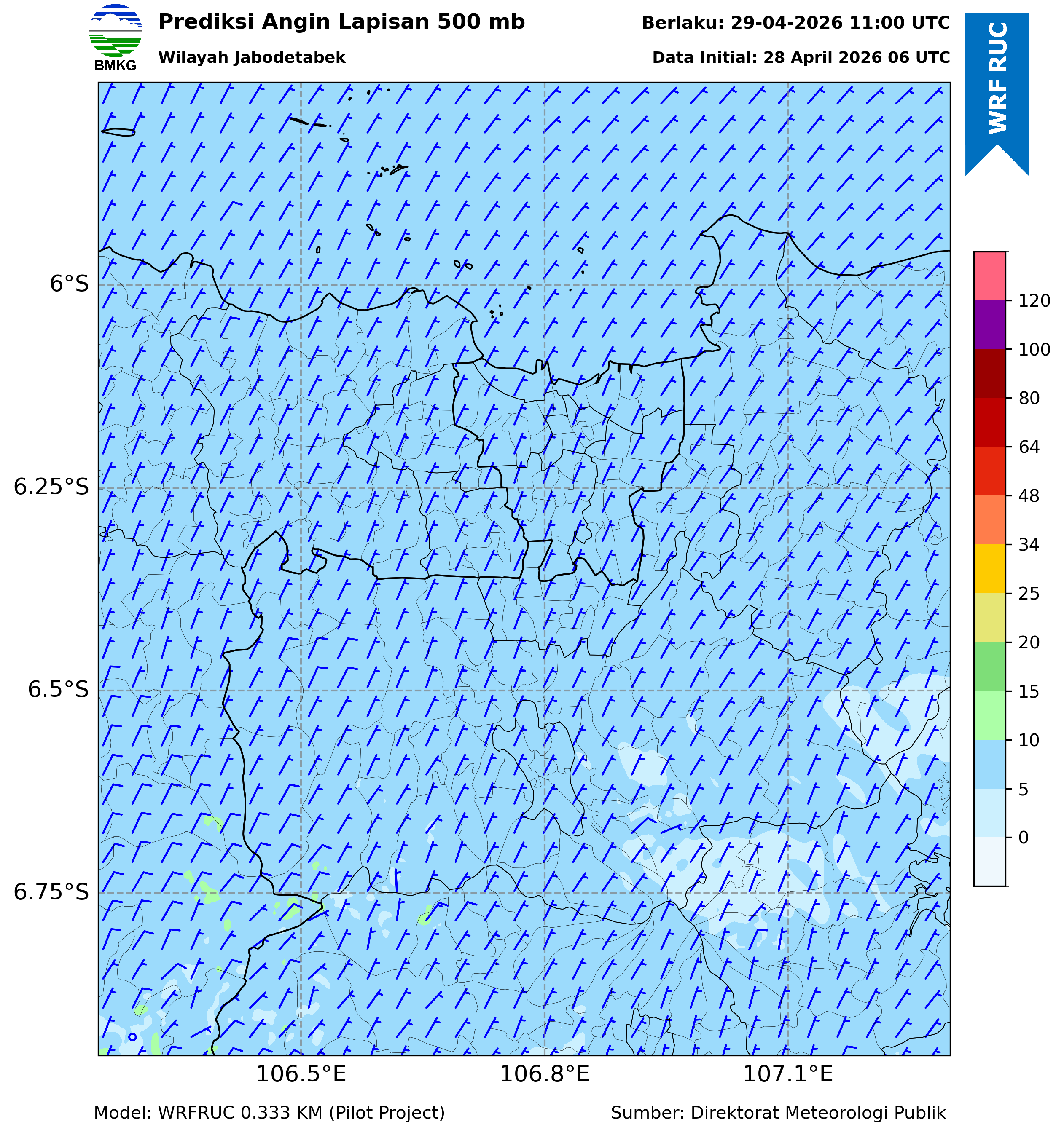WRFDA Wind Forecast 500 hPa Jakarta