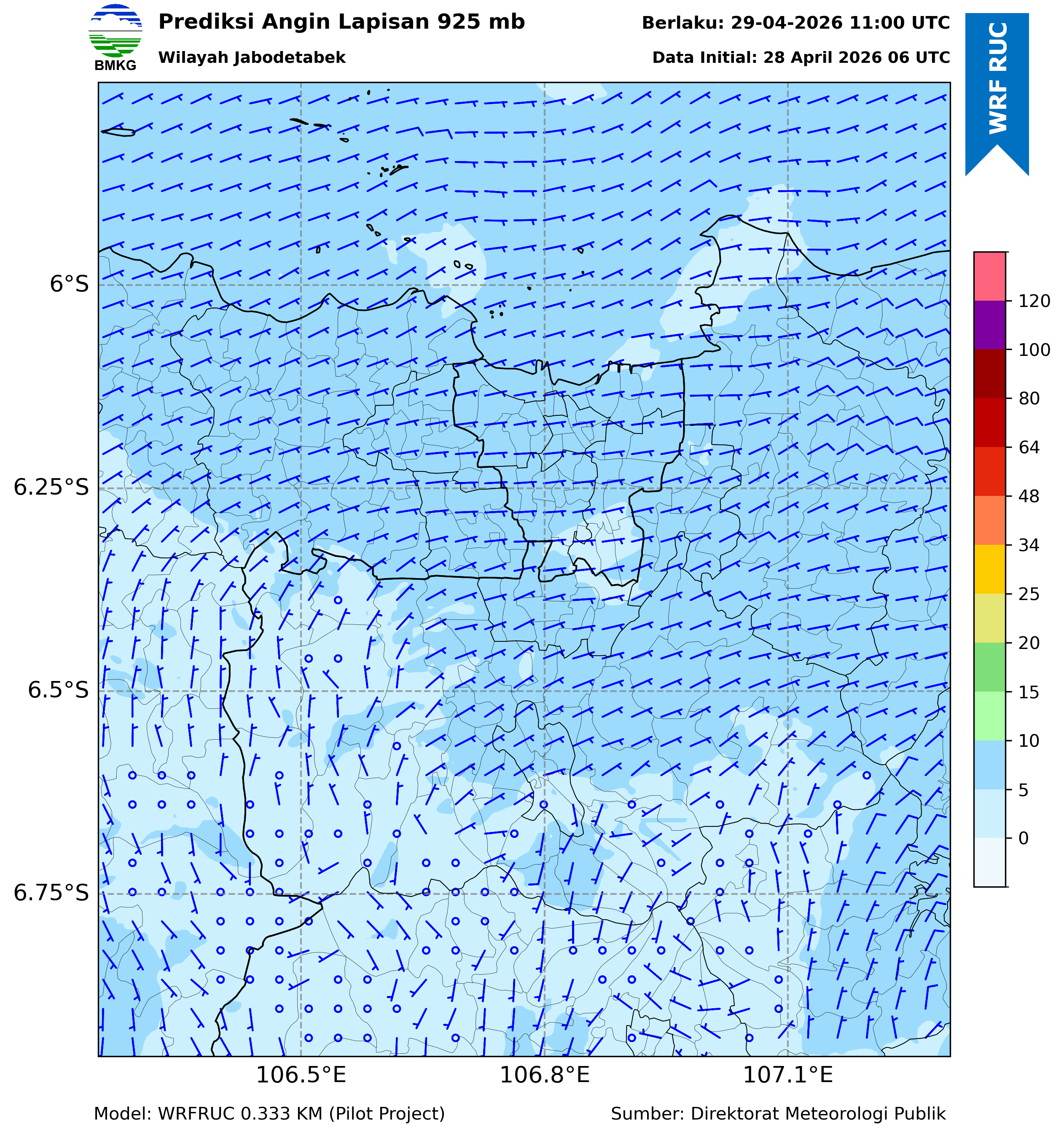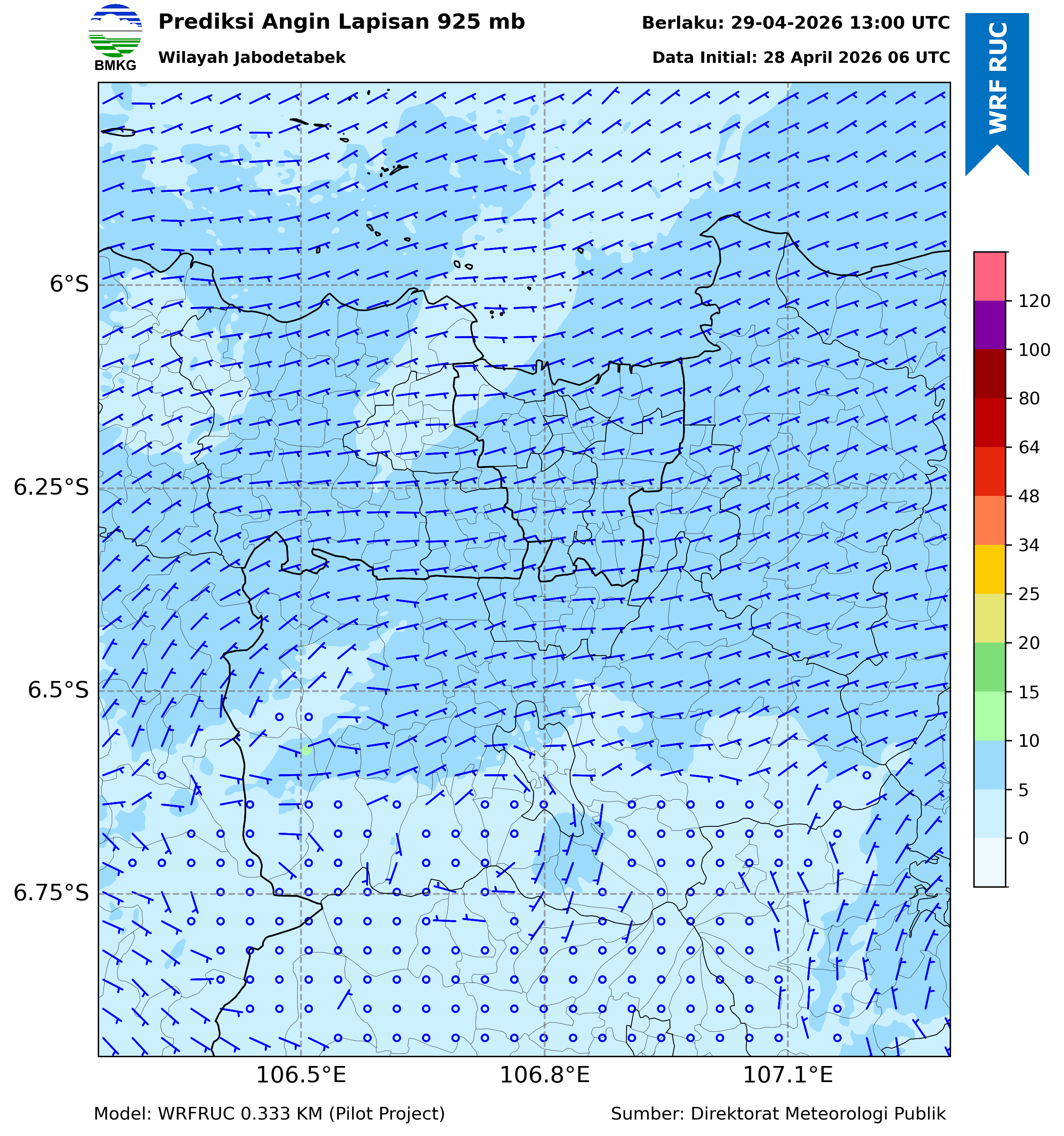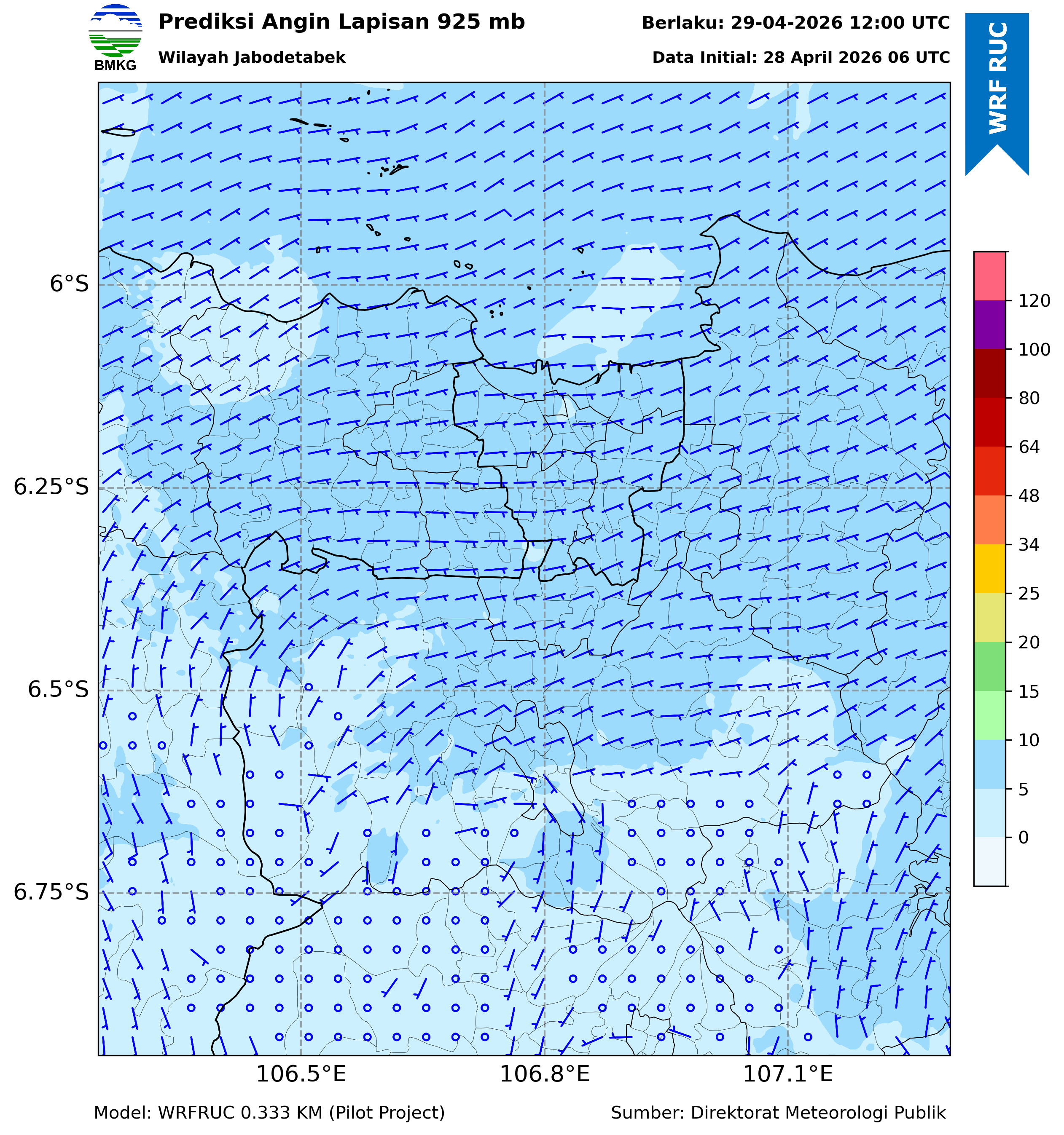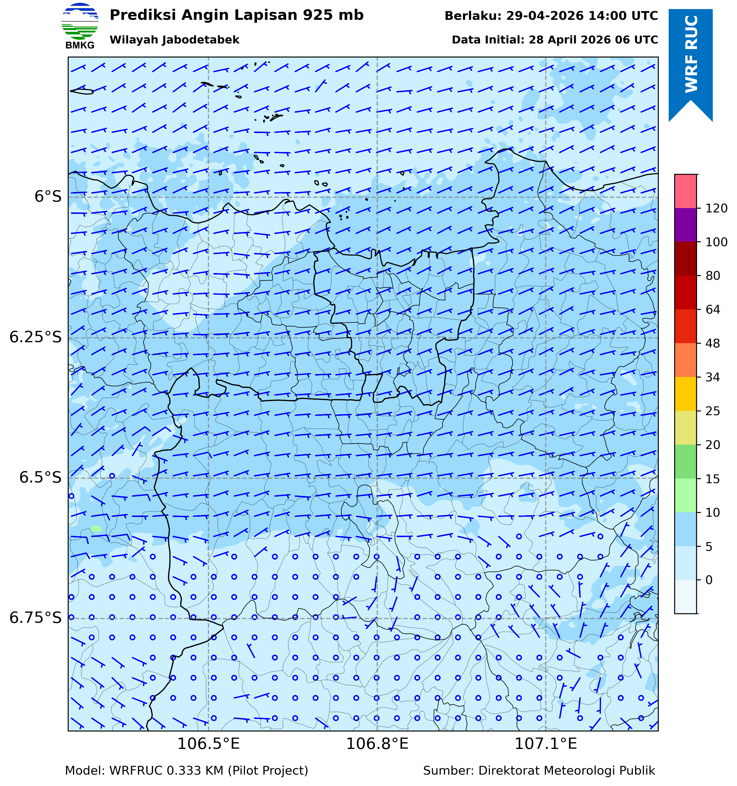 WRFDA Wind Forecast 925 hPa Jakarta