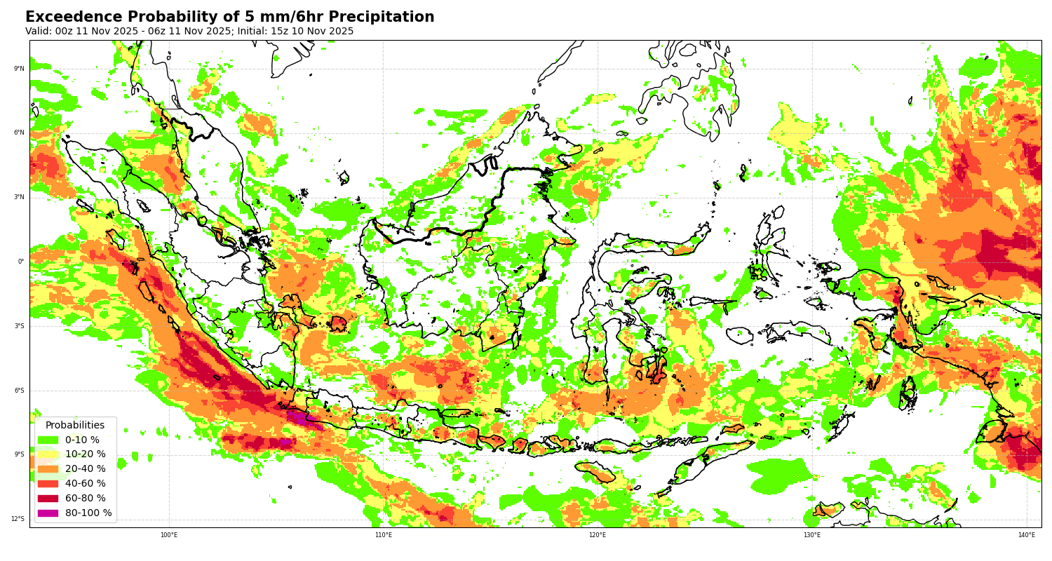 Multi-Model Ensemble Precipitation Probability 5 mm 6 hourly