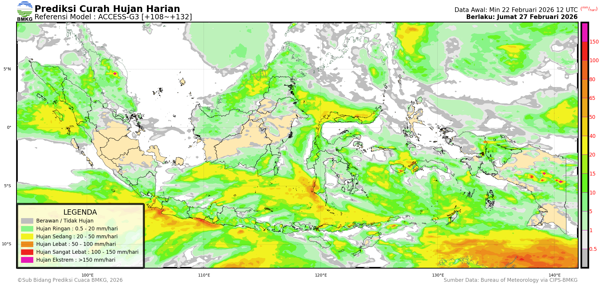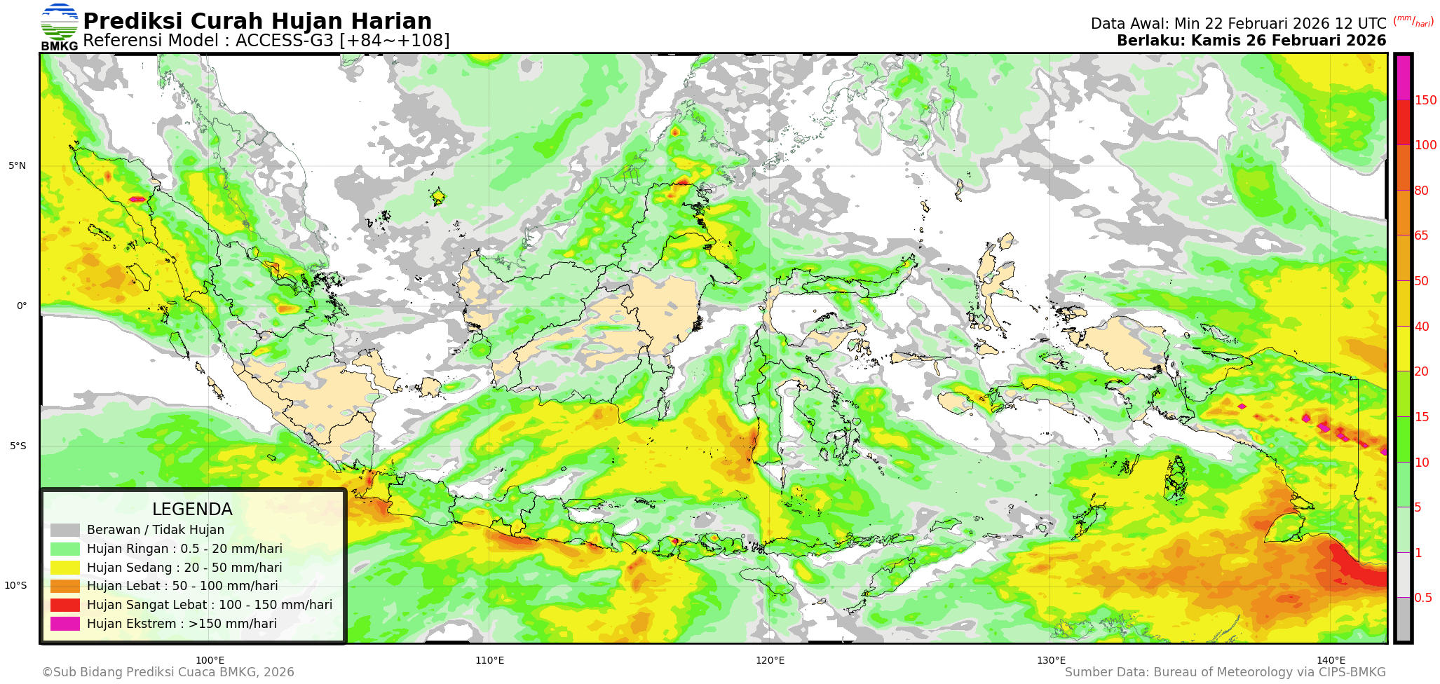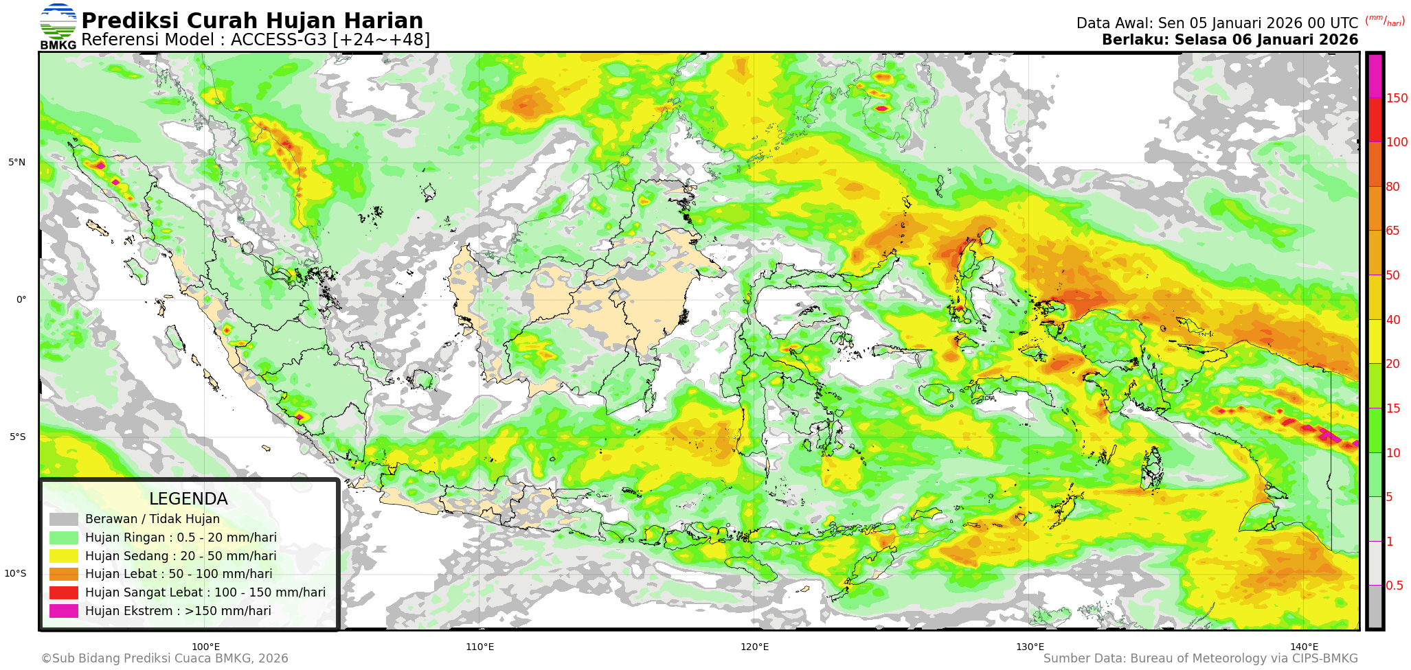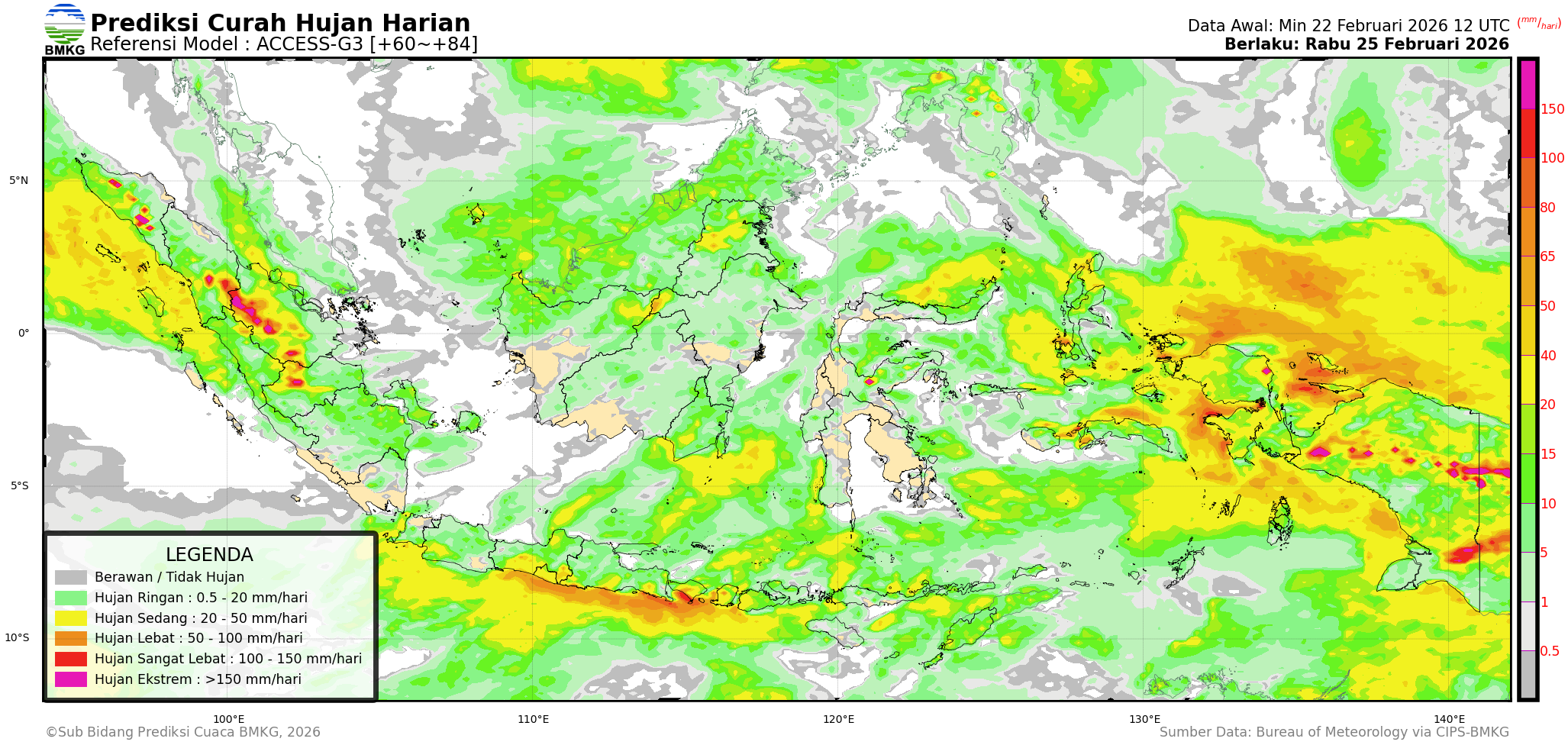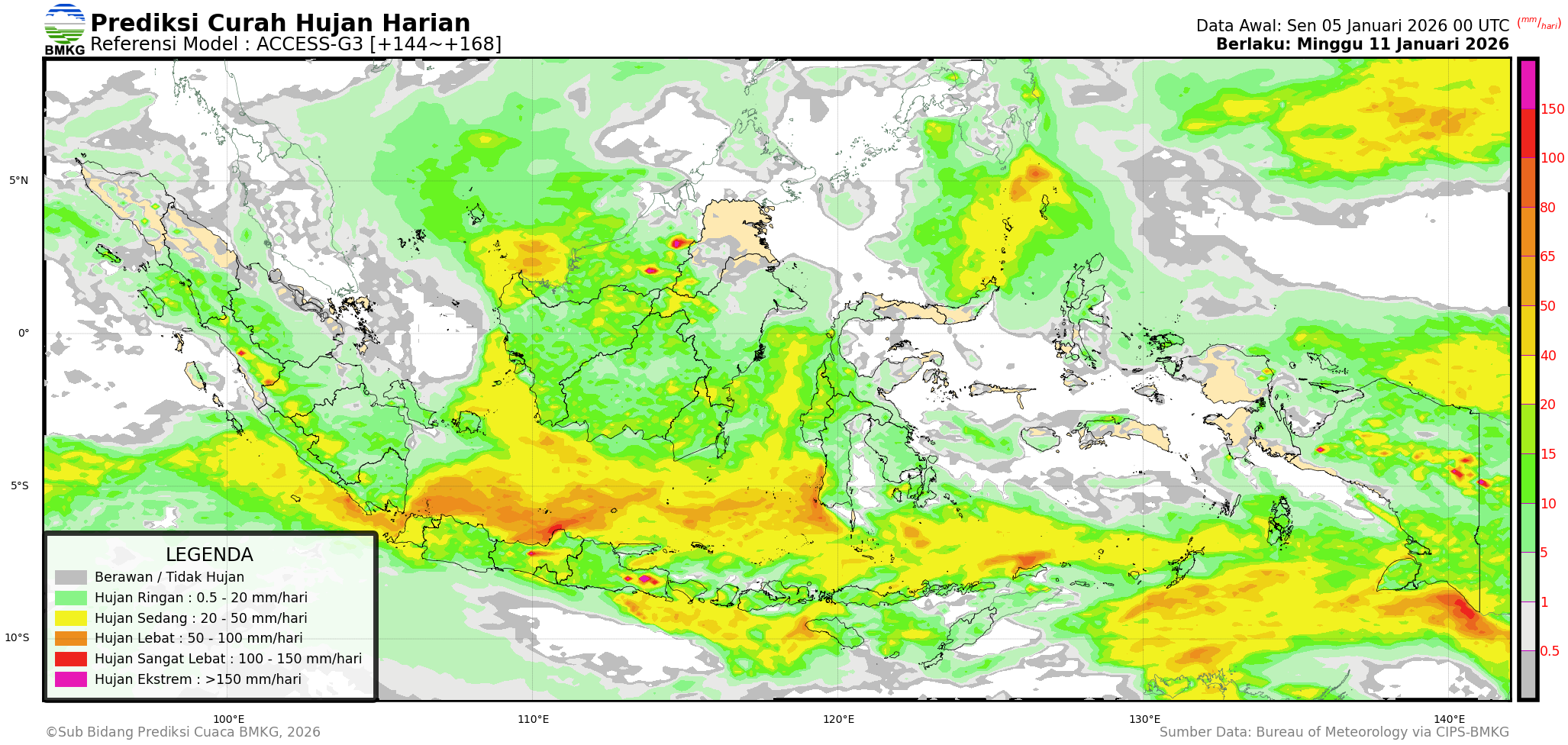 Prediksi Akumulasi Curah Hujan Harian Berdasarkan Model Cuaca ACCESS-G3 dari Bureau of Meteorology Australia