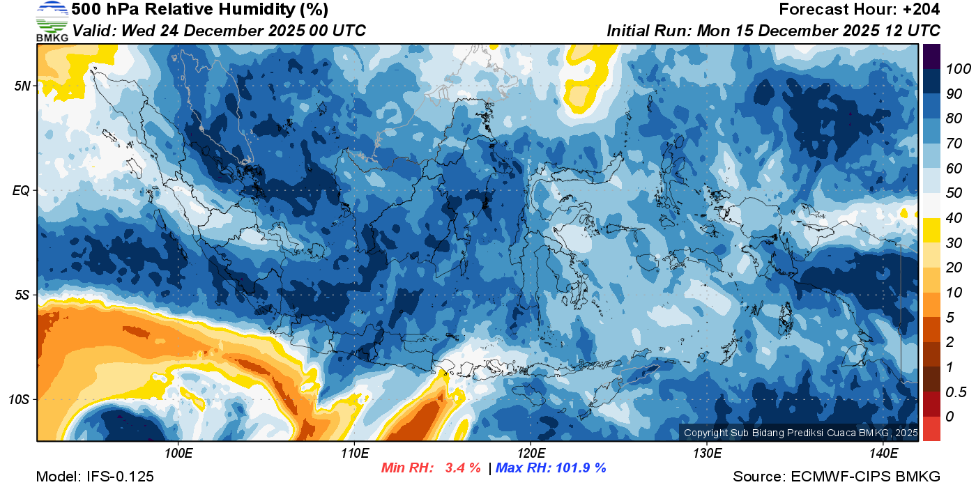 Prediksi Suhu Titik Embun 600 hPa NTT