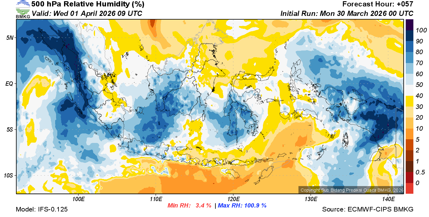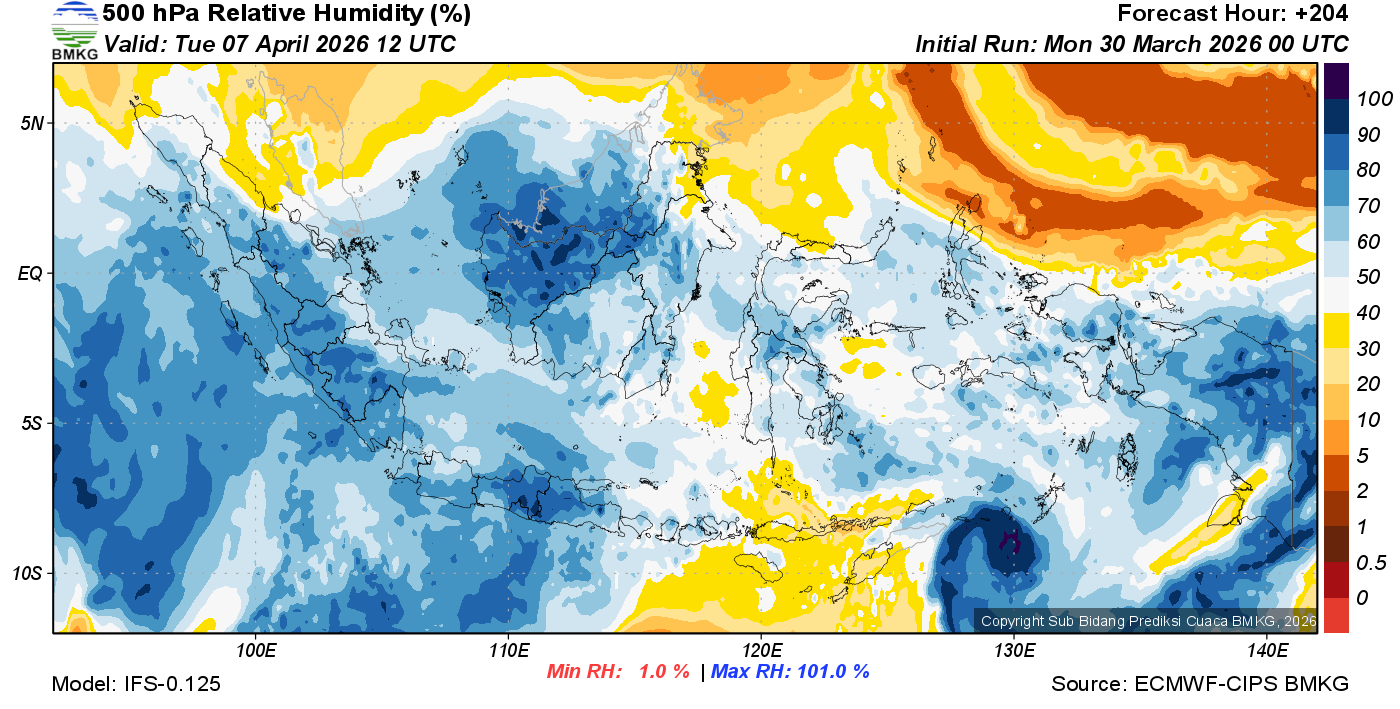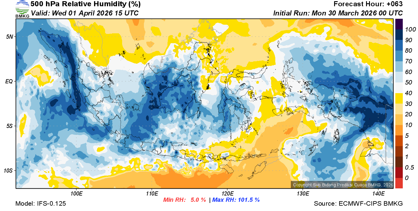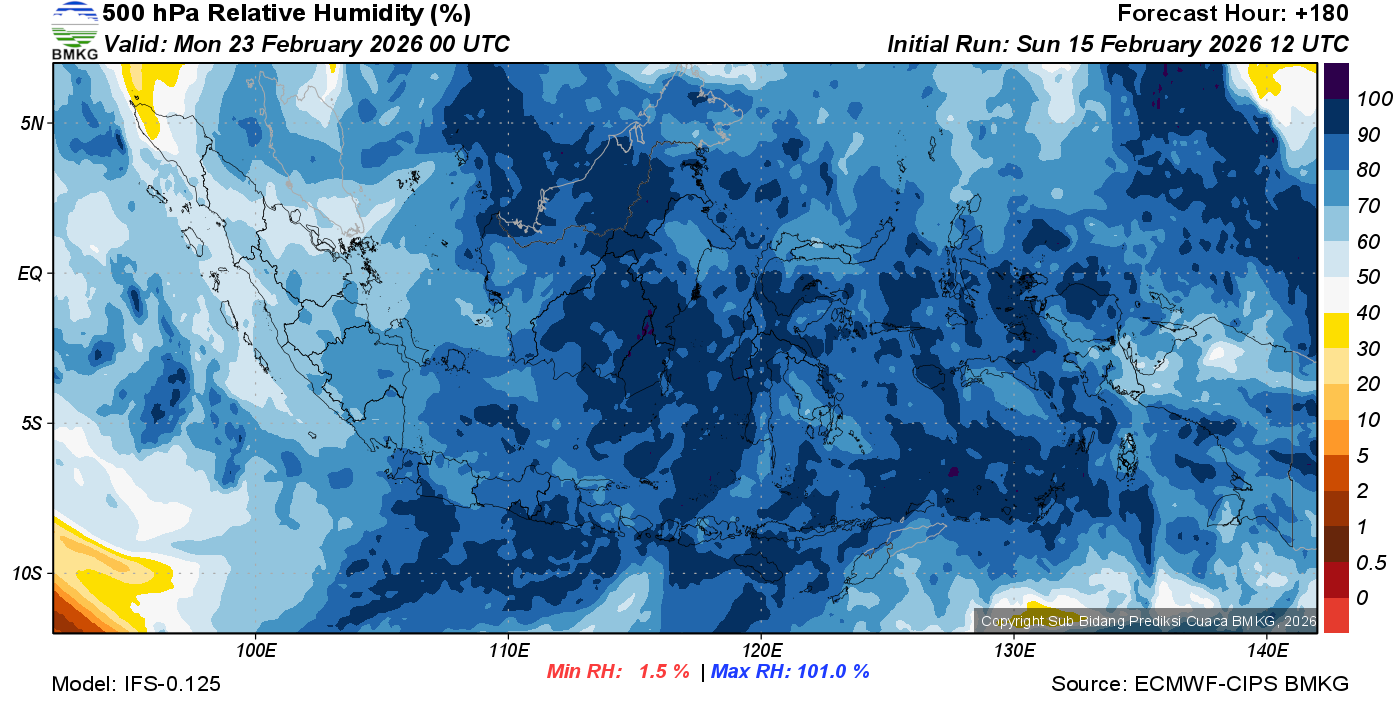 Prediksi Kelembapan 500 hPa NTT
