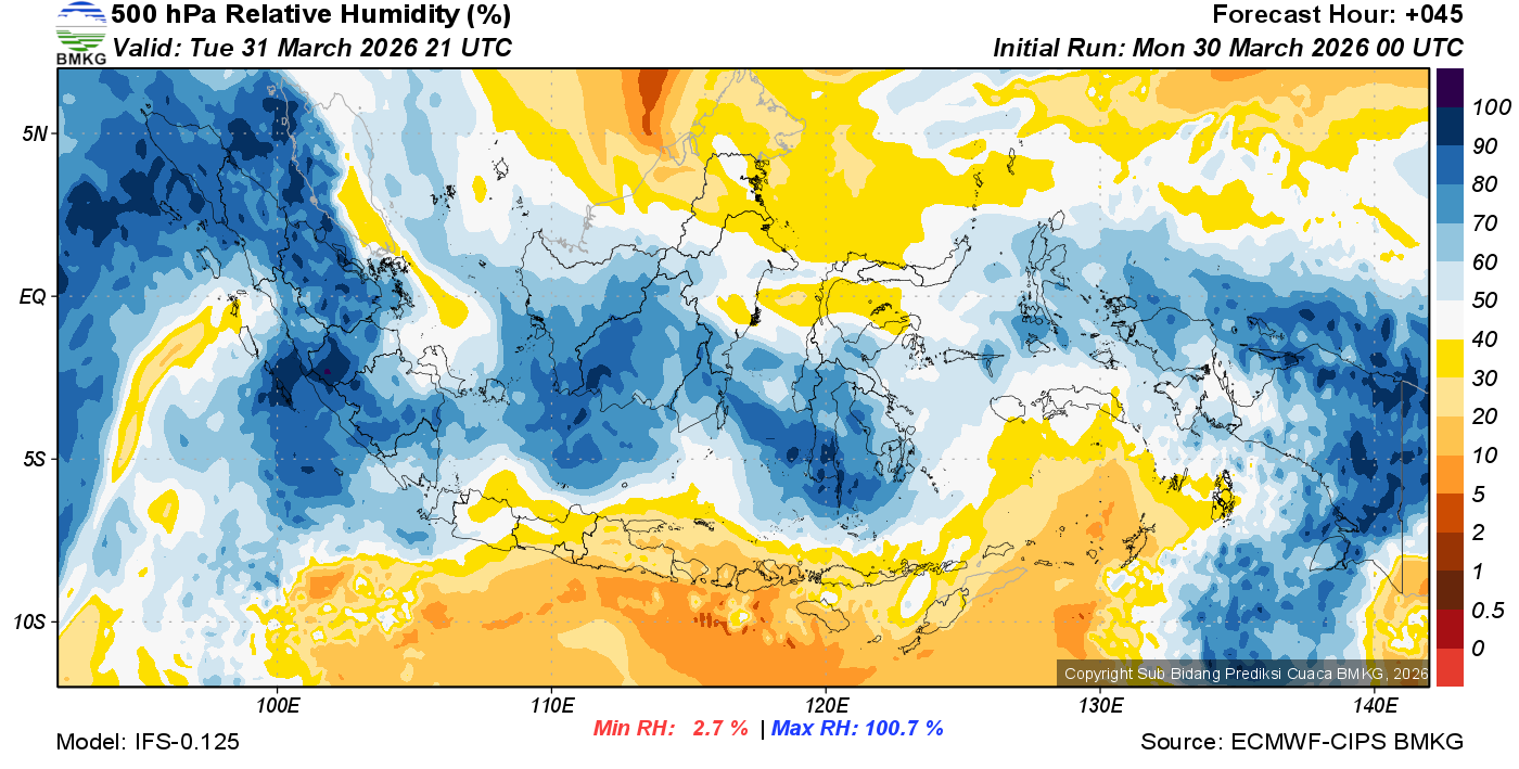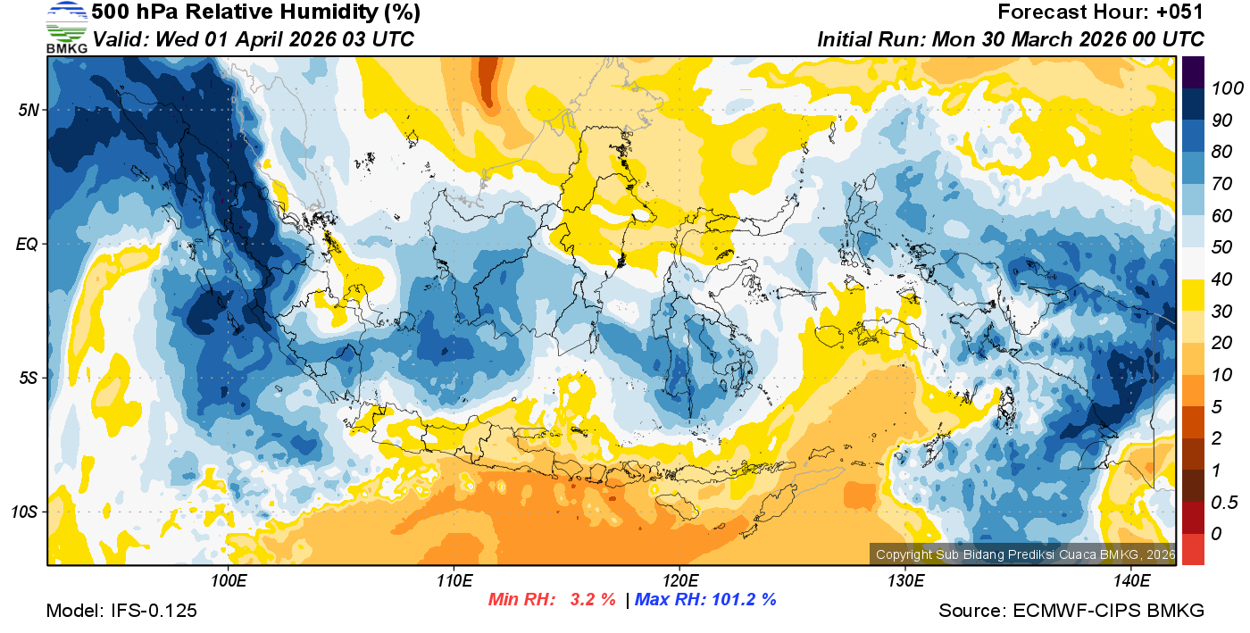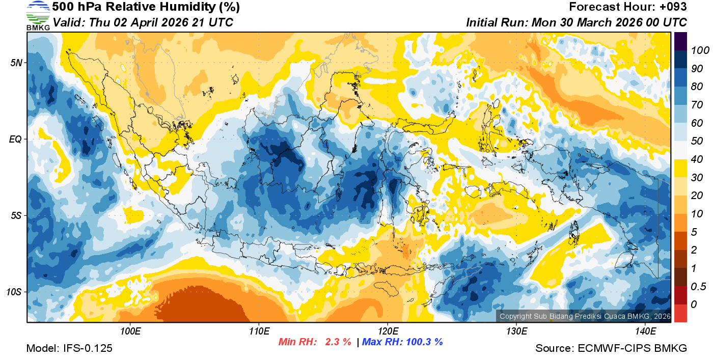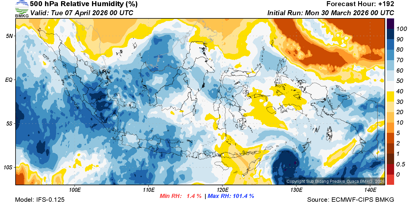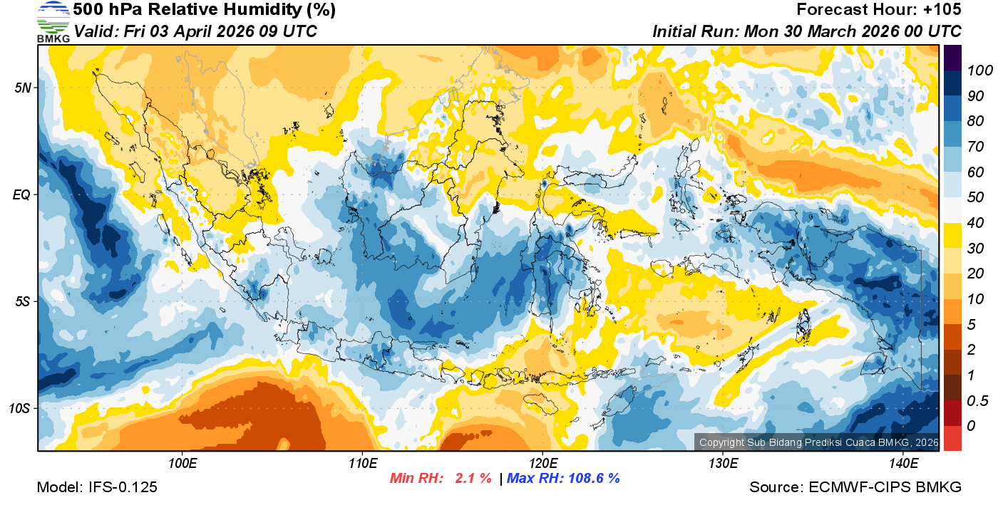 Prediksi Kelembapan 500 hPa NTT