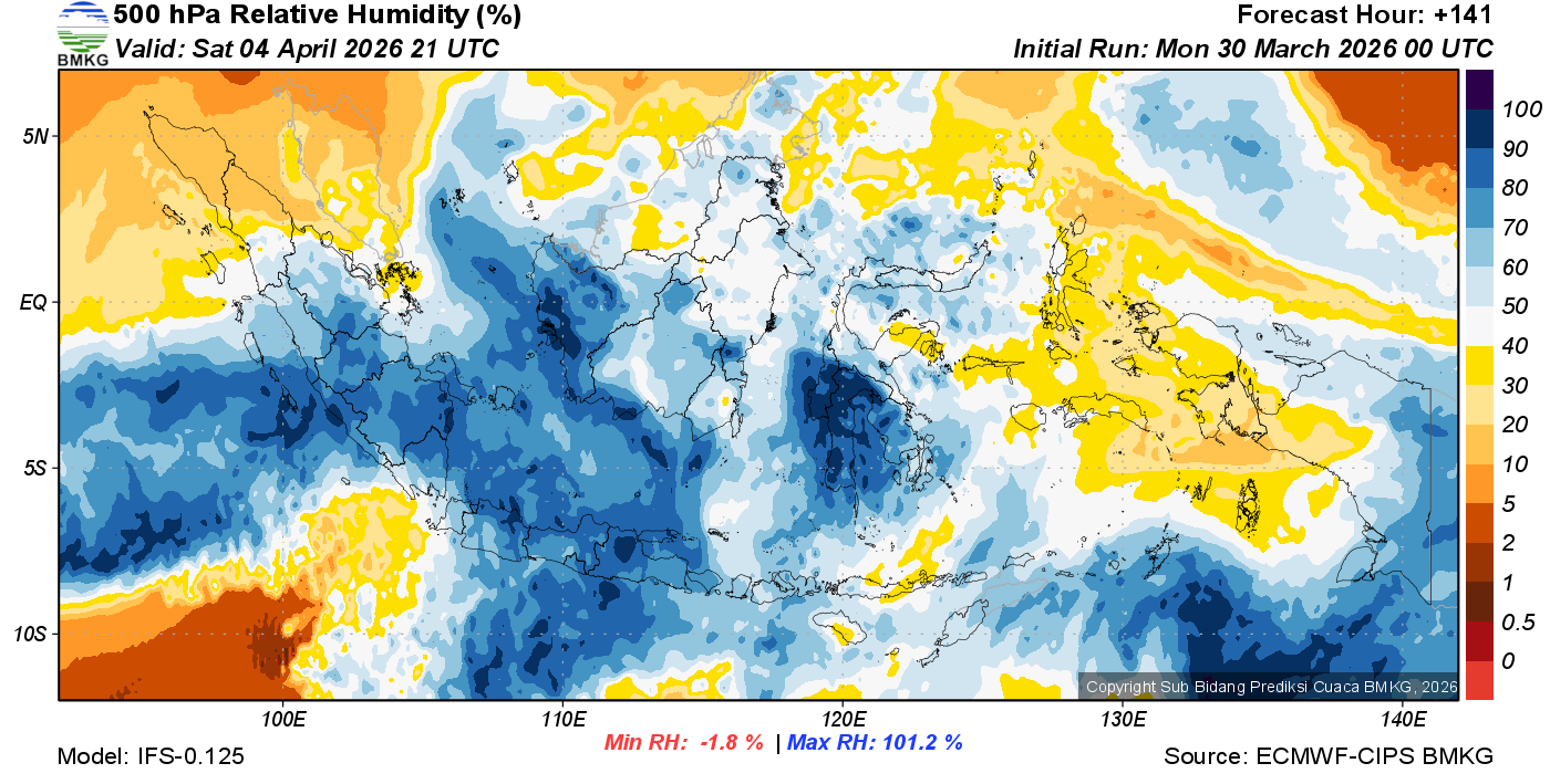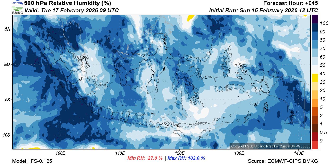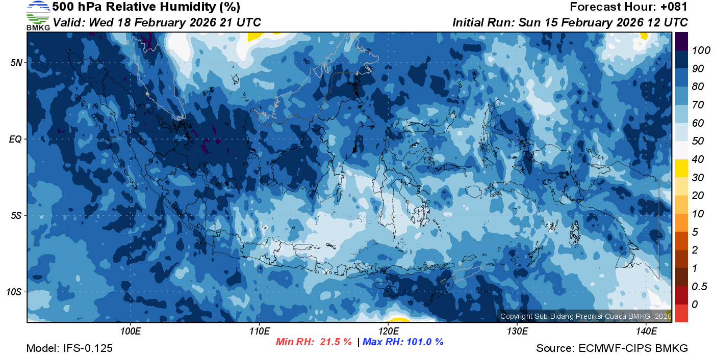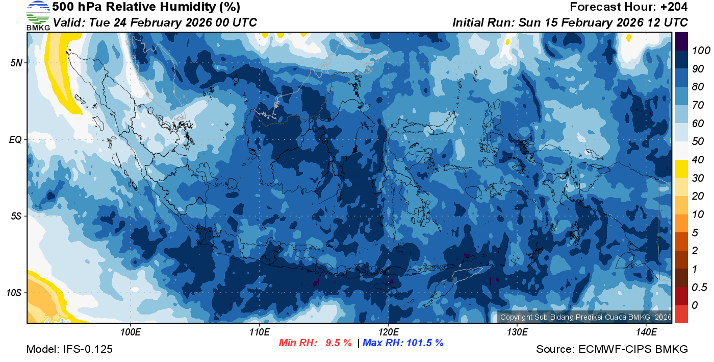 Prediksi Kelembapan 500 hPa NTT