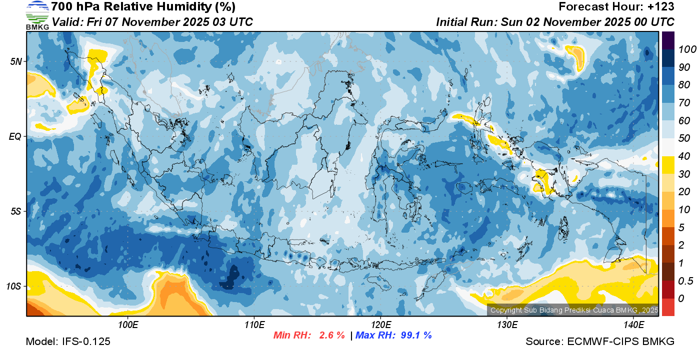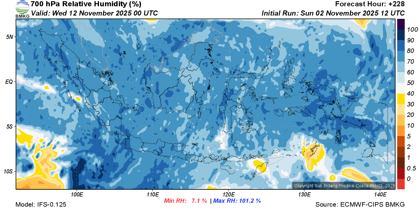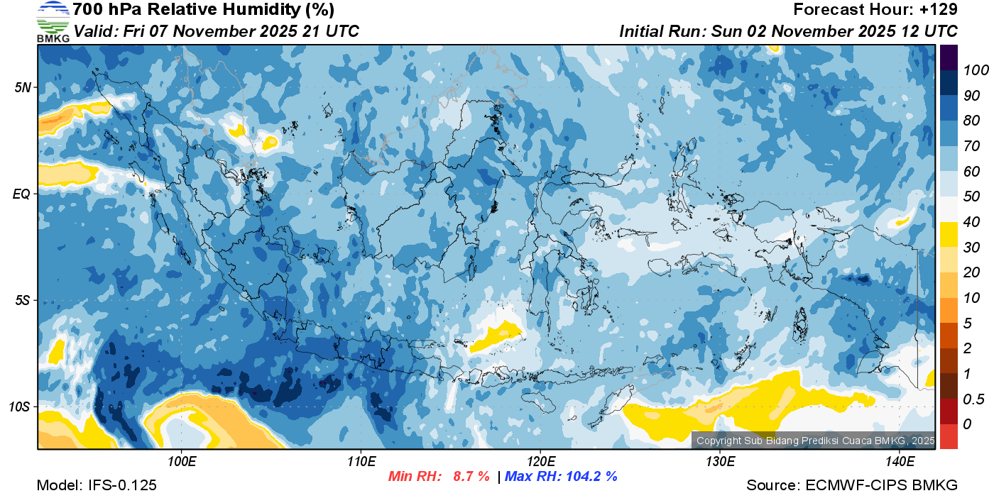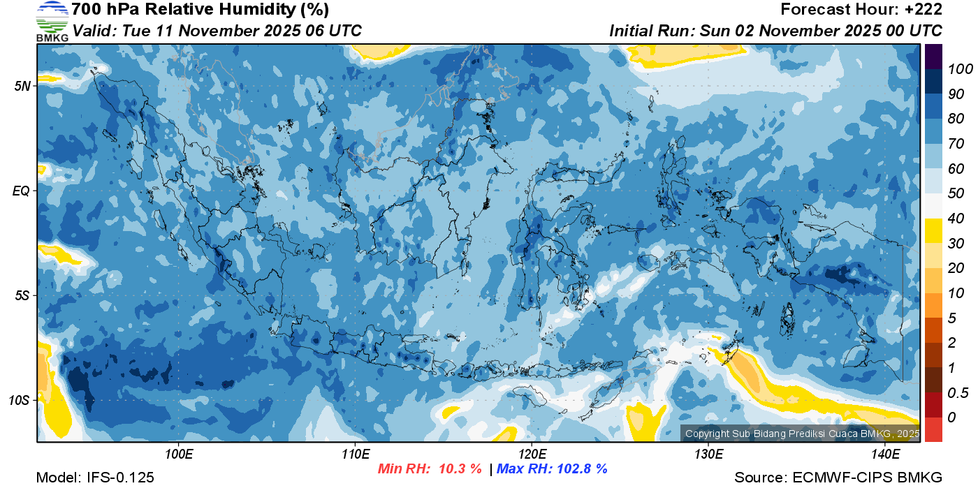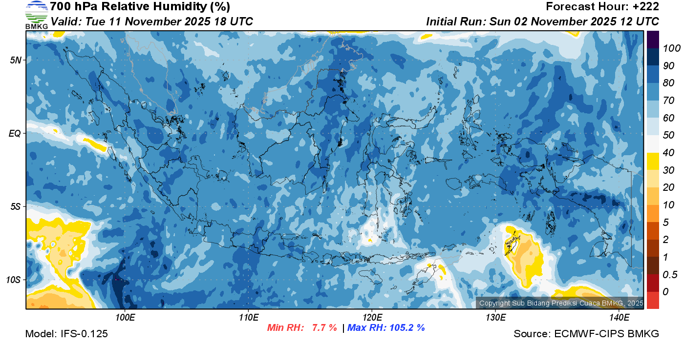 Prediksi Suhu Titik Embun 700 hPa NTT