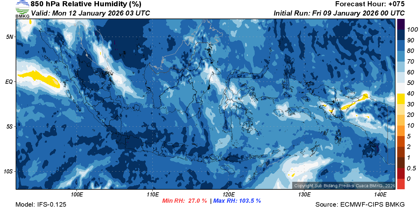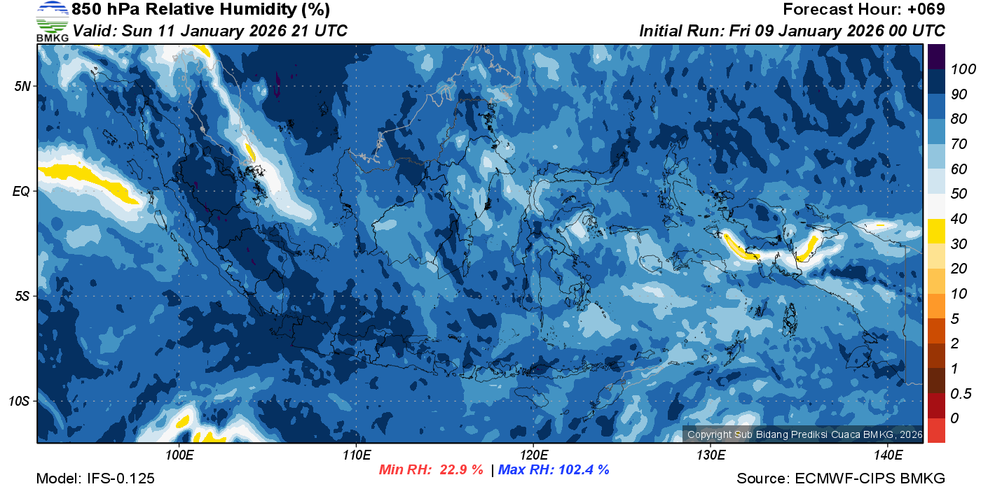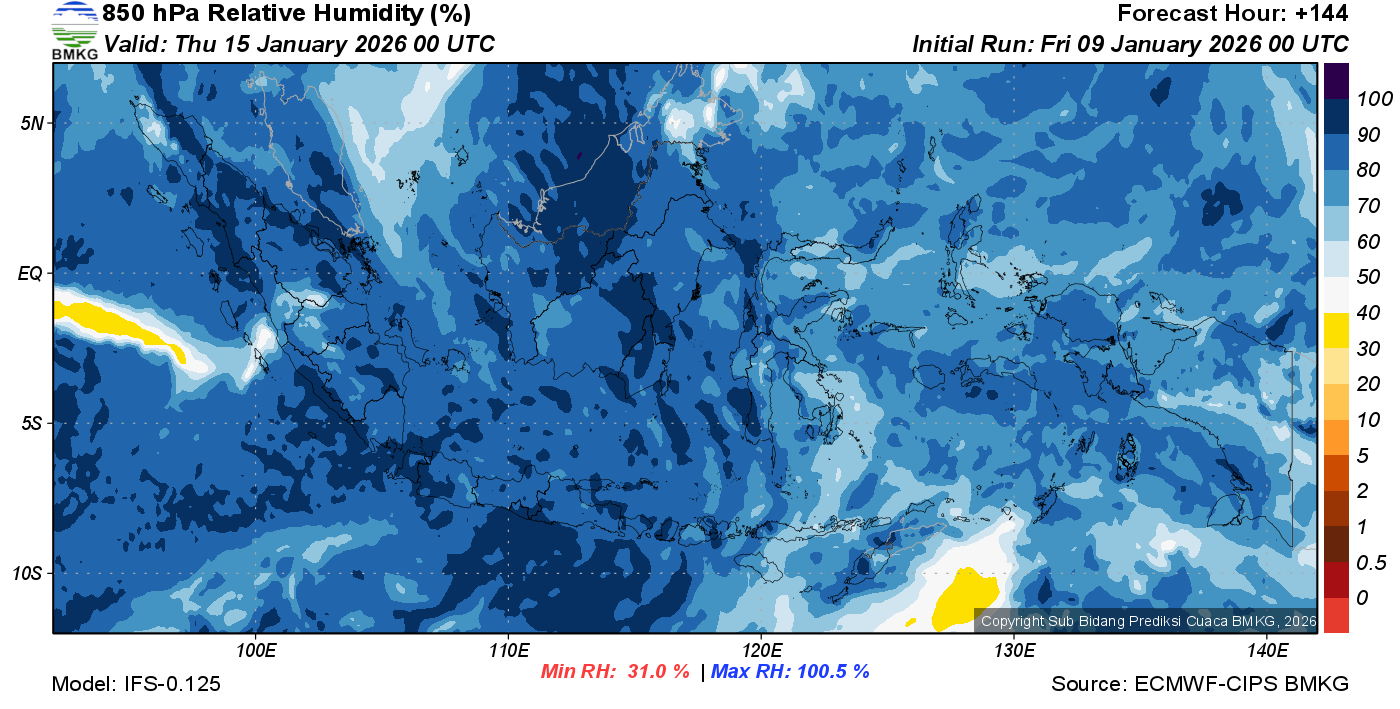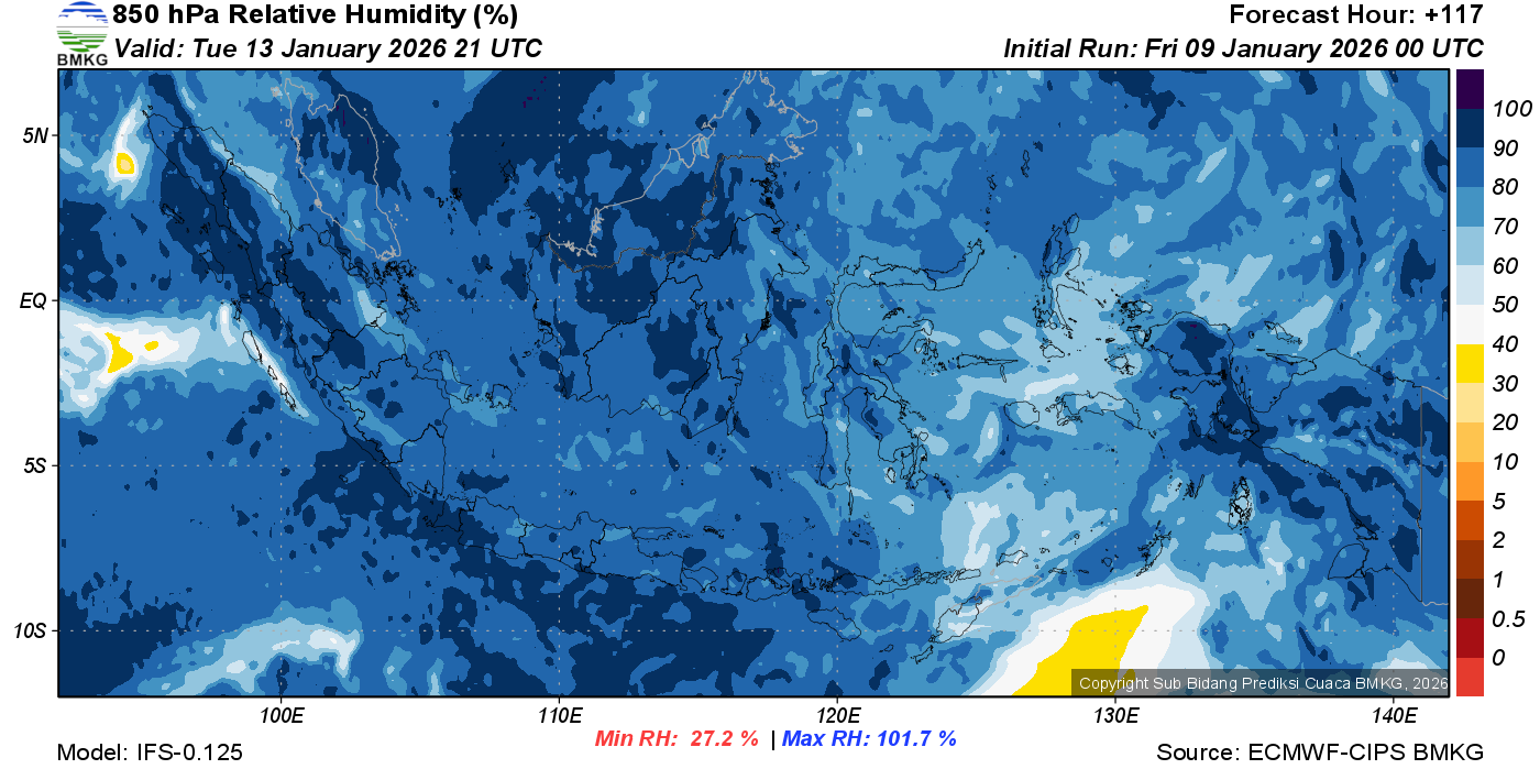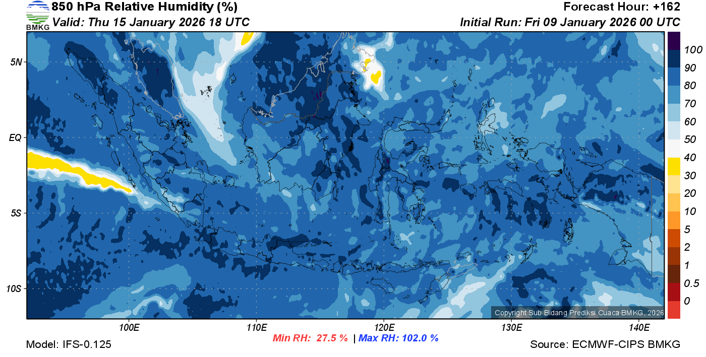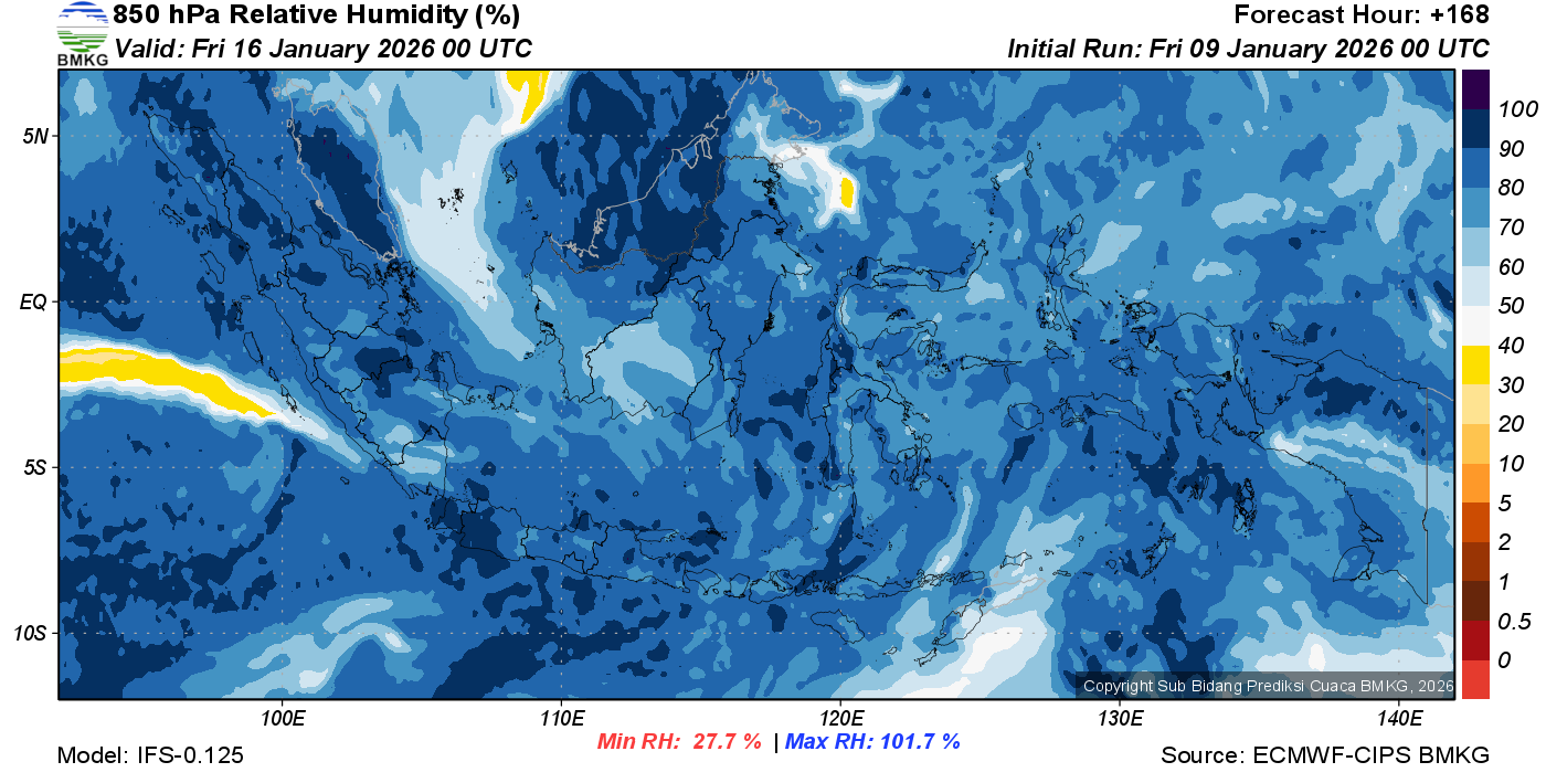 Prediksi Kelembapan 850 hPa NTT