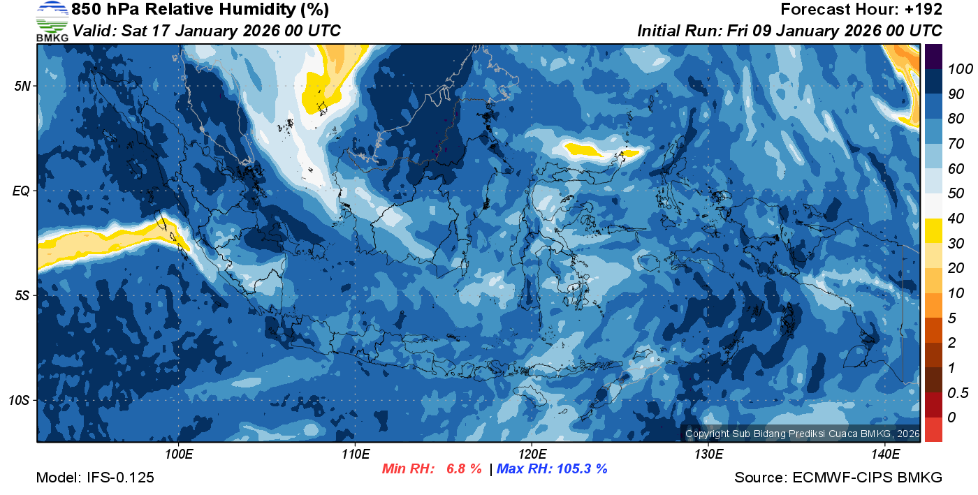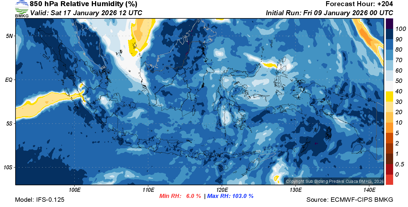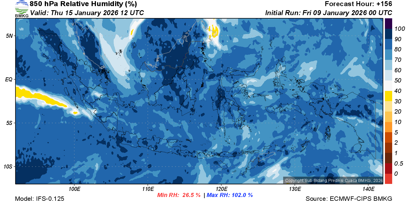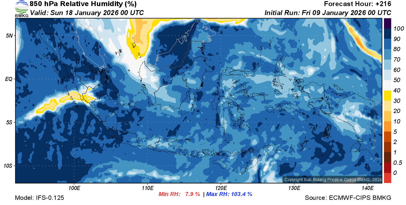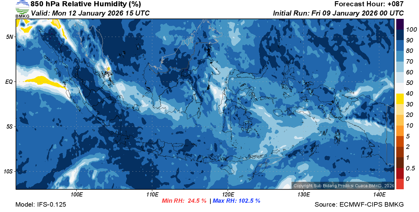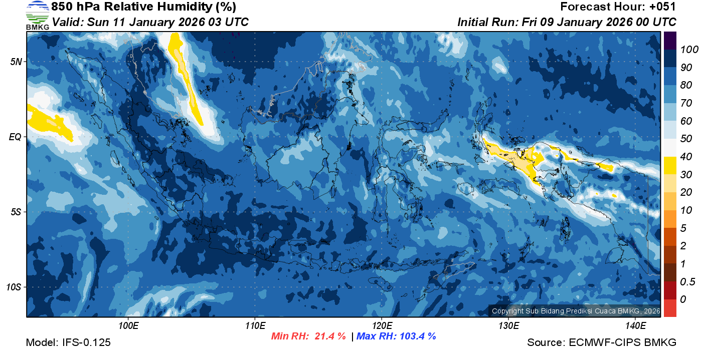 Prediksi Kelembapan 850 hPa NTT