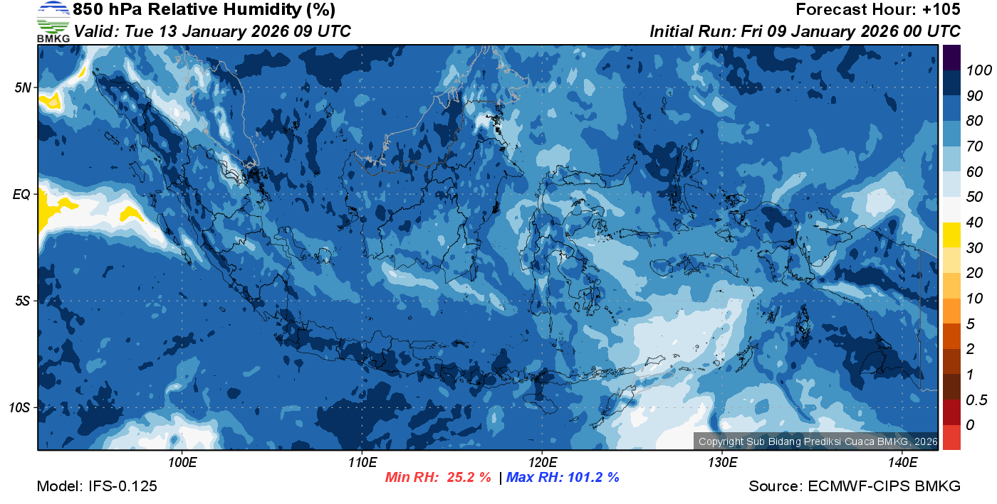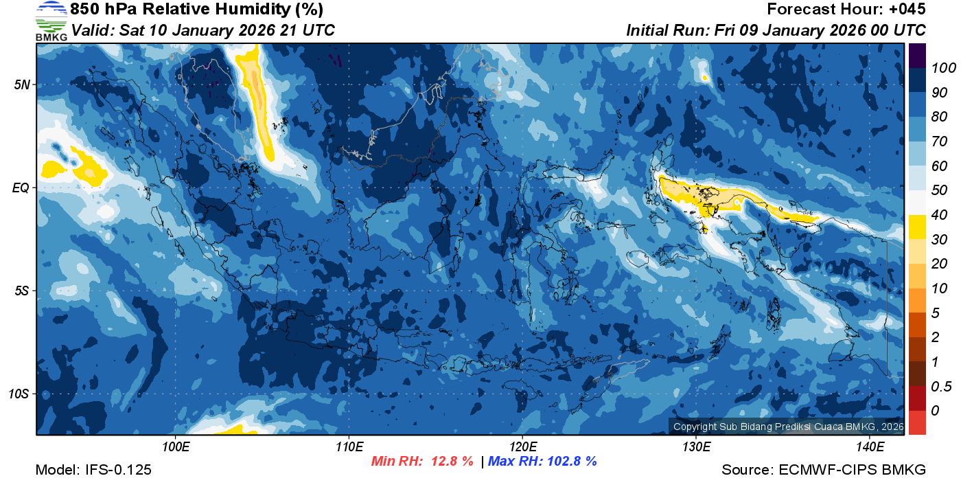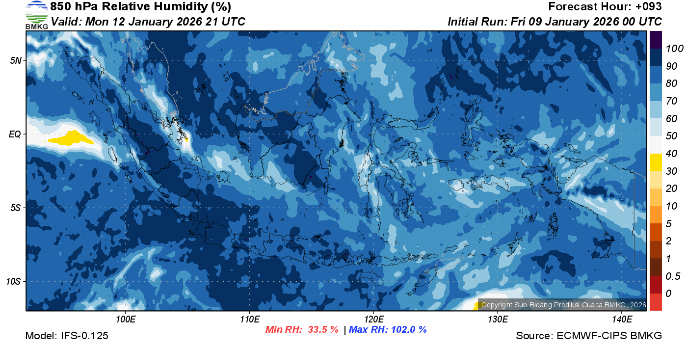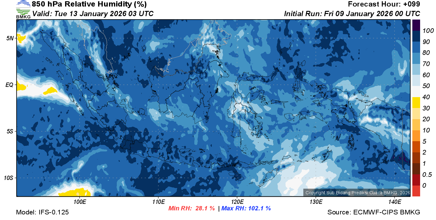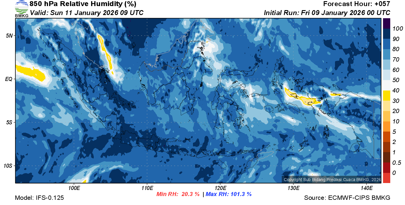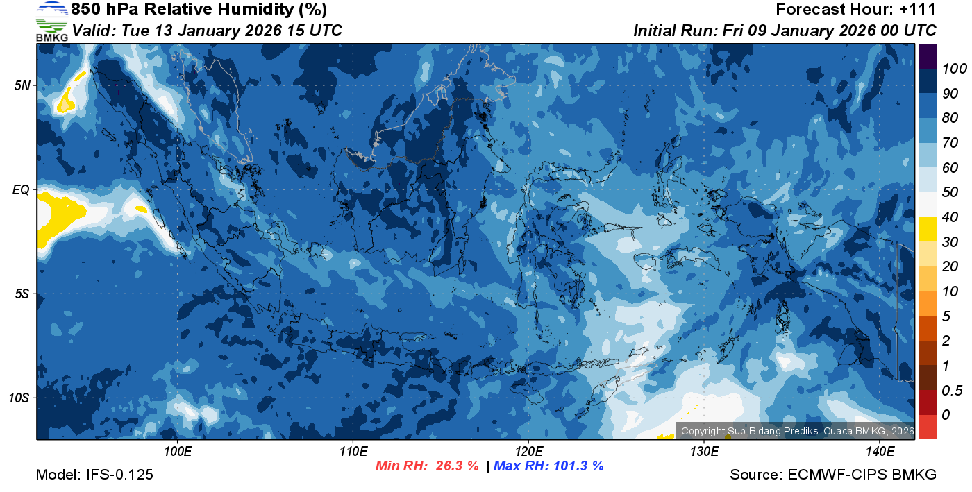 Prediksi Kelembapan 850 hPa NTT