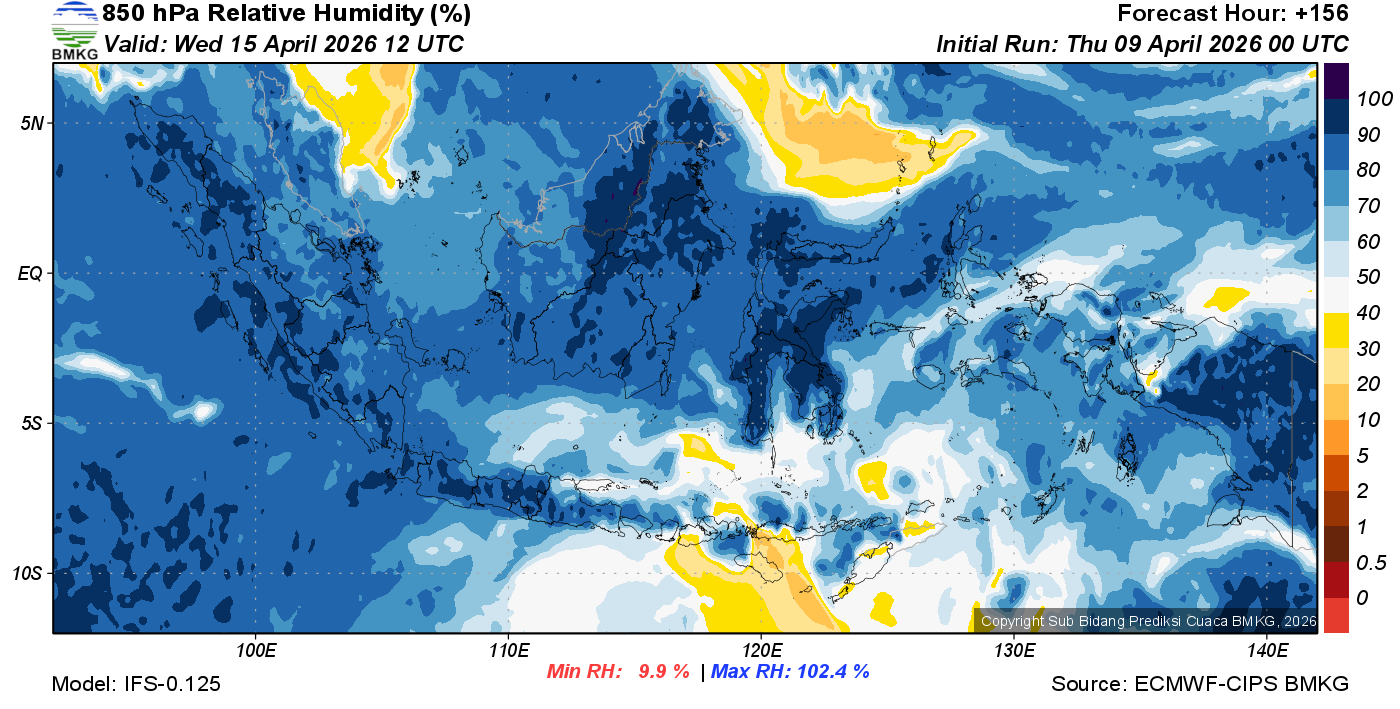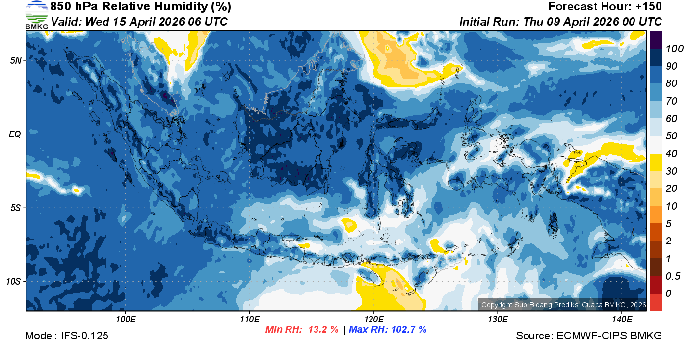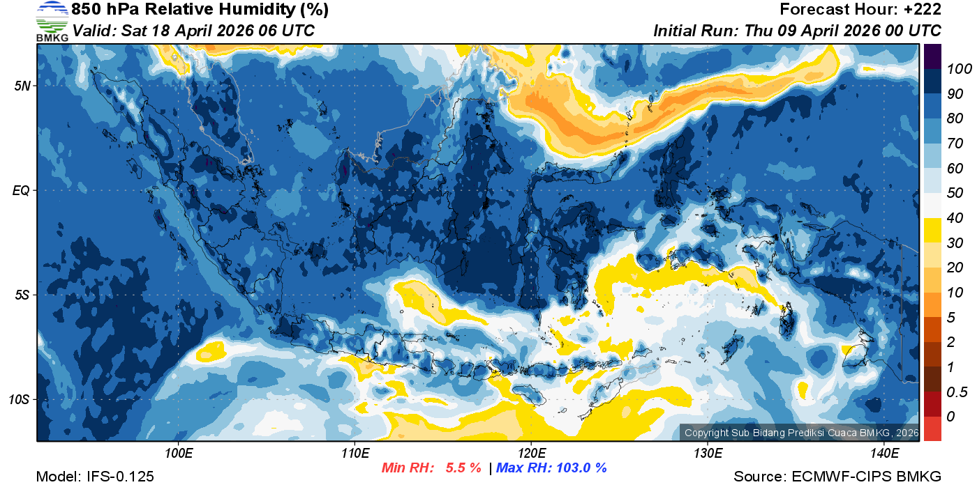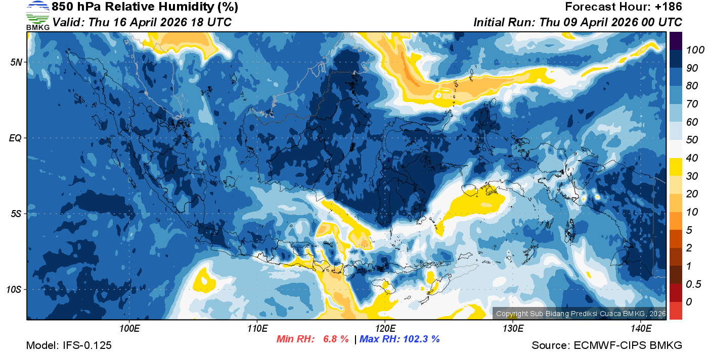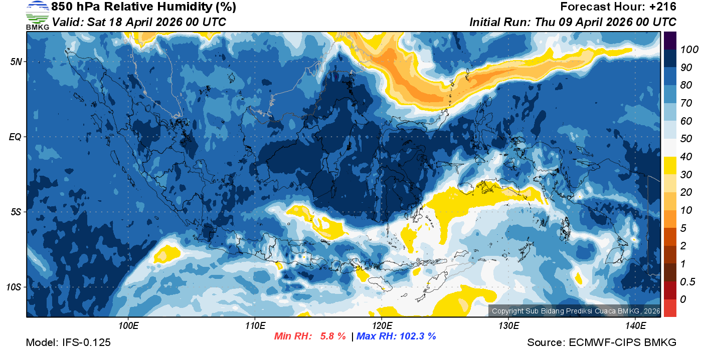 Prediksi Suhu Titik Embun 850 hPa NTT