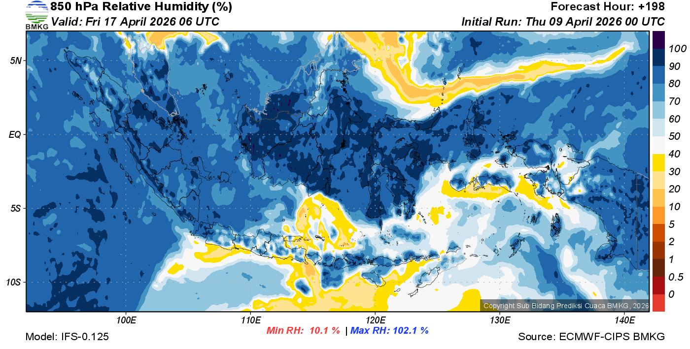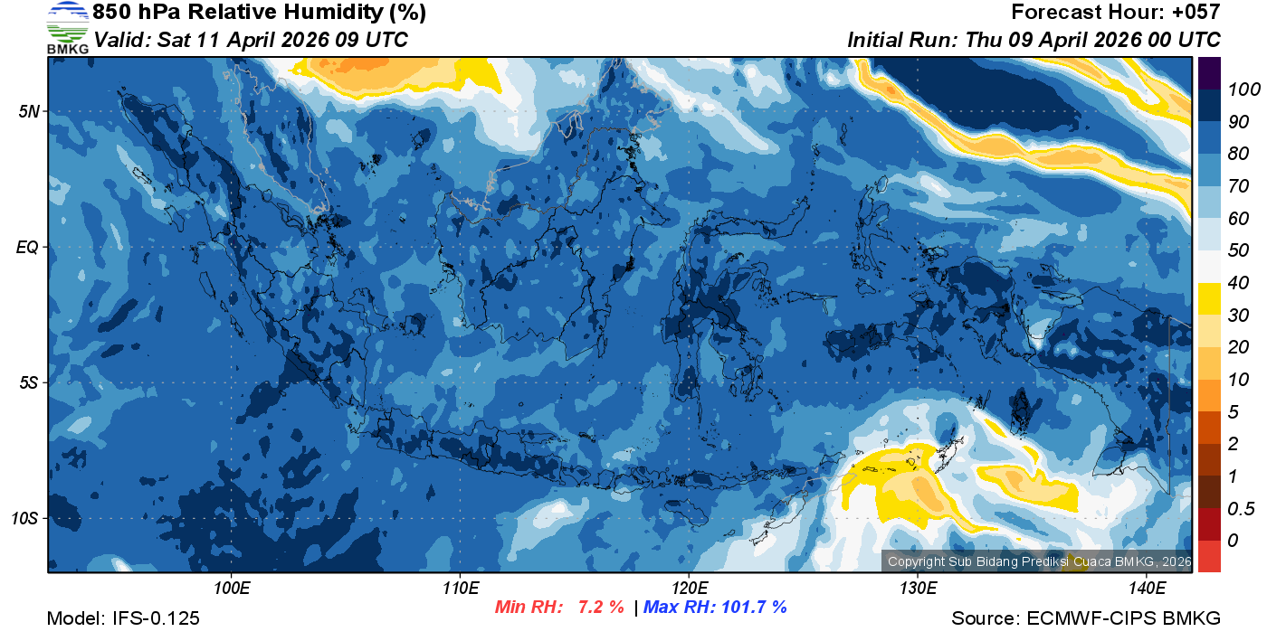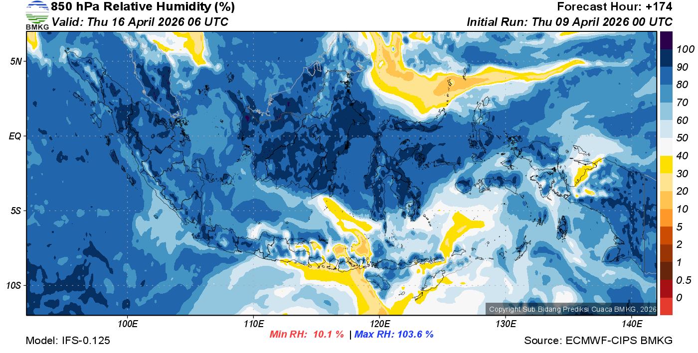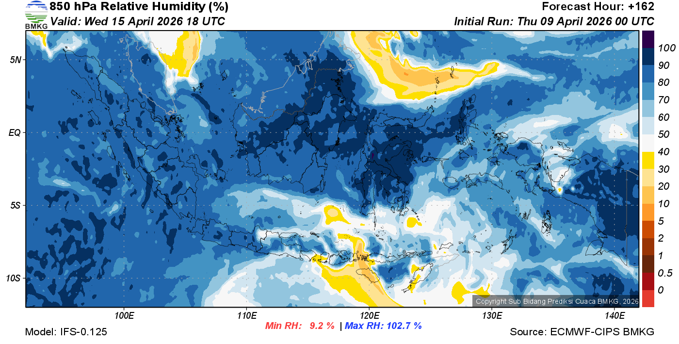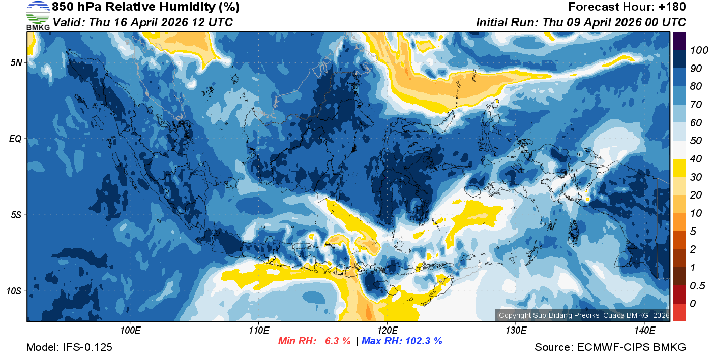 Prediksi Suhu Titik Embun 850 hPa NTT