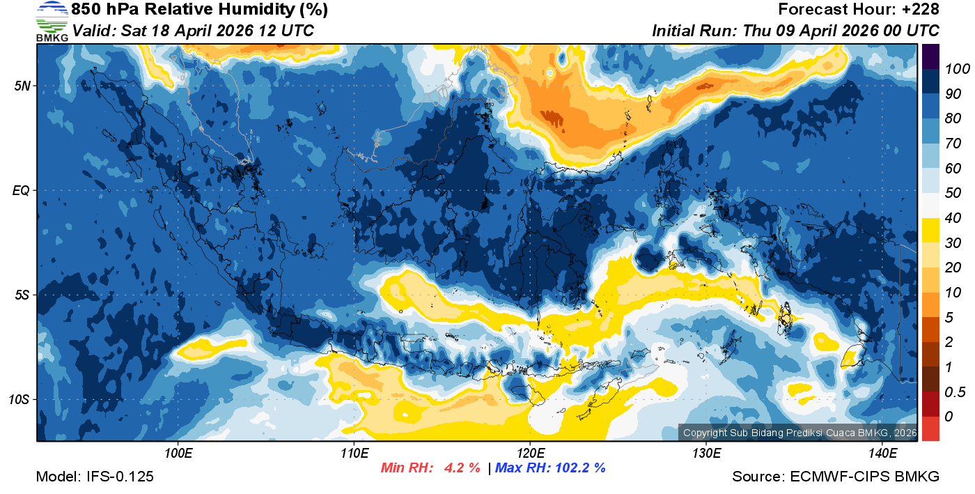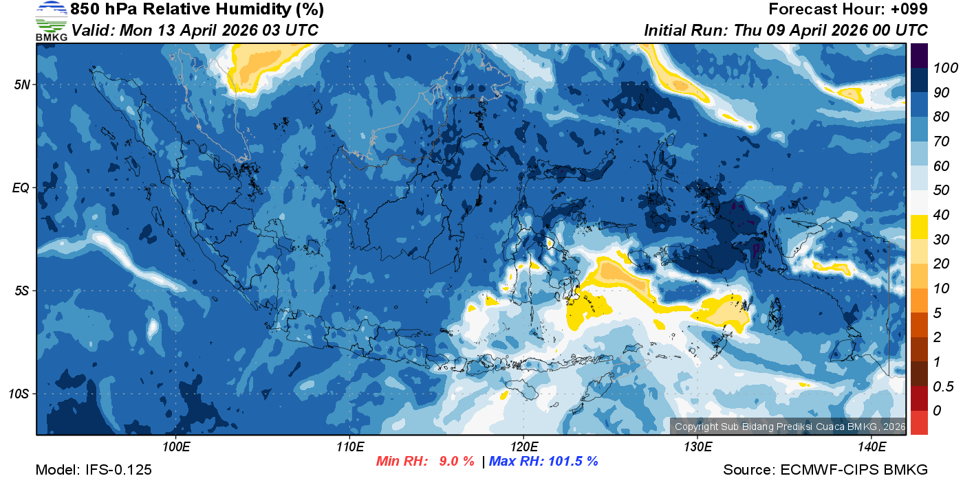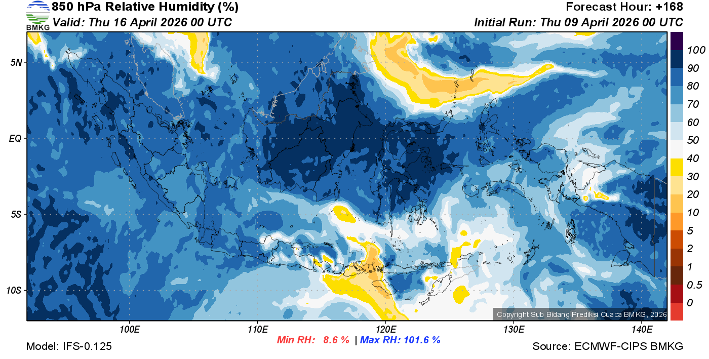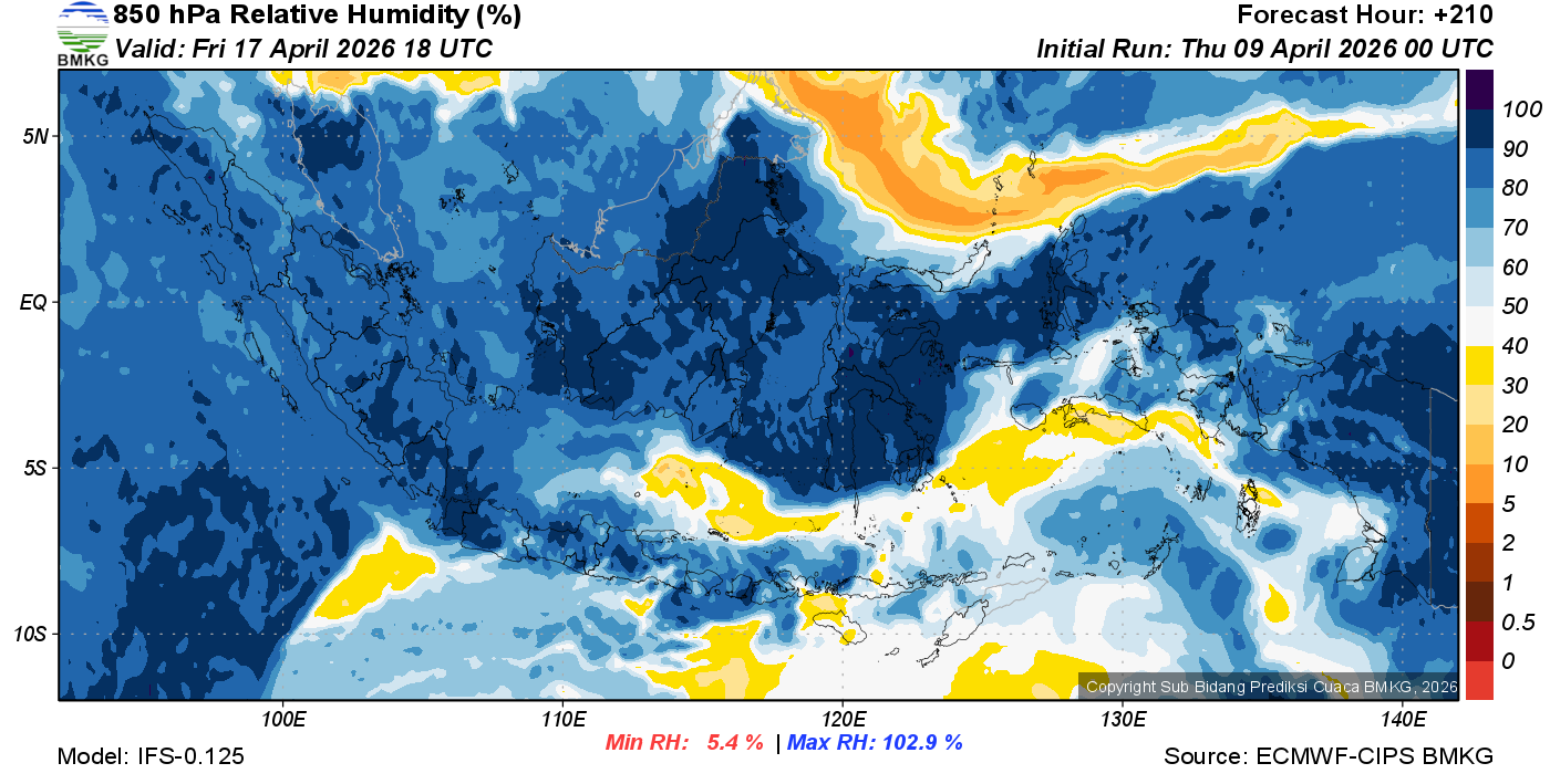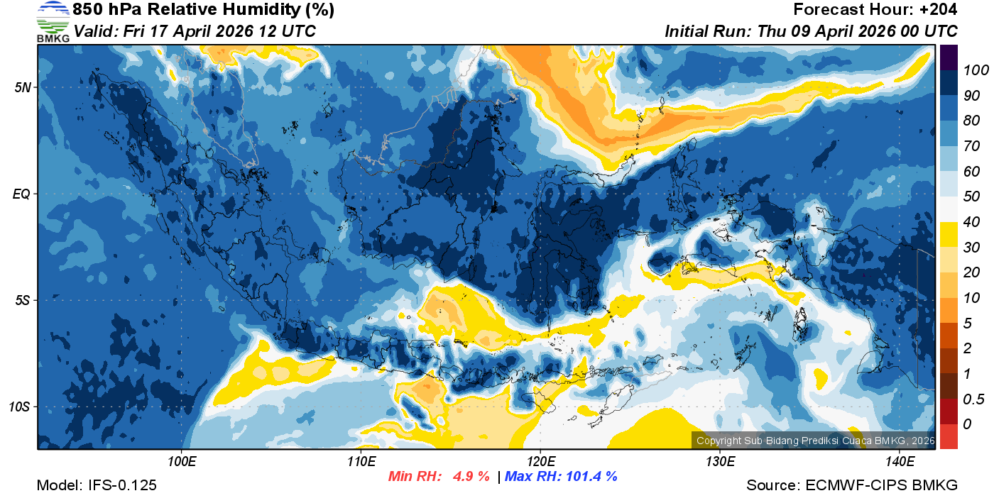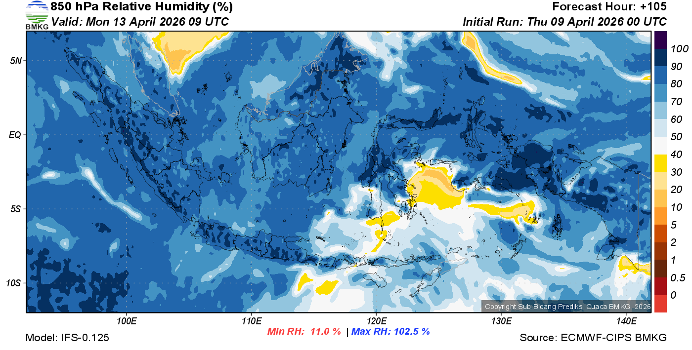 Prediksi Suhu Titik Embun 850 hPa NTT