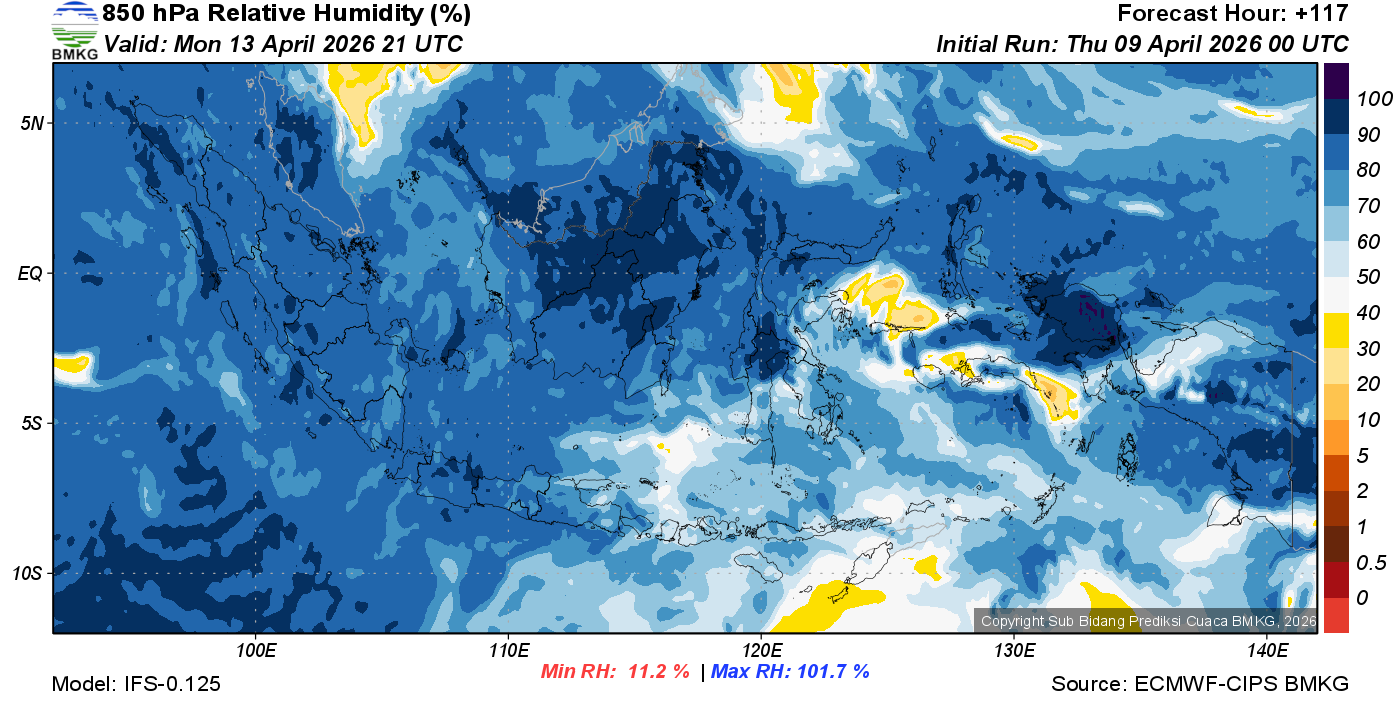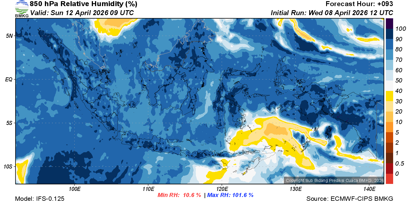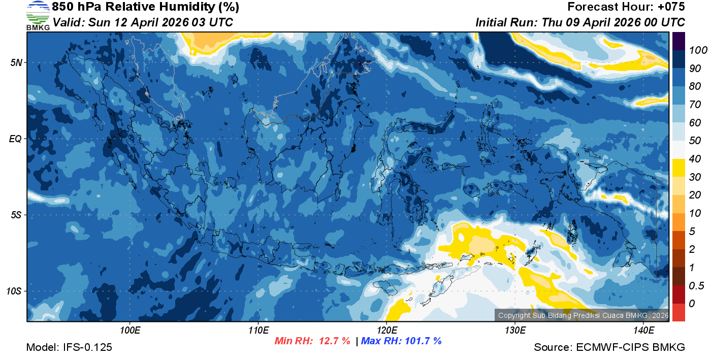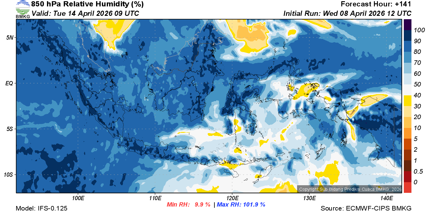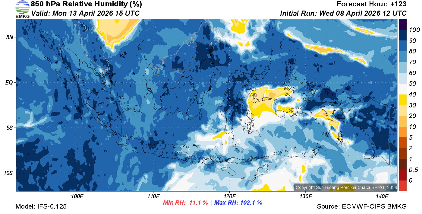 Prediksi Suhu Titik Embun 850 hPa NTT