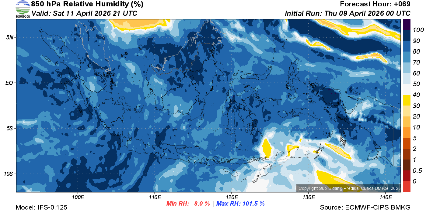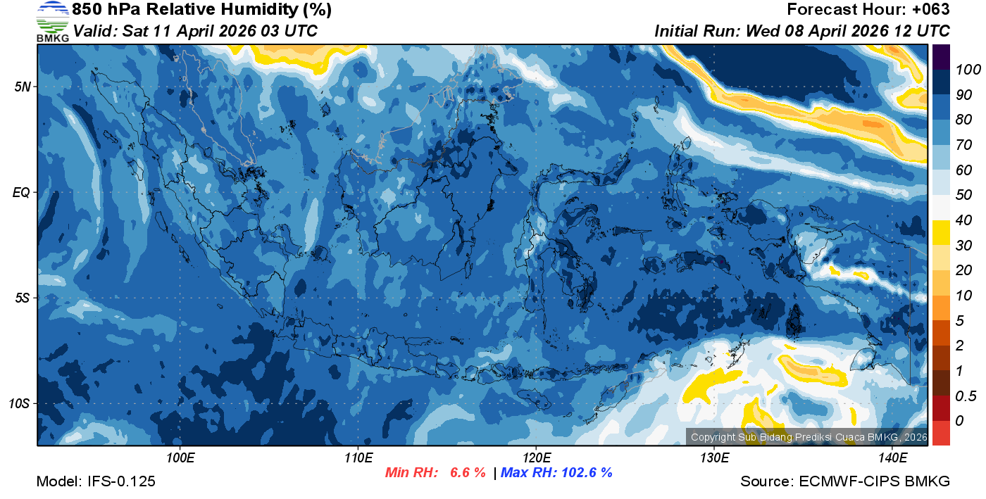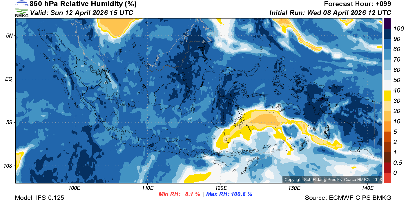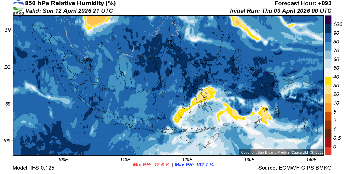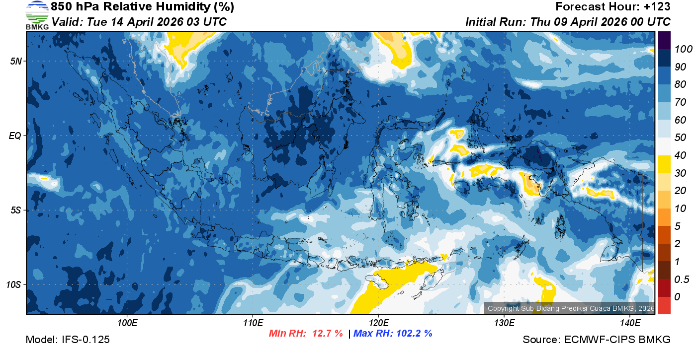 Prediksi Suhu Titik Embun 850 hPa NTT