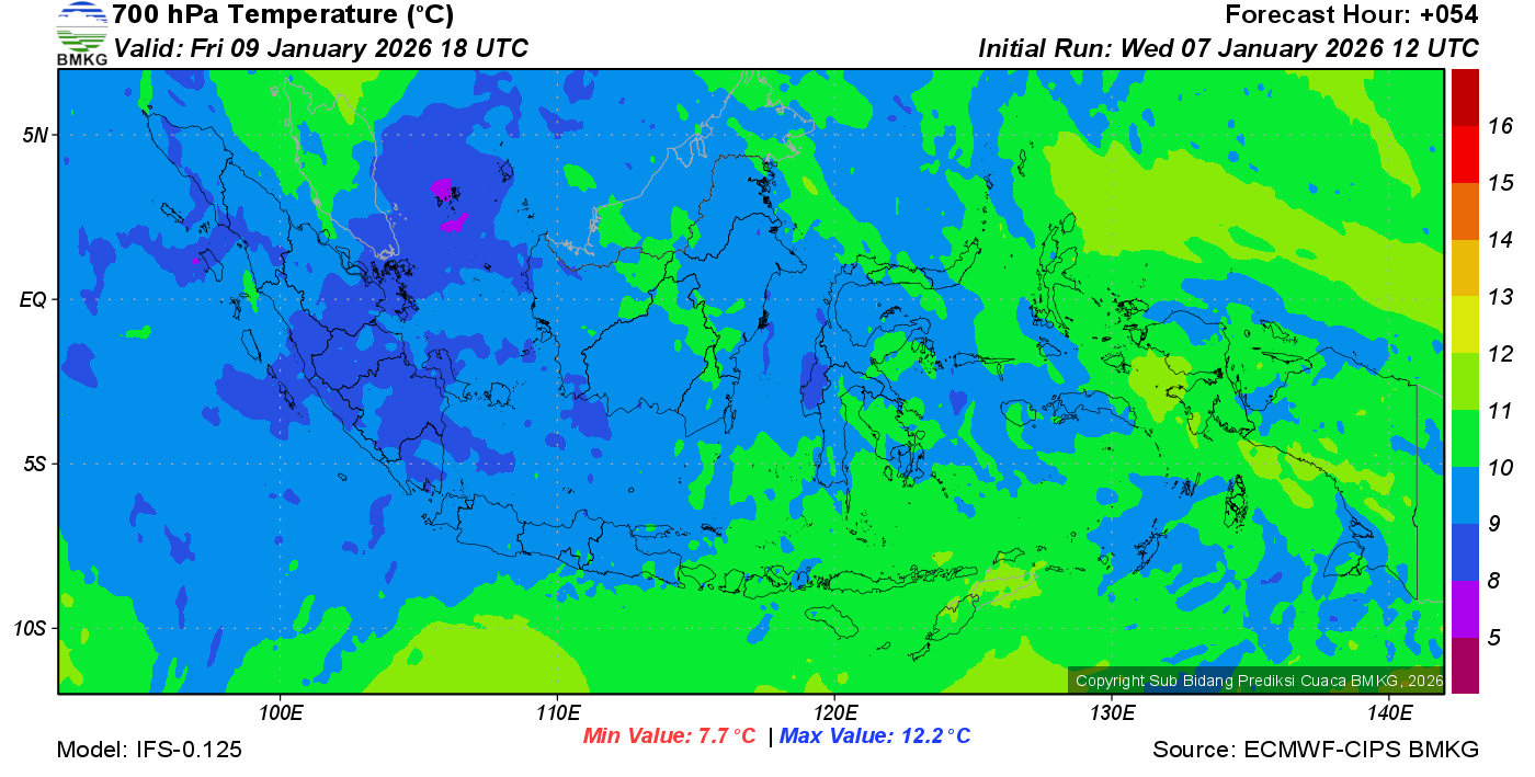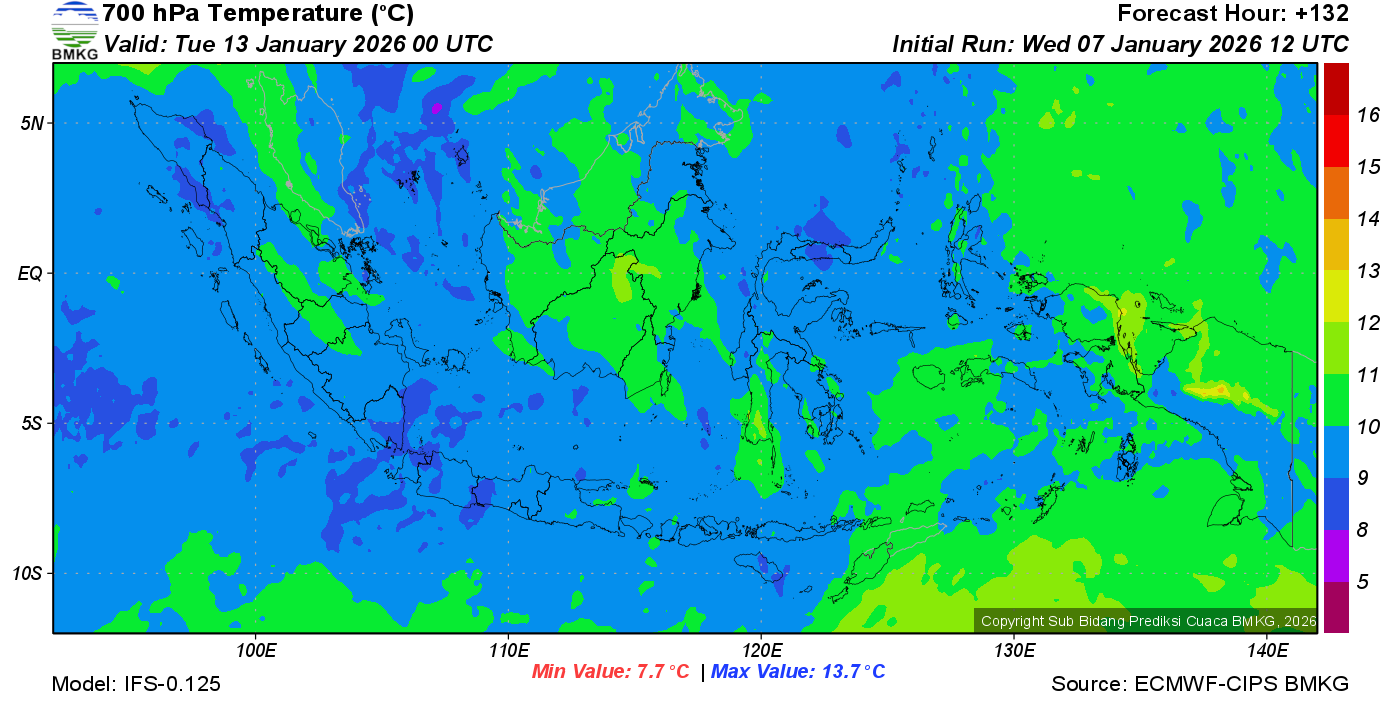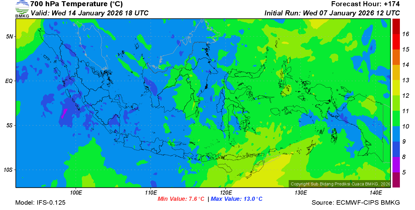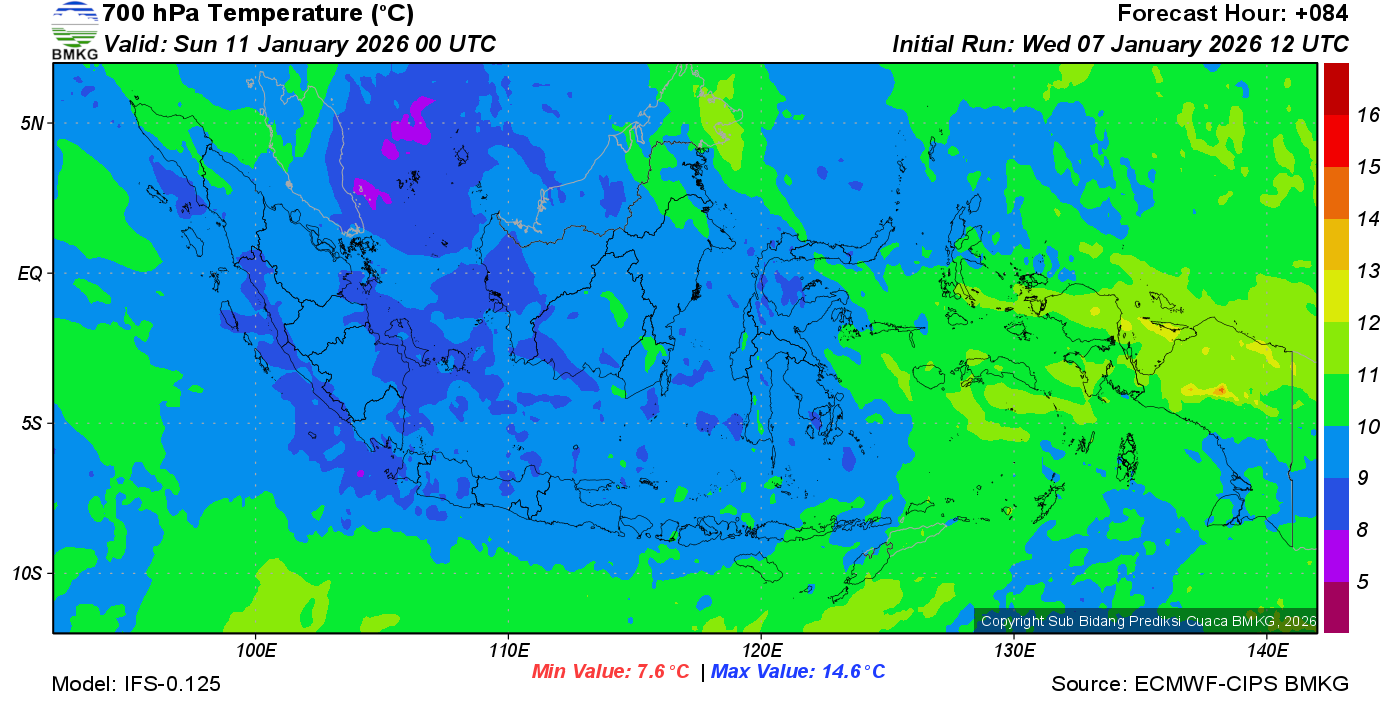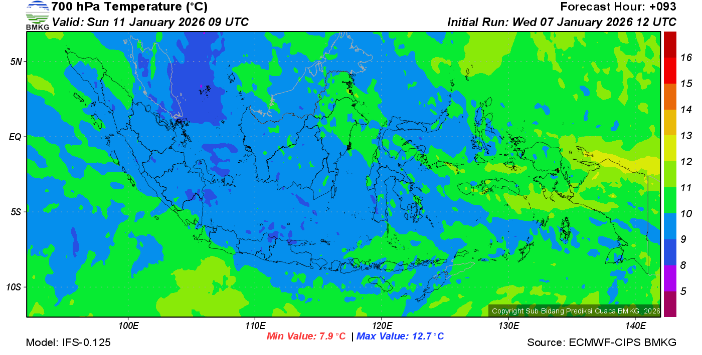 Prediksi Suhu Titik Embun 700 hPa NTT
