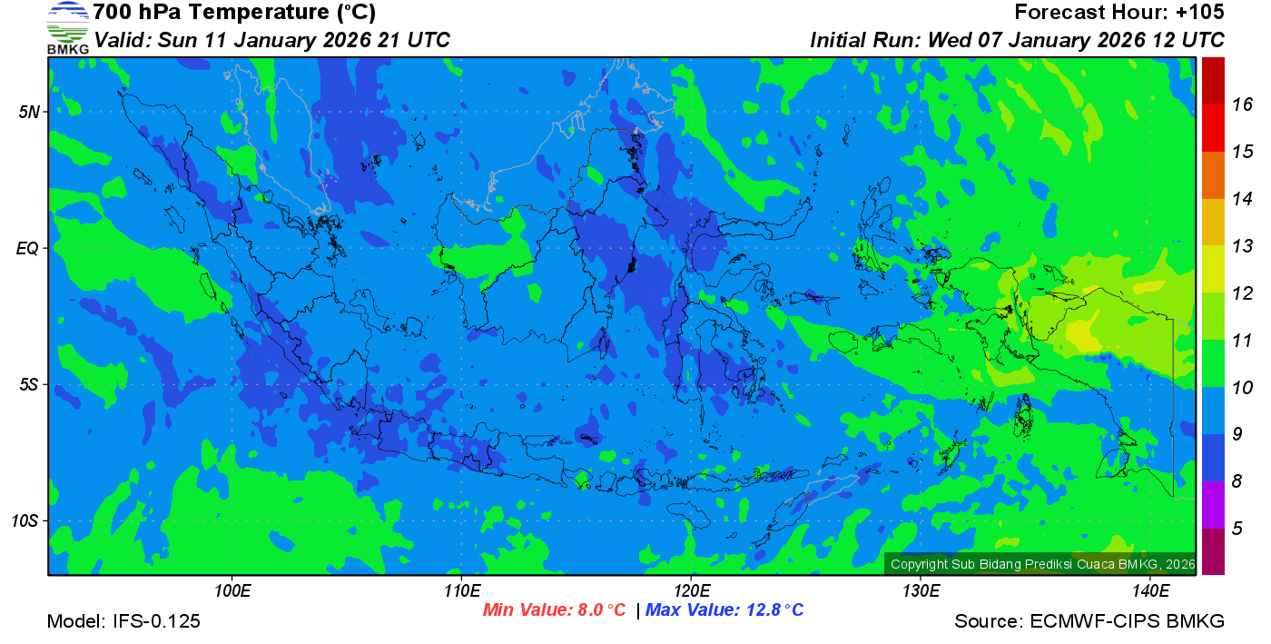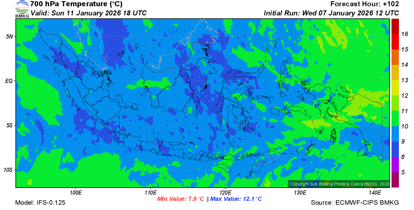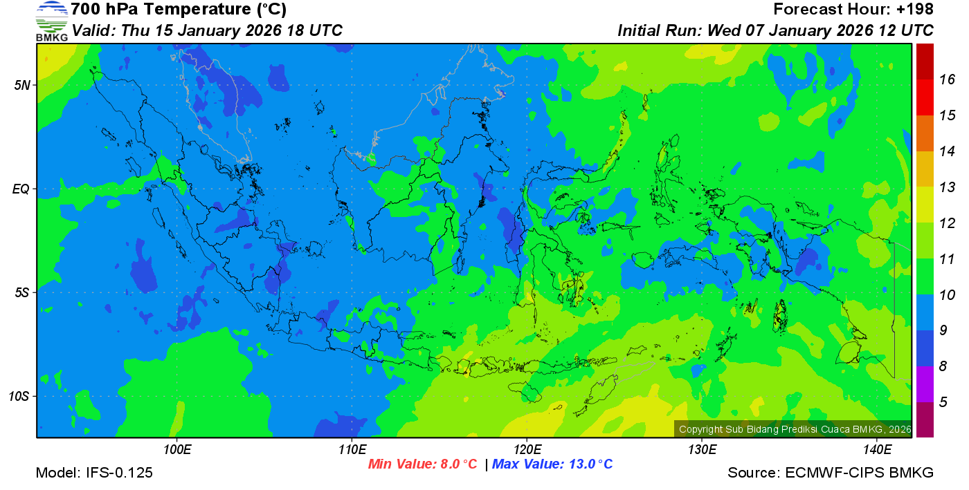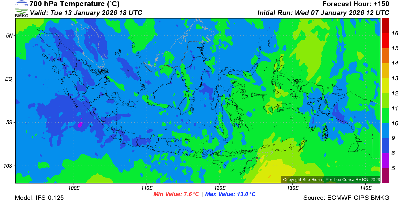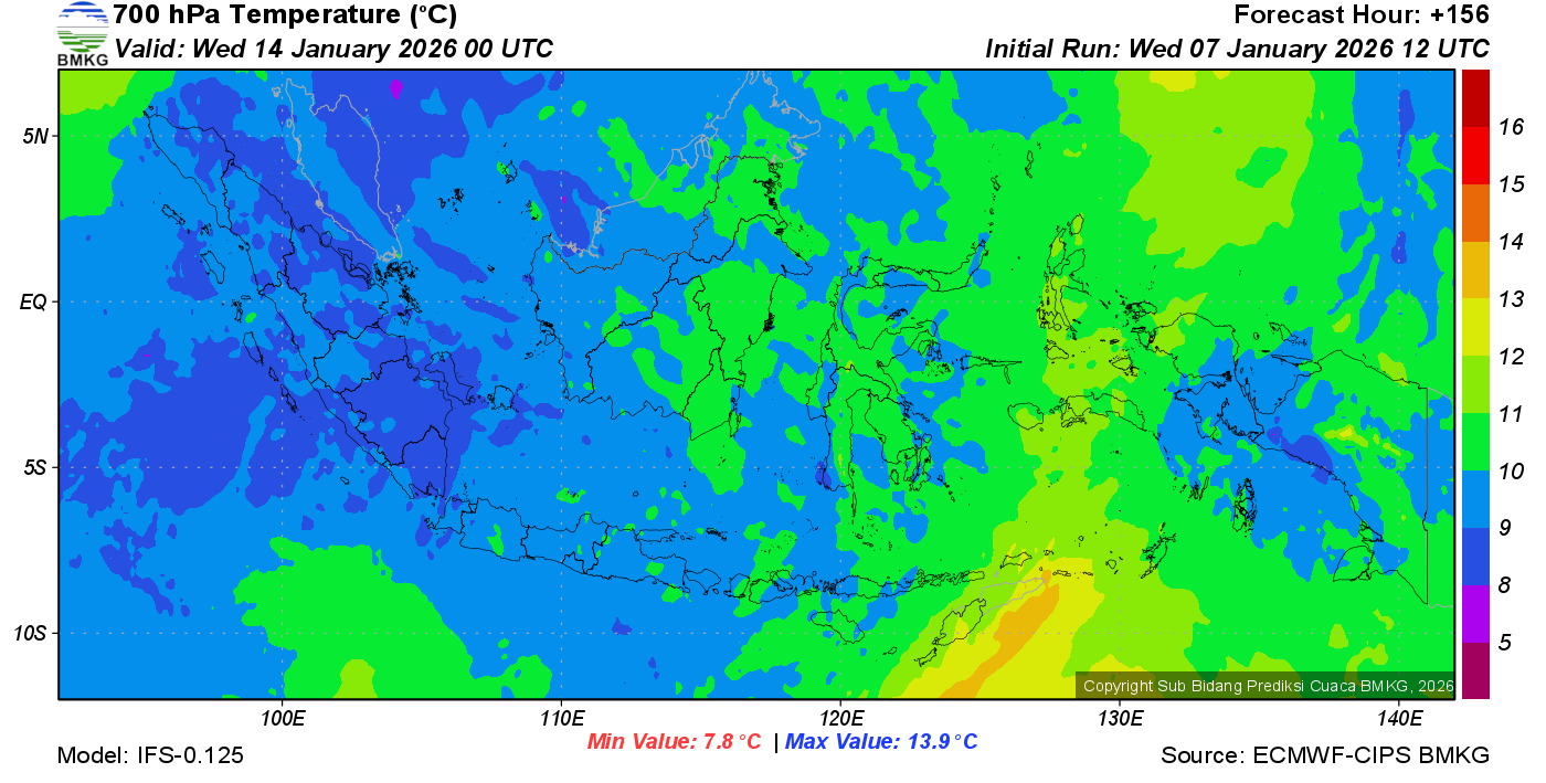 Prediksi Suhu Titik Embun 700 hPa NTT