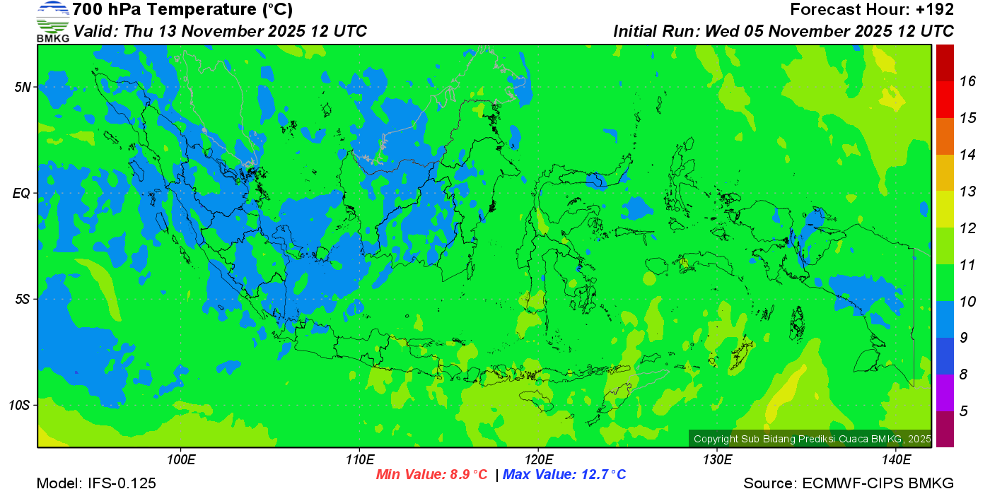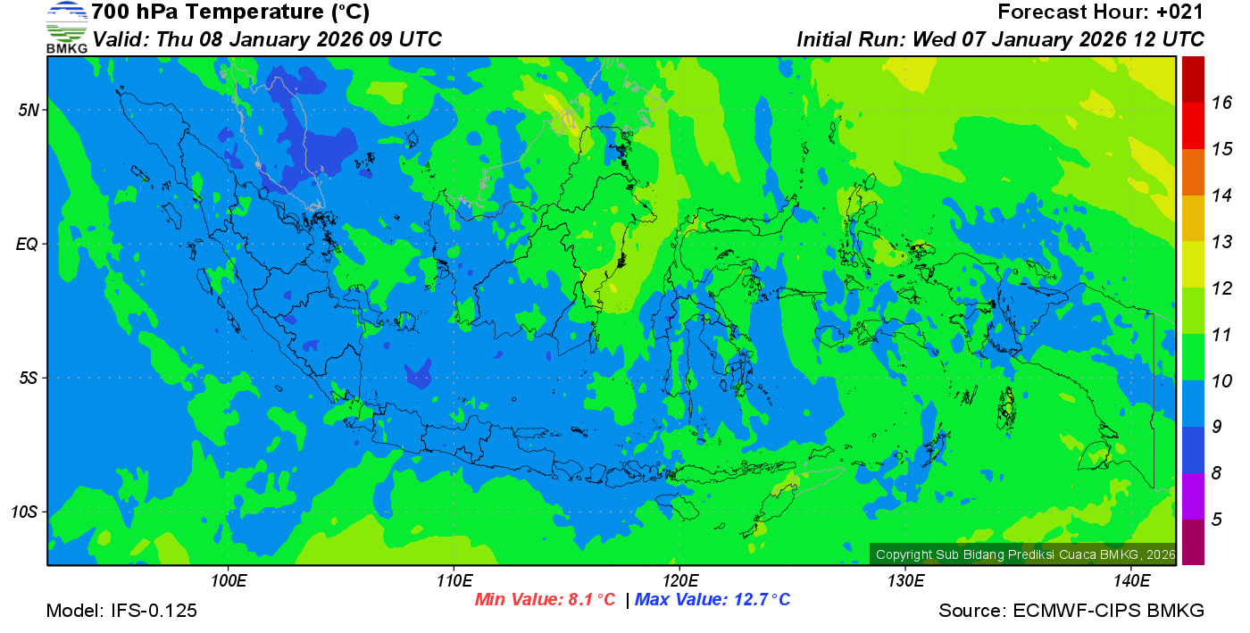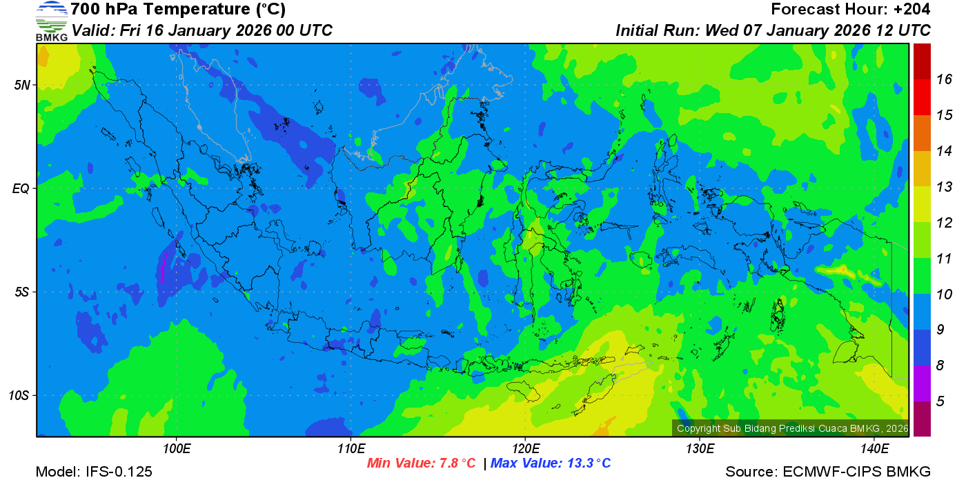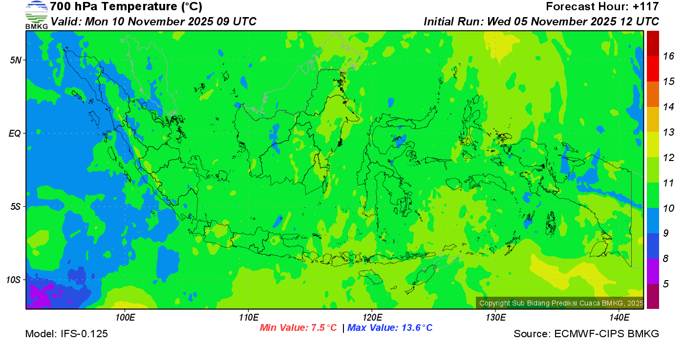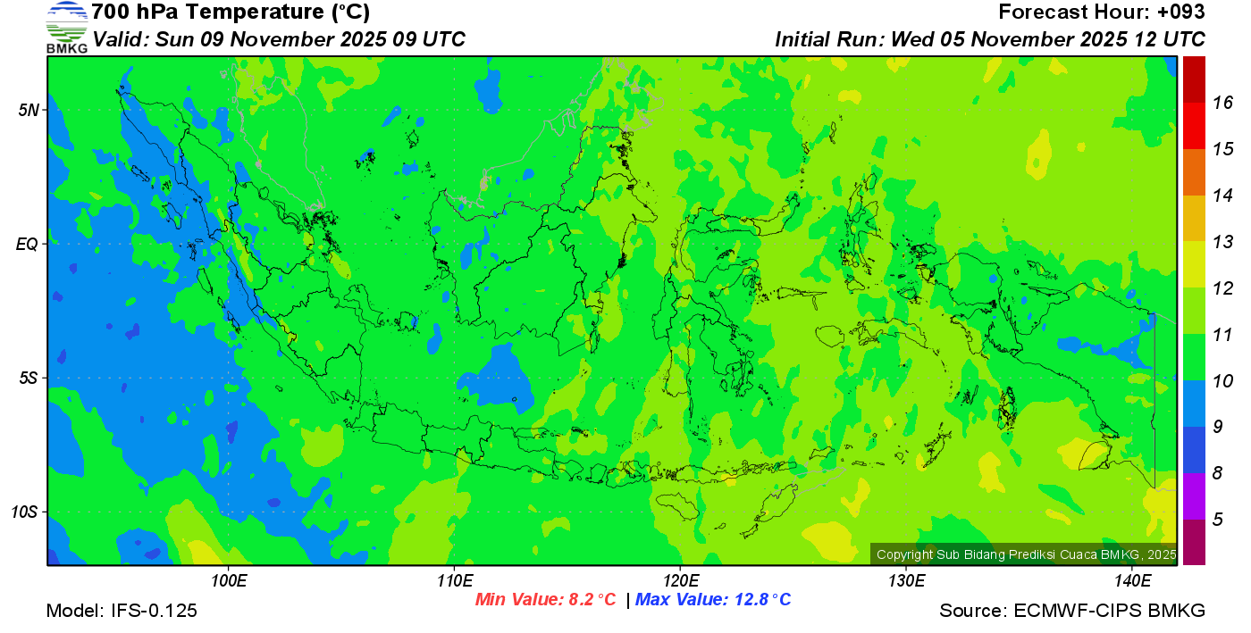 Prediksi Suhu Titik Embun 700 hPa NTT