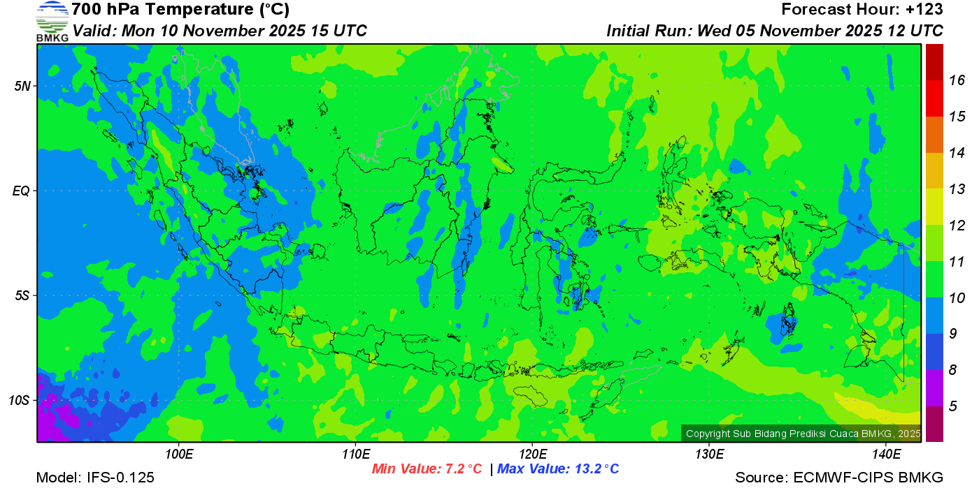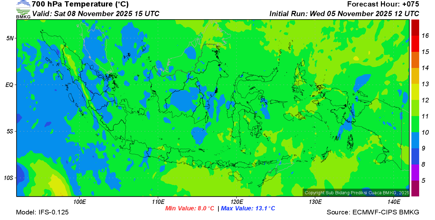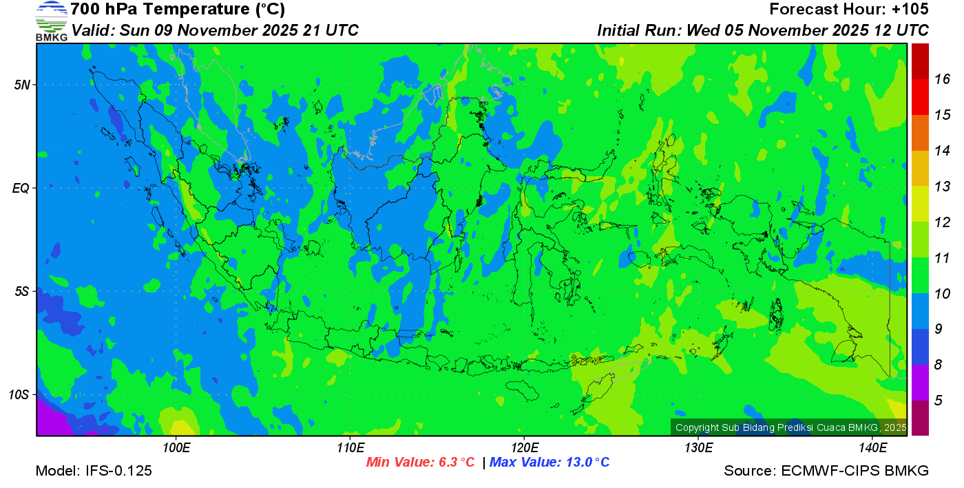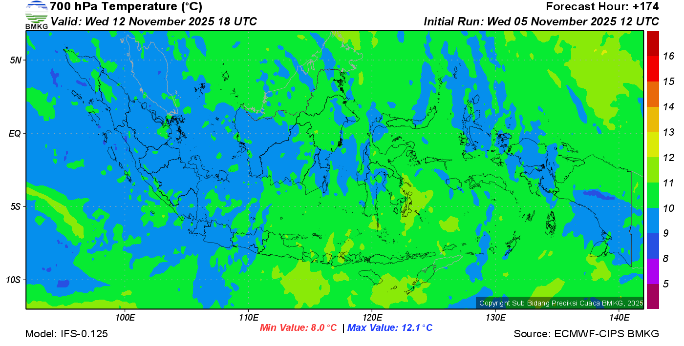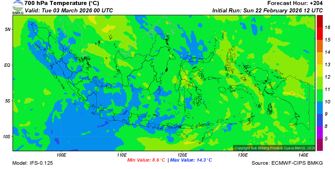Prediksi Suhu Titik Embun 700 hPa NTT