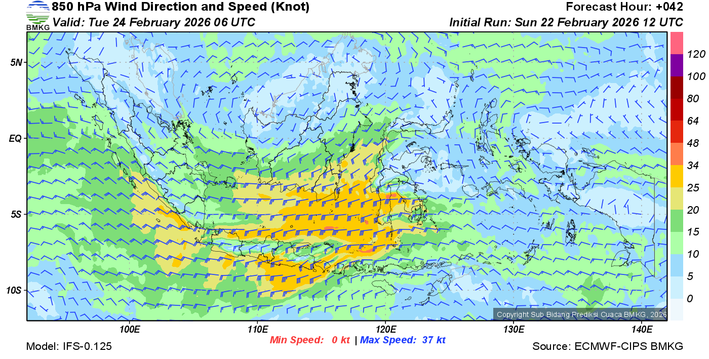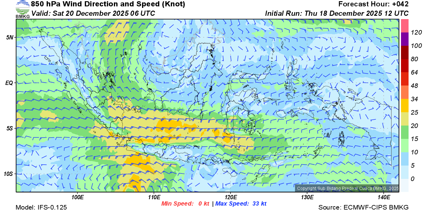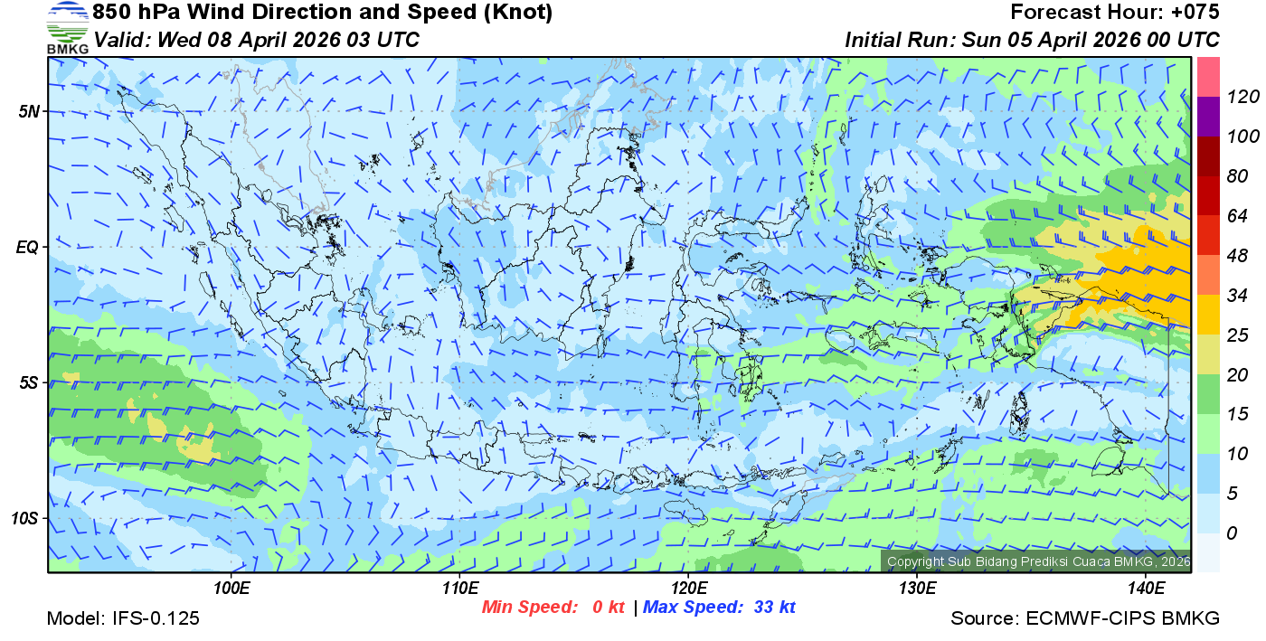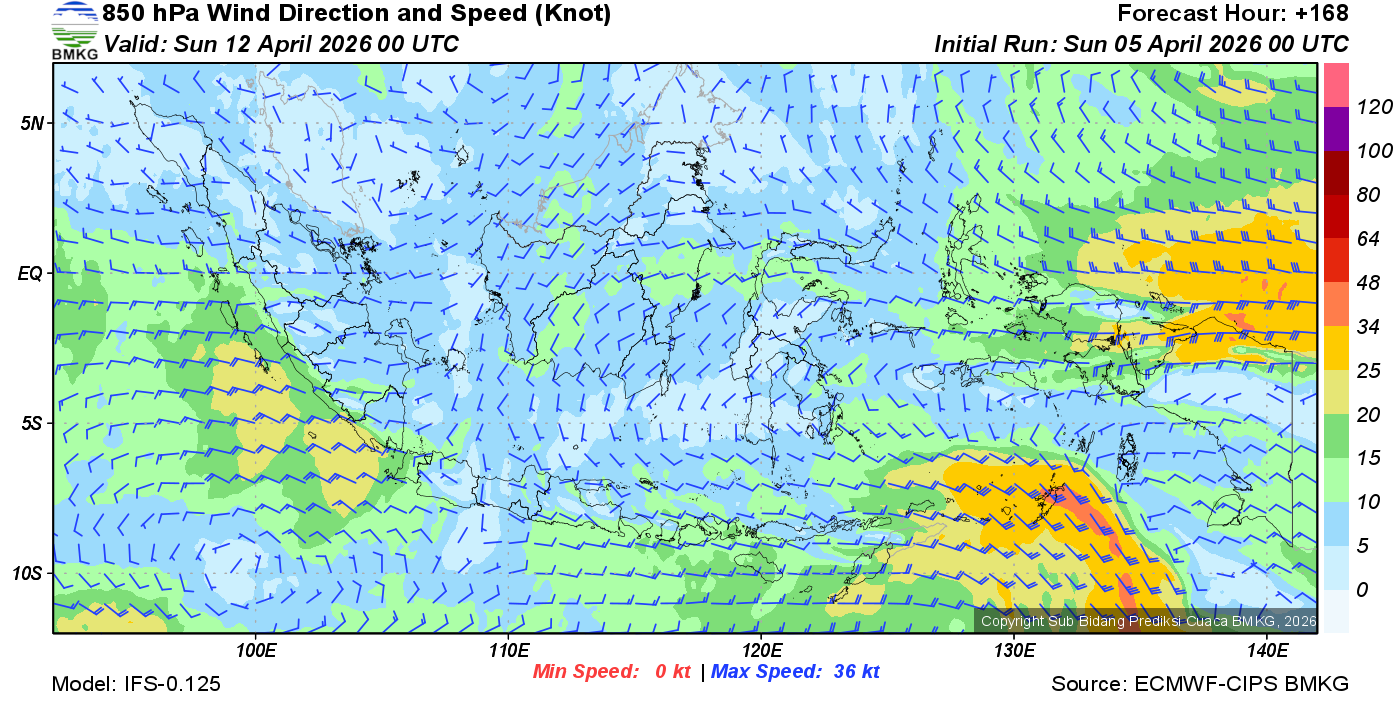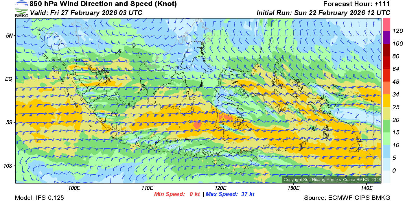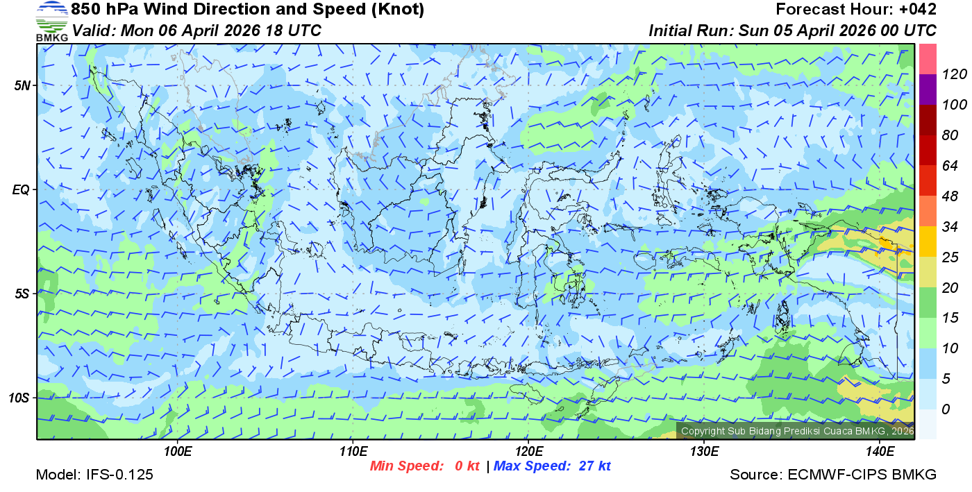 Prakiraan Angin Lapisan 850 Gunung Awu