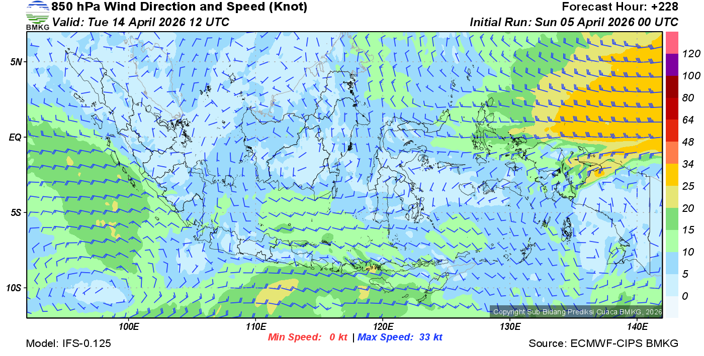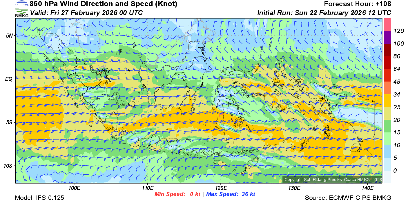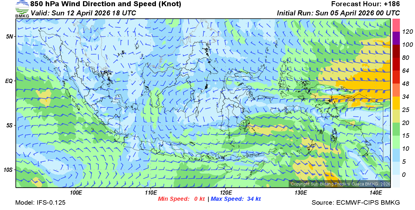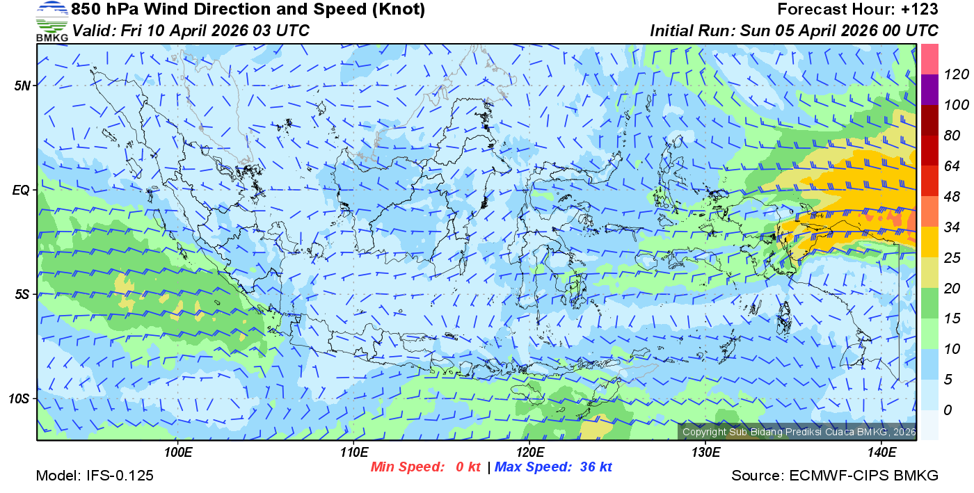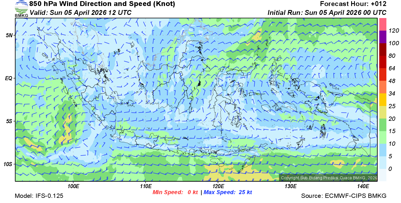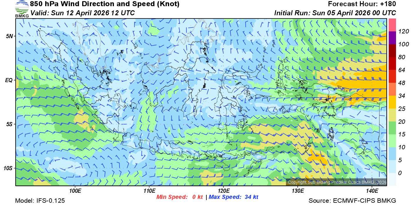 Prakiraan Angin Lapisan 850 Gunung Awu