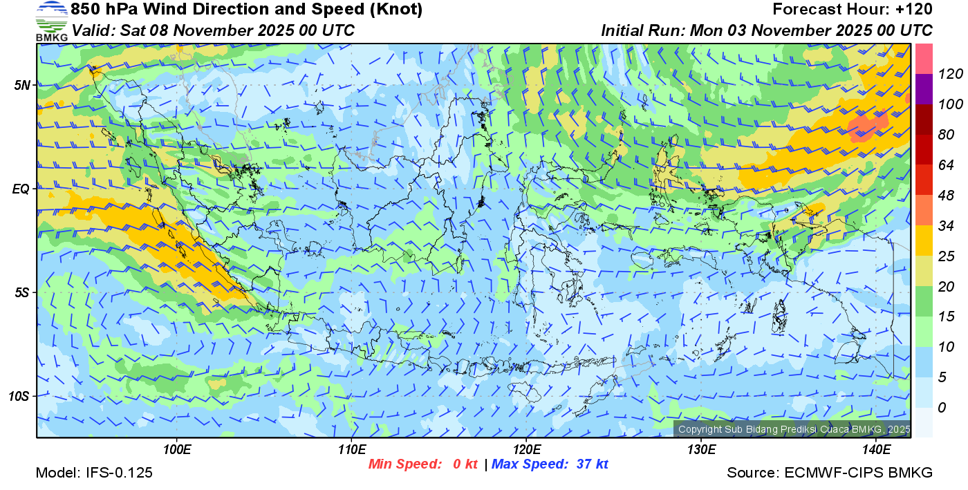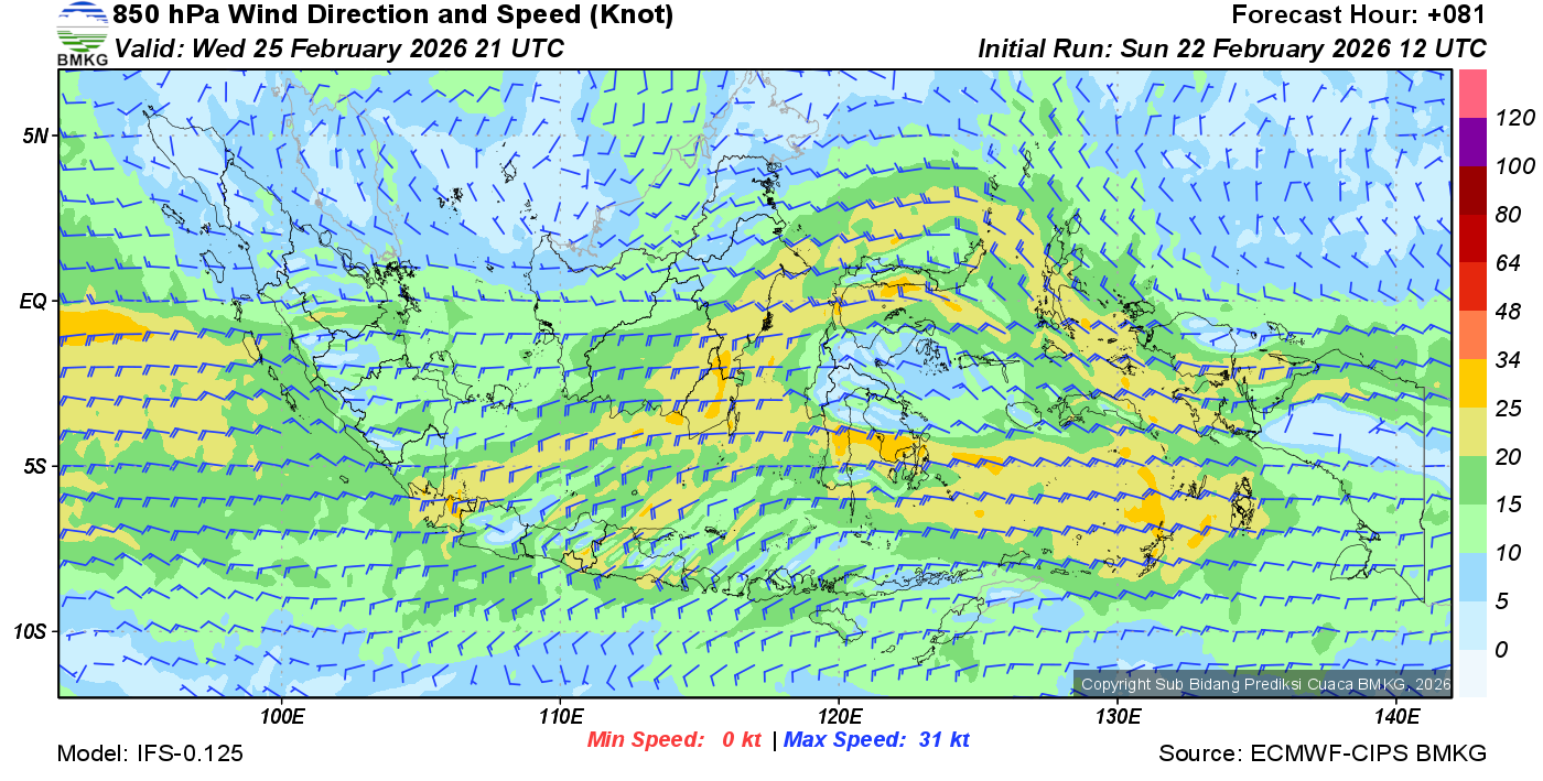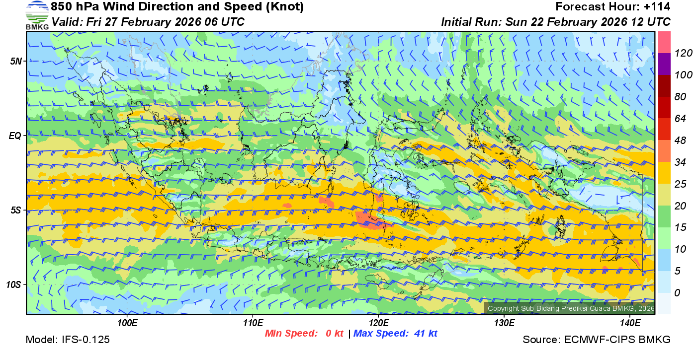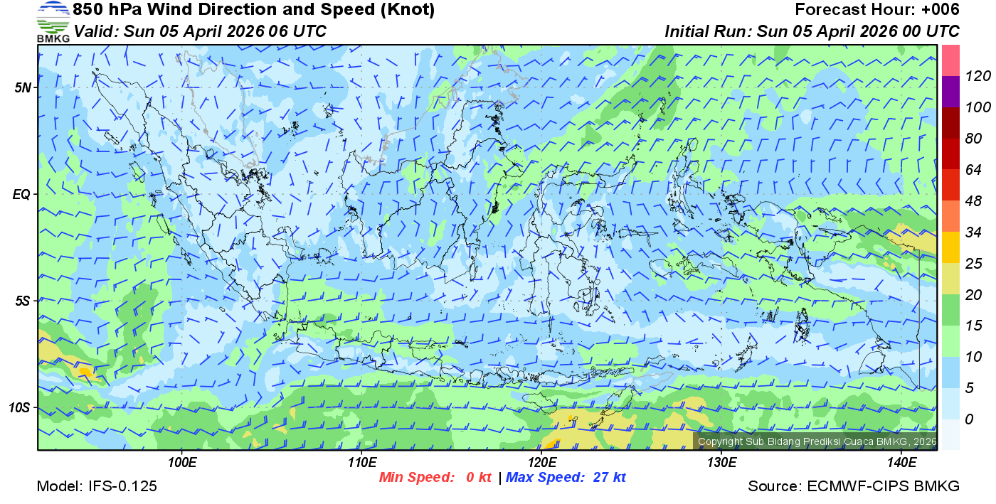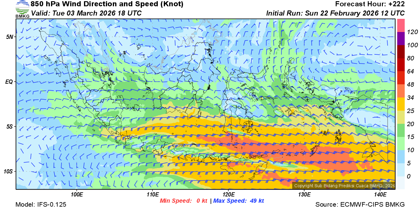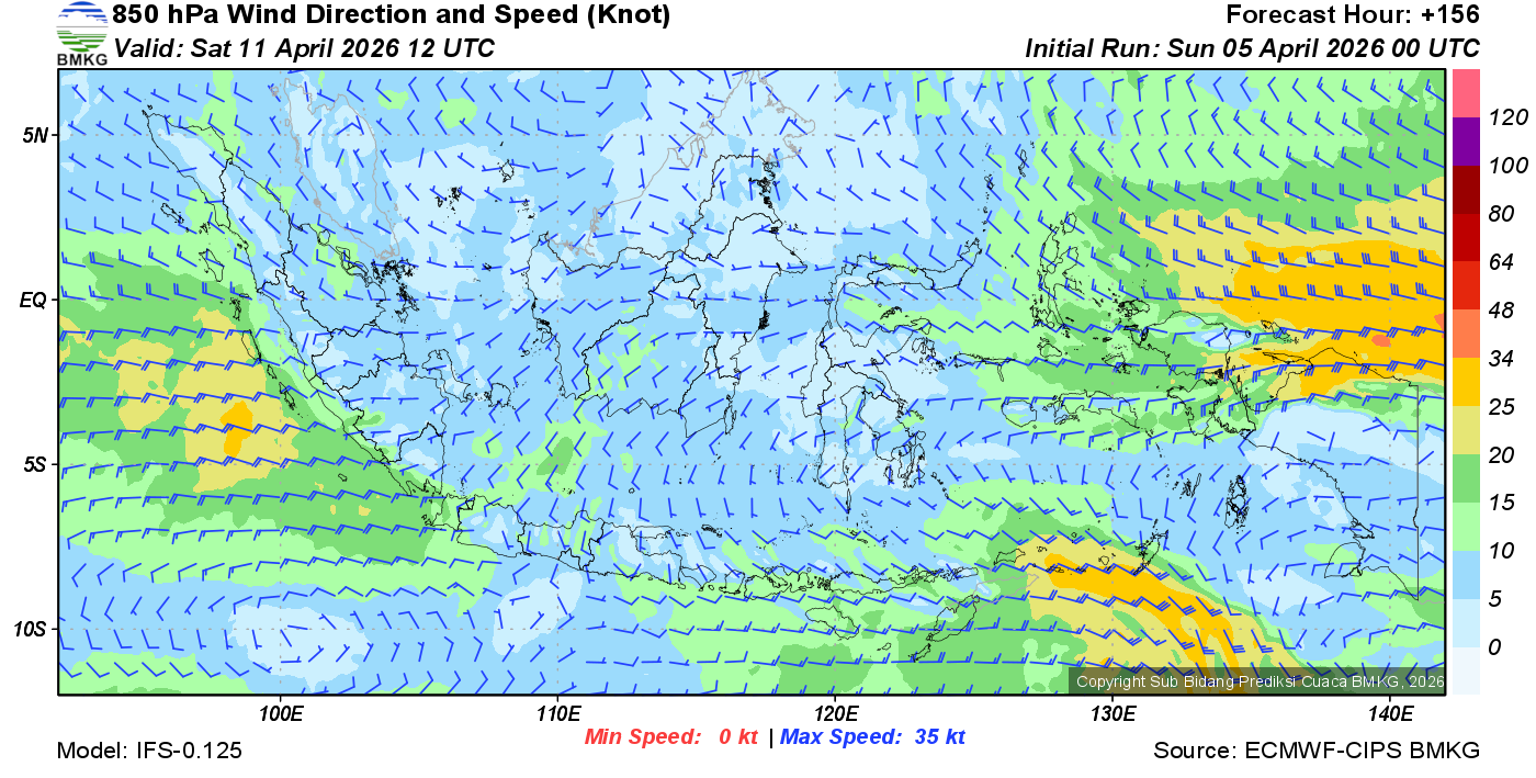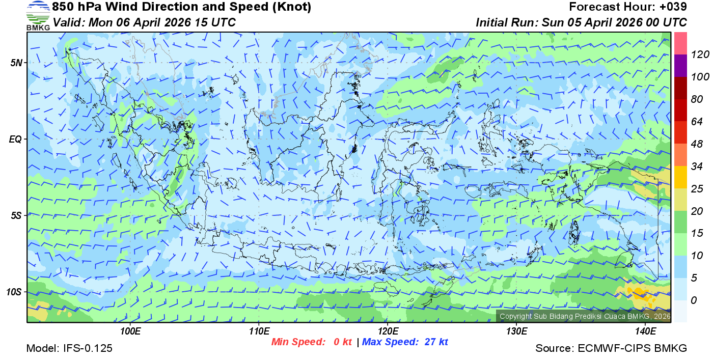 Prakiraan Angin Lapisan 850 Gunung Awu