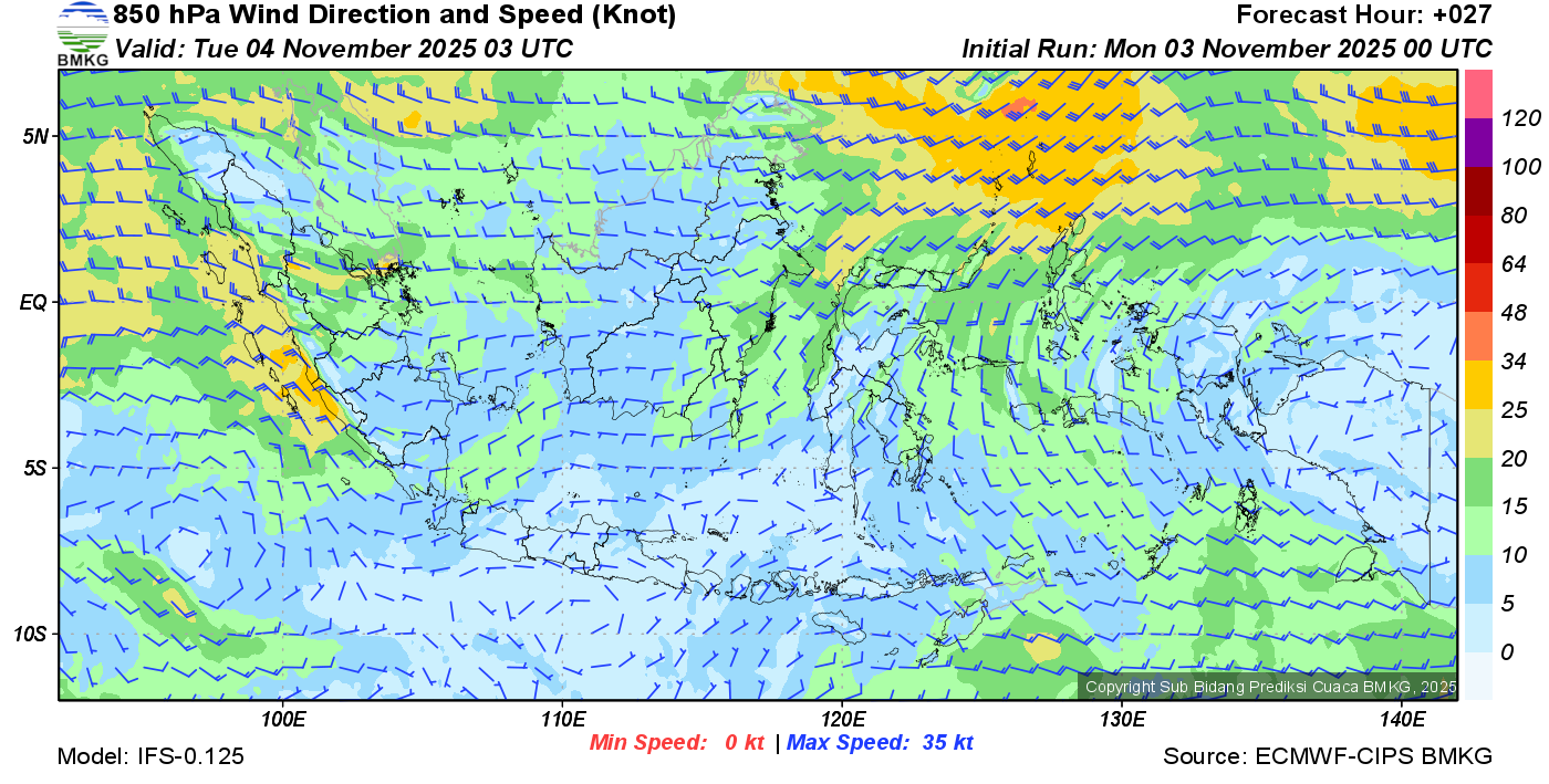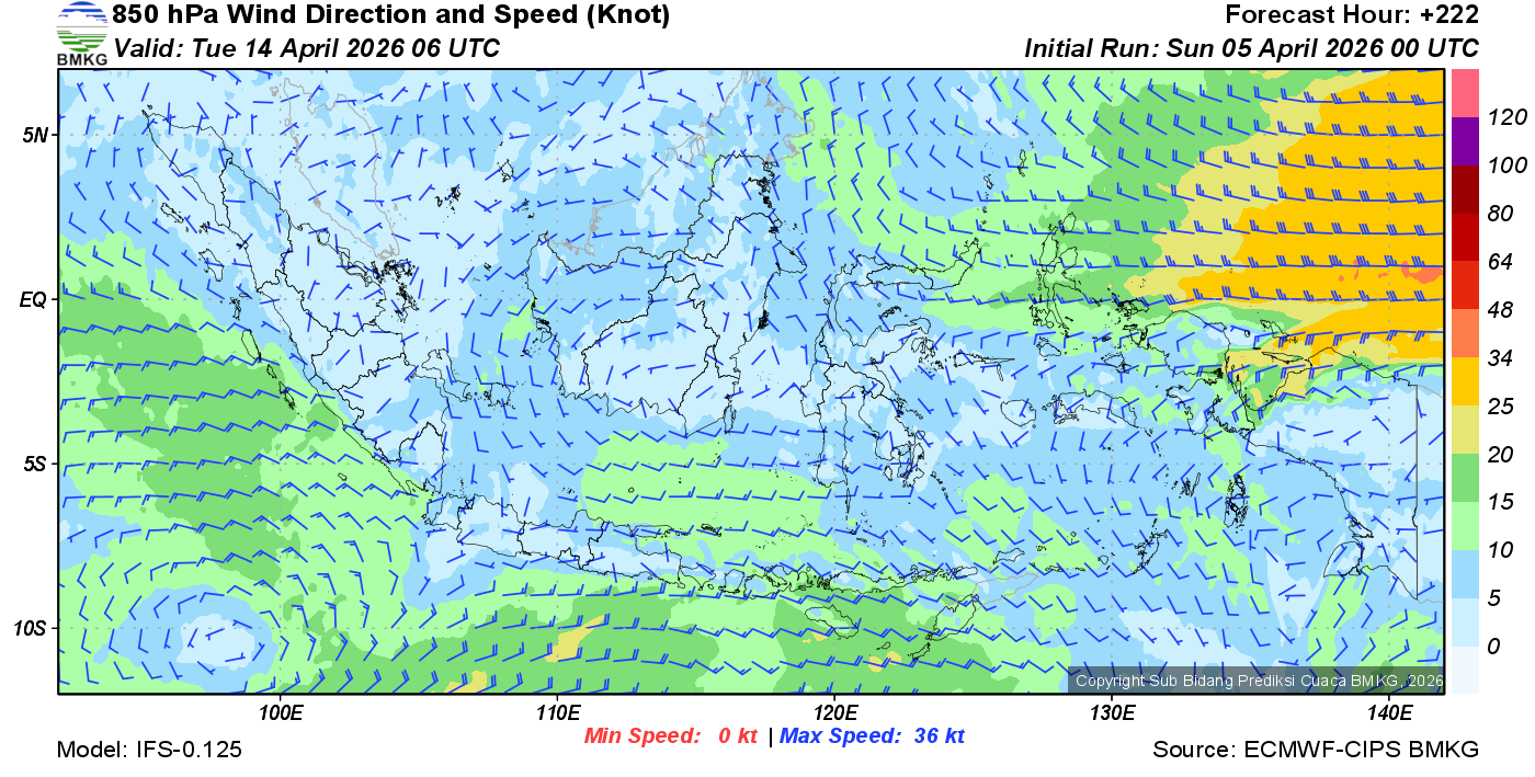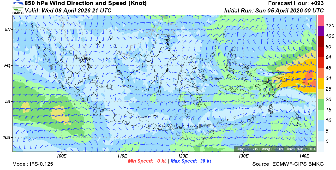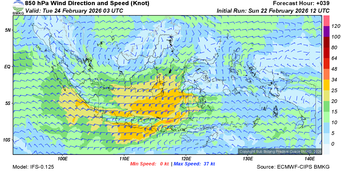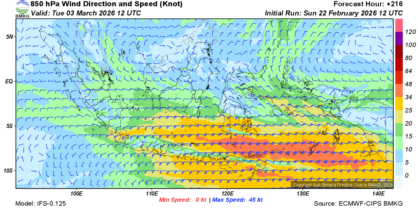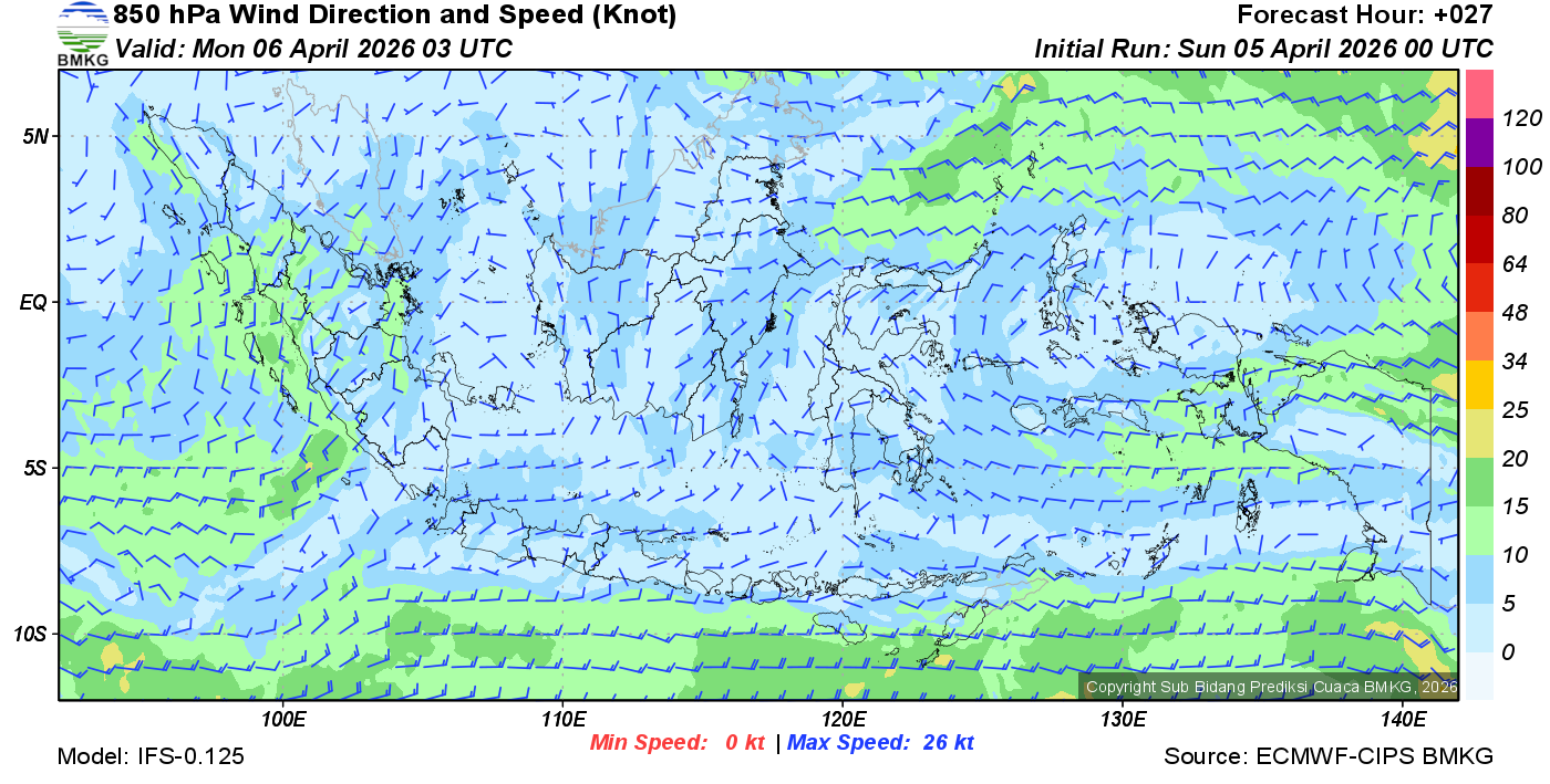 Prakiraan Angin Lapisan 850 Gunung Awu
