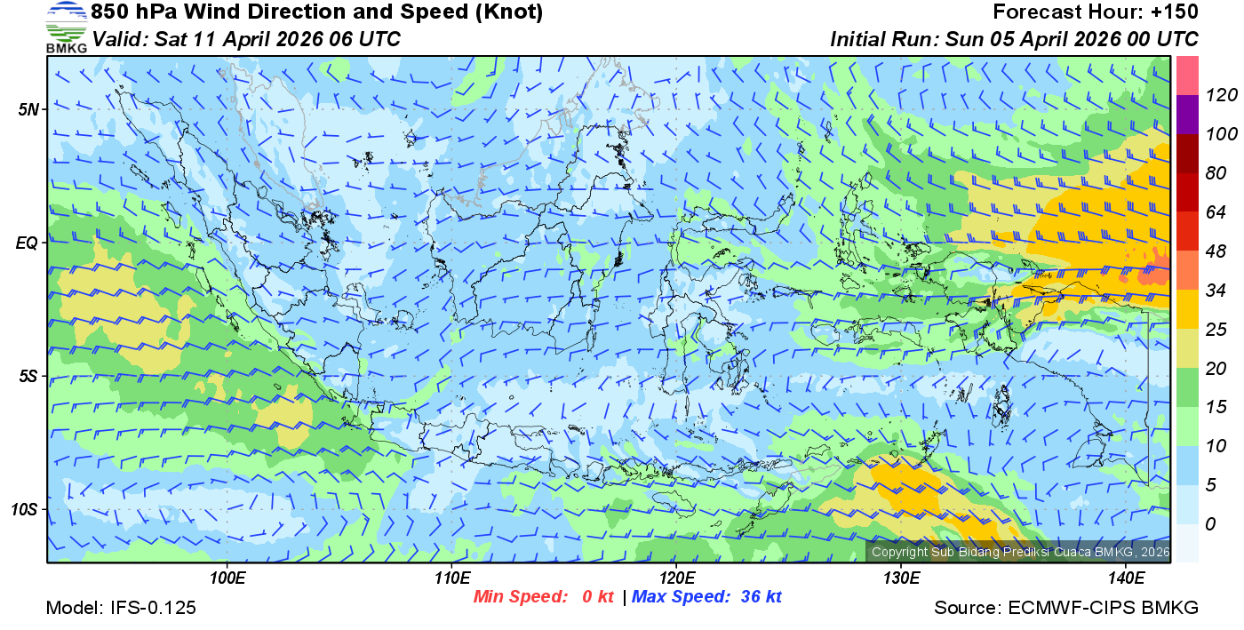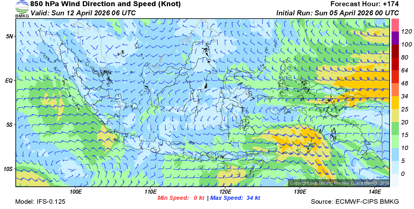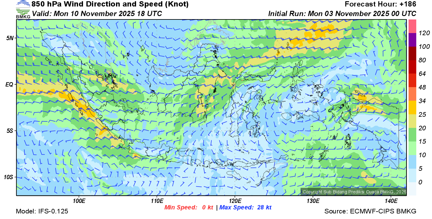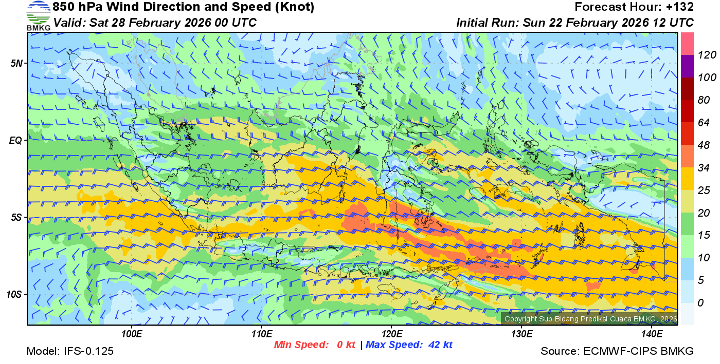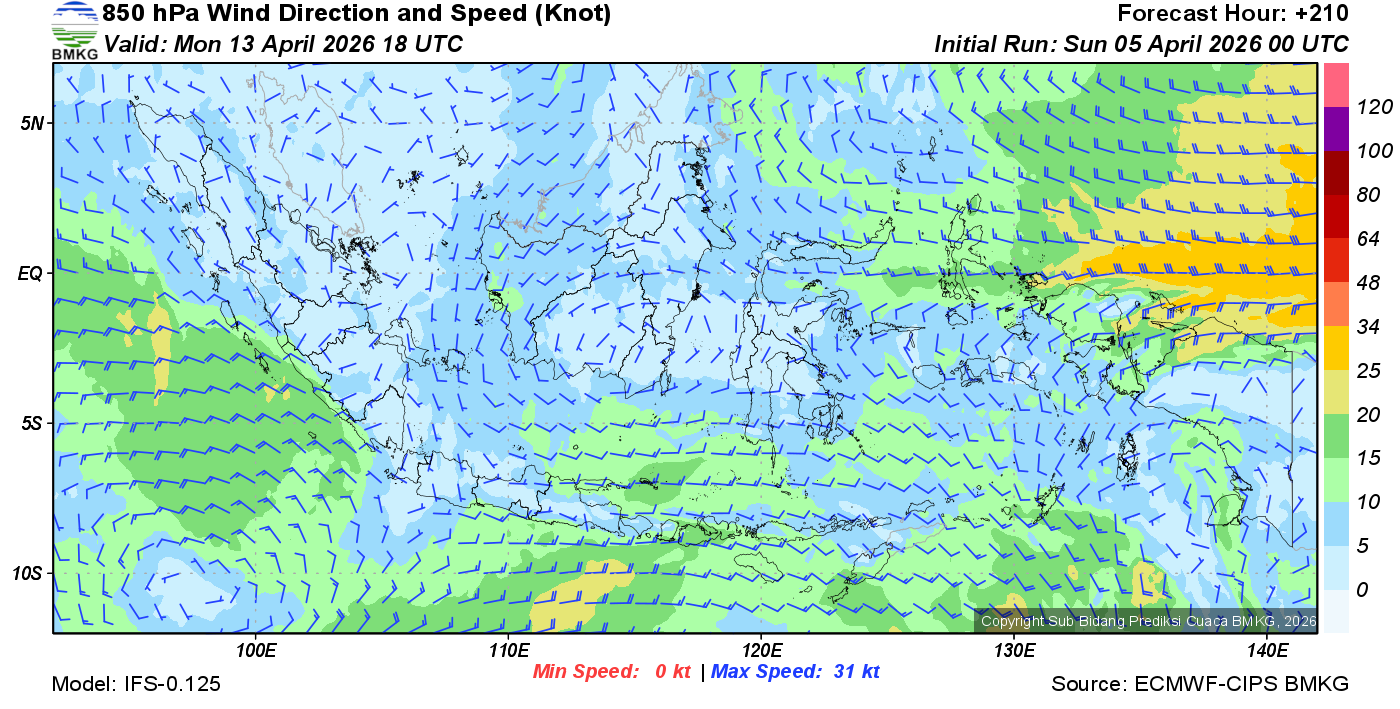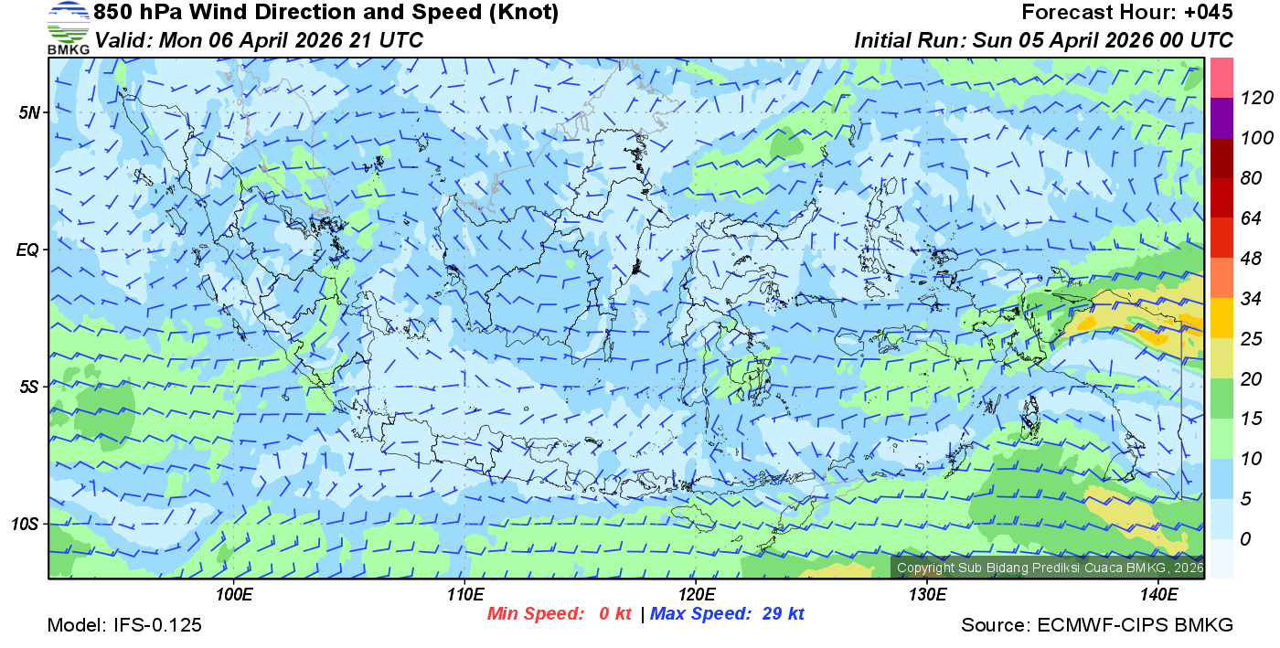 Prakiraan Angin Lapisan 850 Gunung Awu