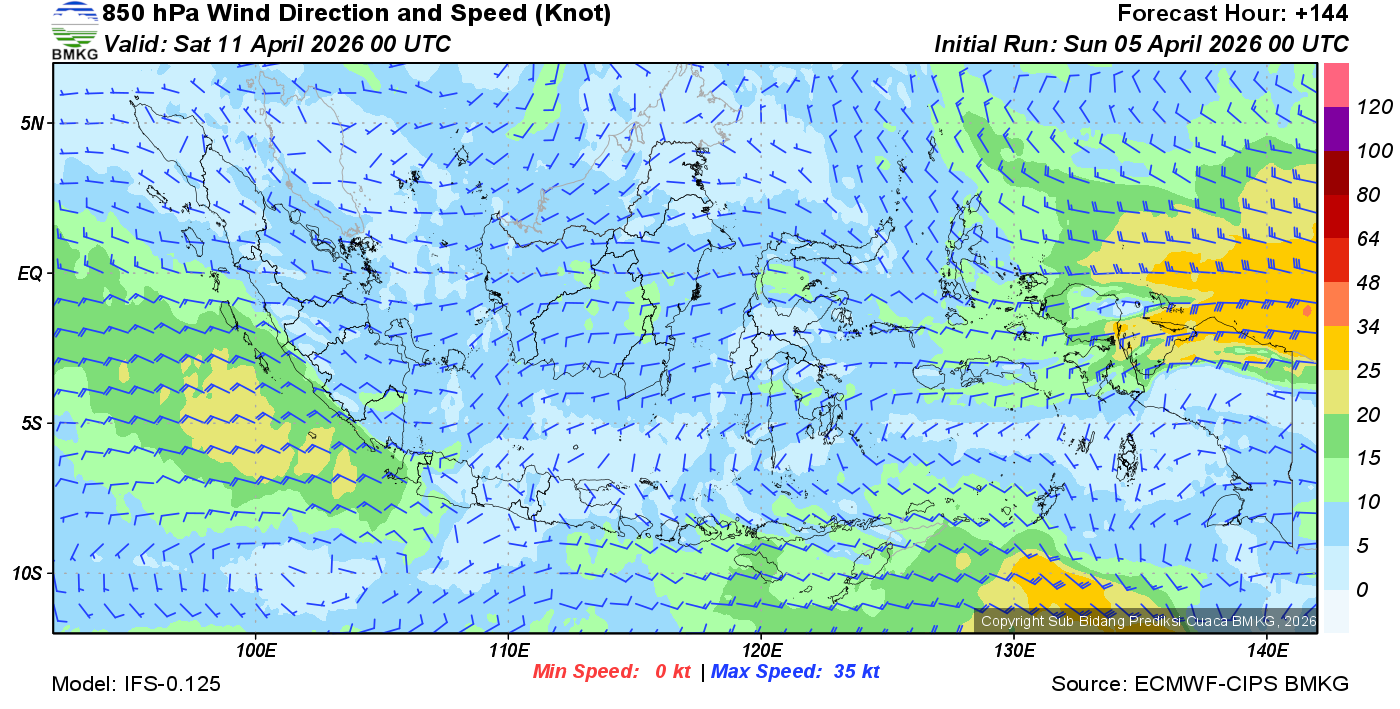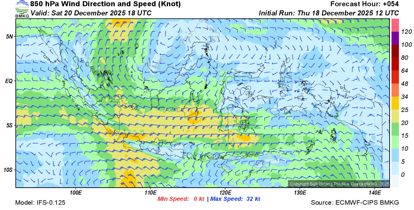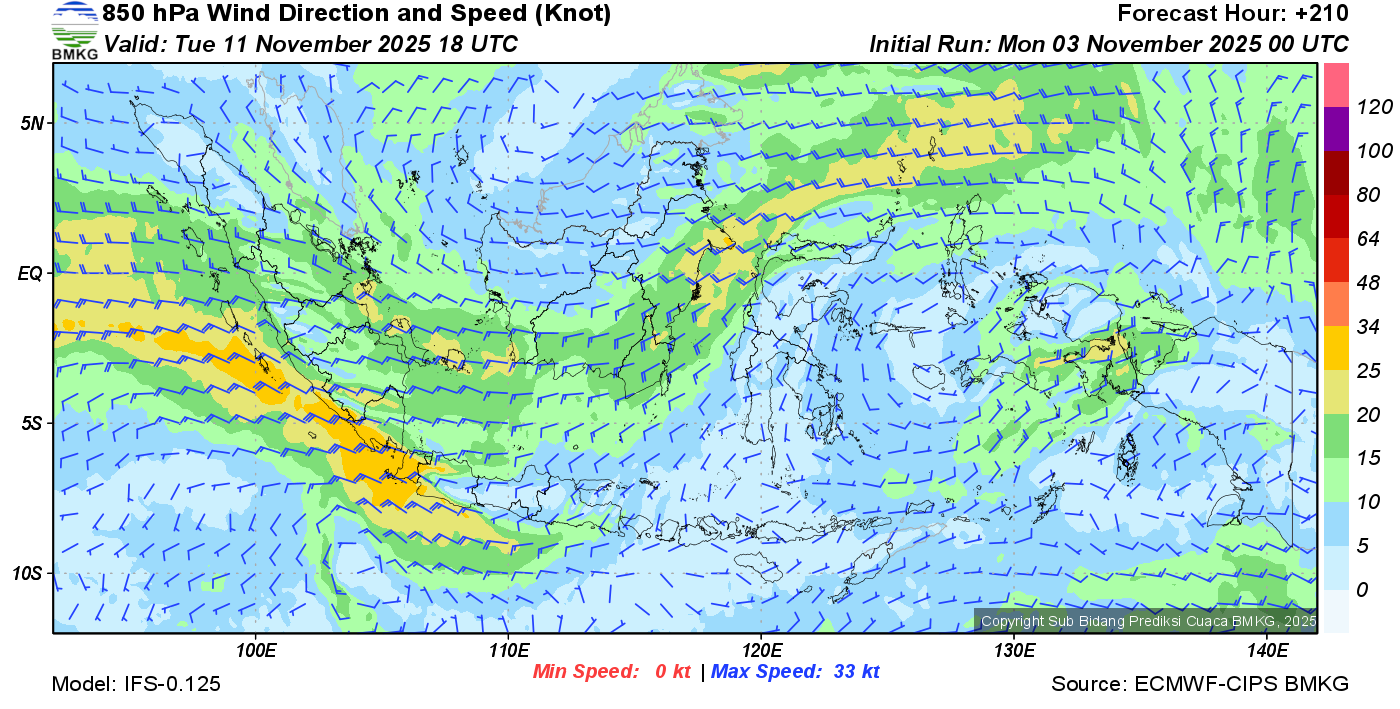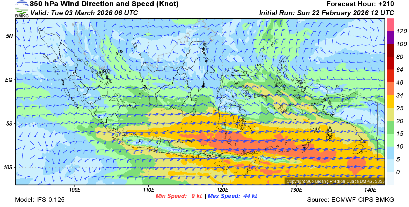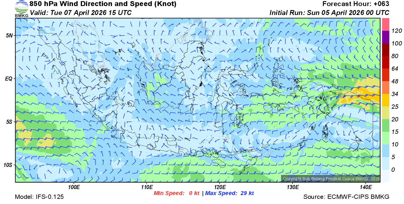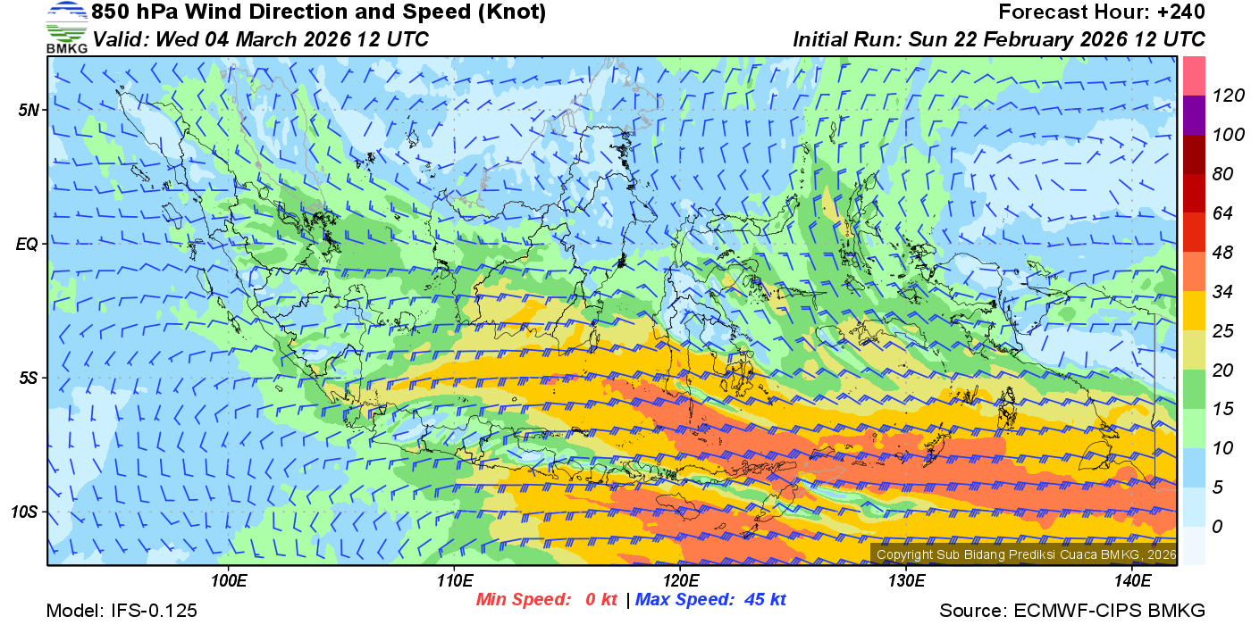 Prakiraan Angin Lapisan 850 Gunung Awu
