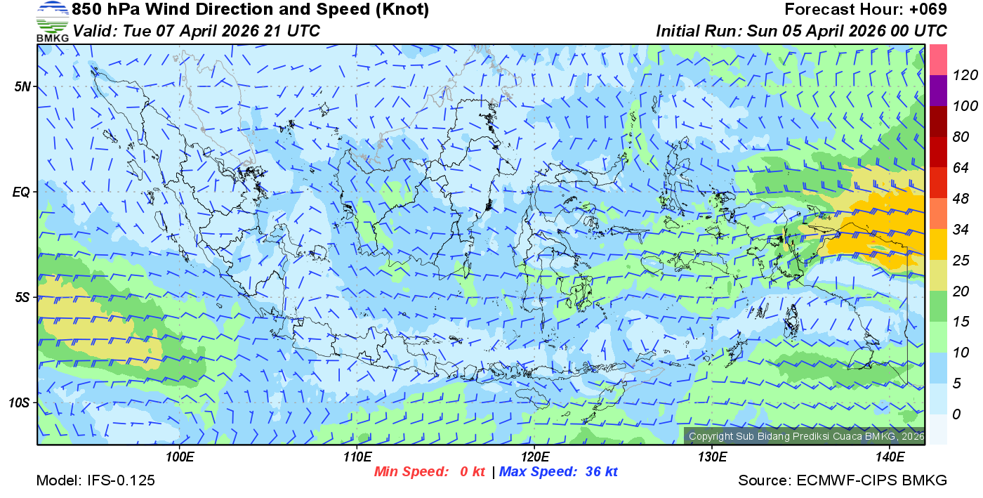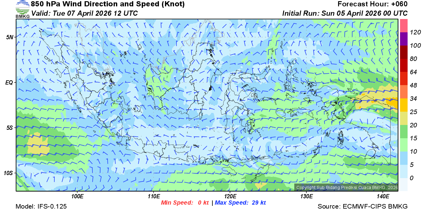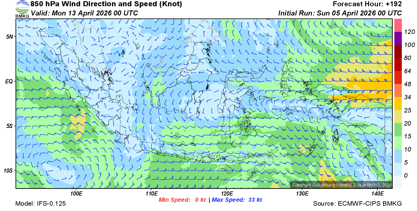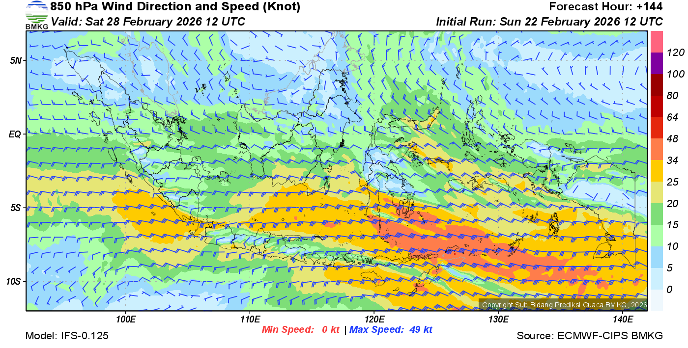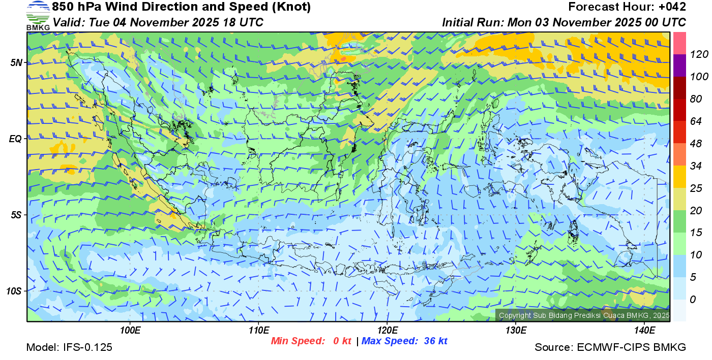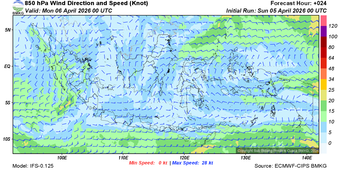 Prakiraan Angin Lapisan 850 Gunung Awu