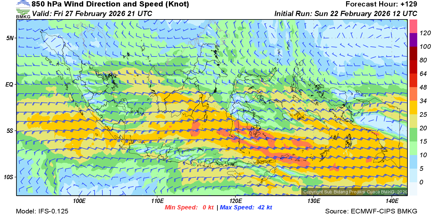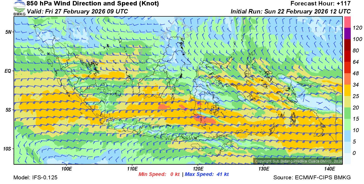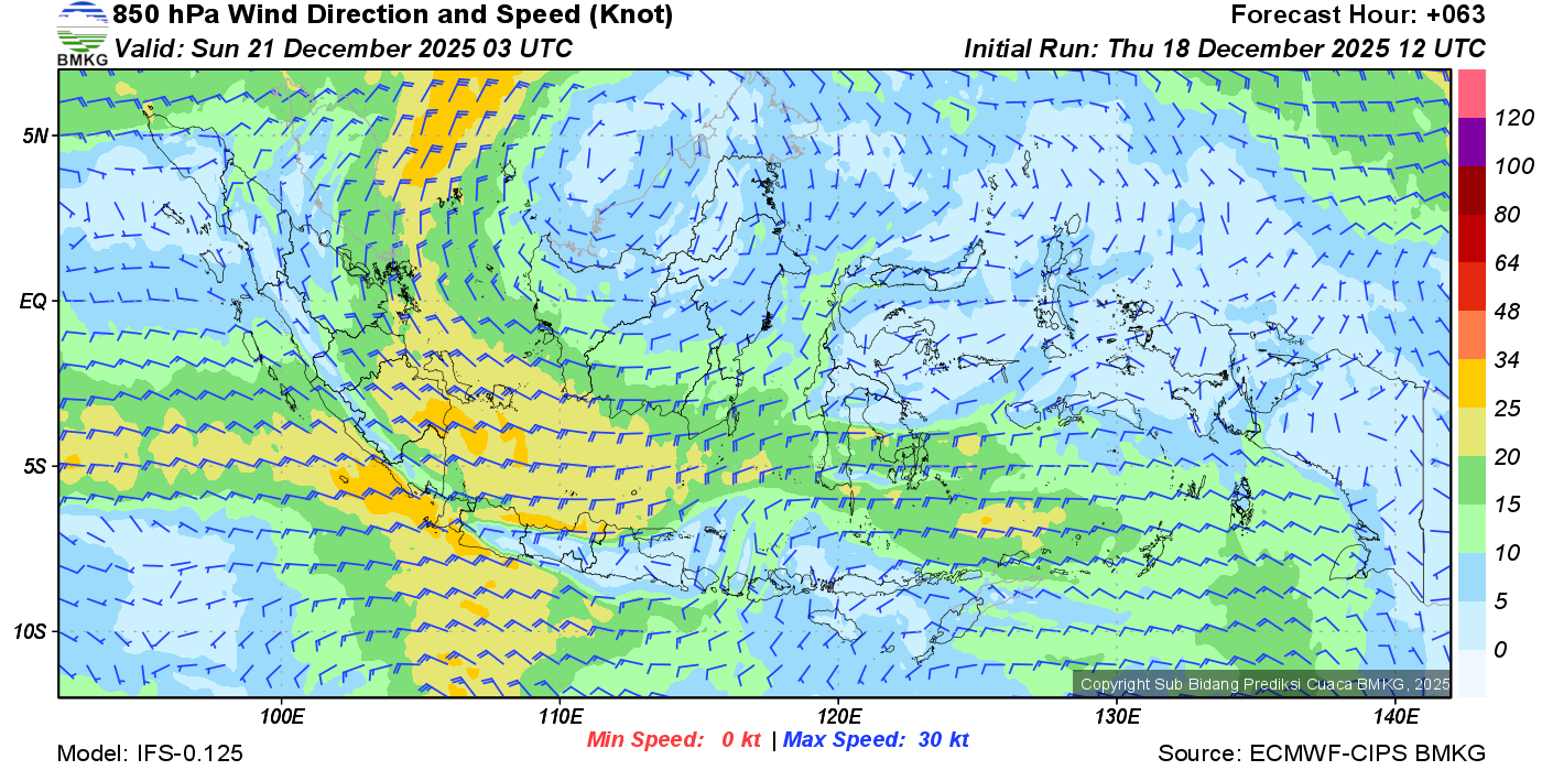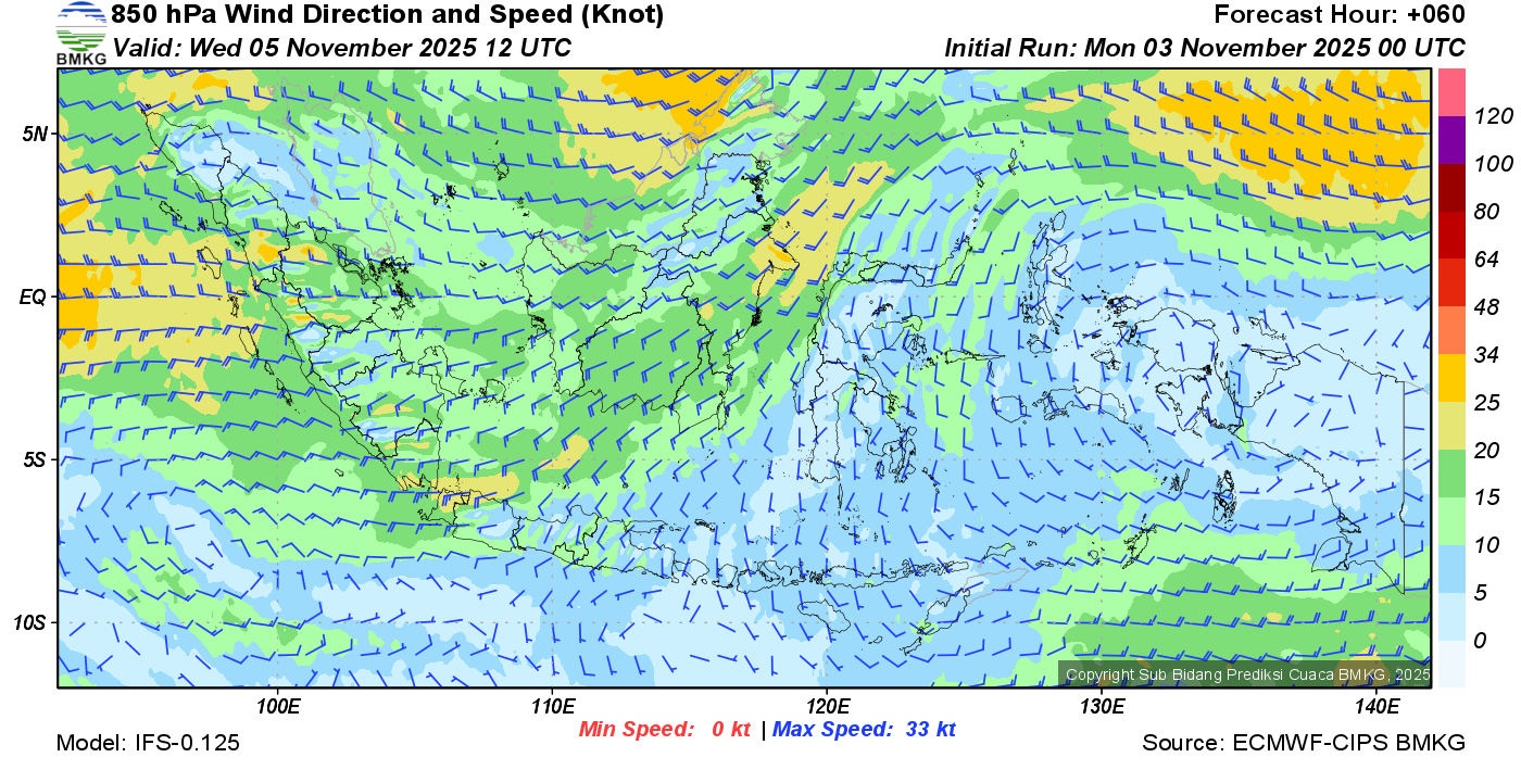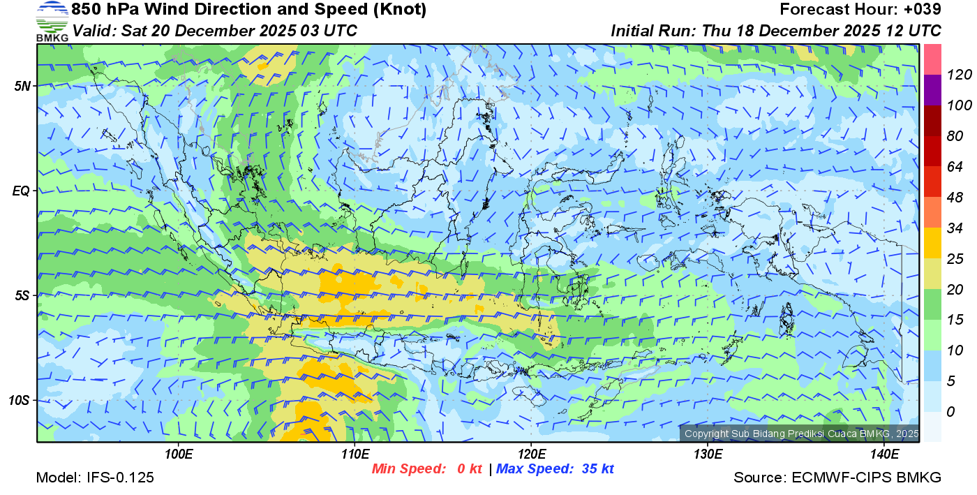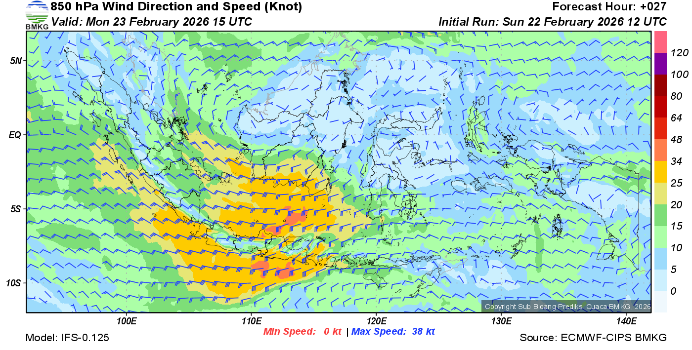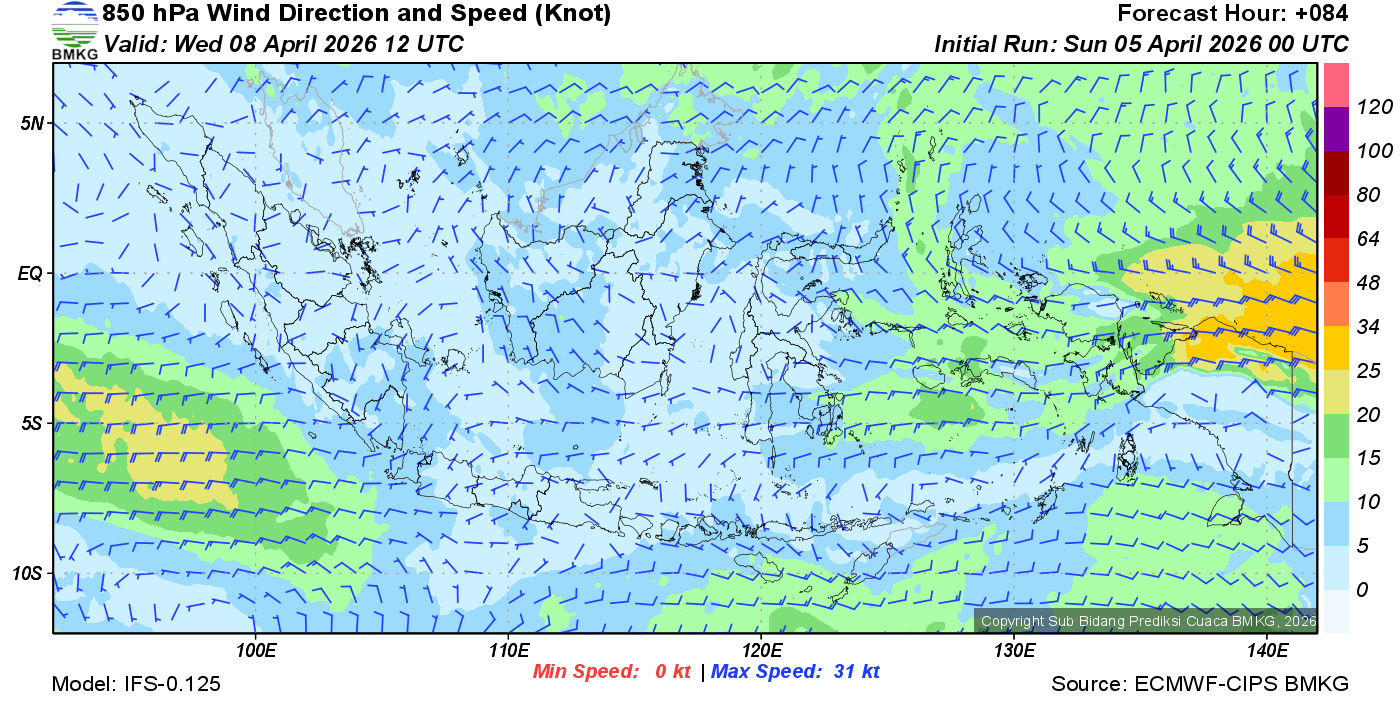 Prakiraan Angin Lapisan 850 Gunung Awu