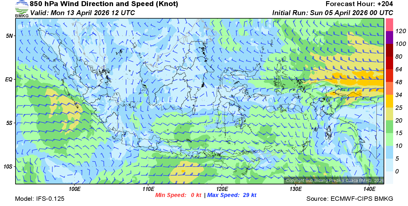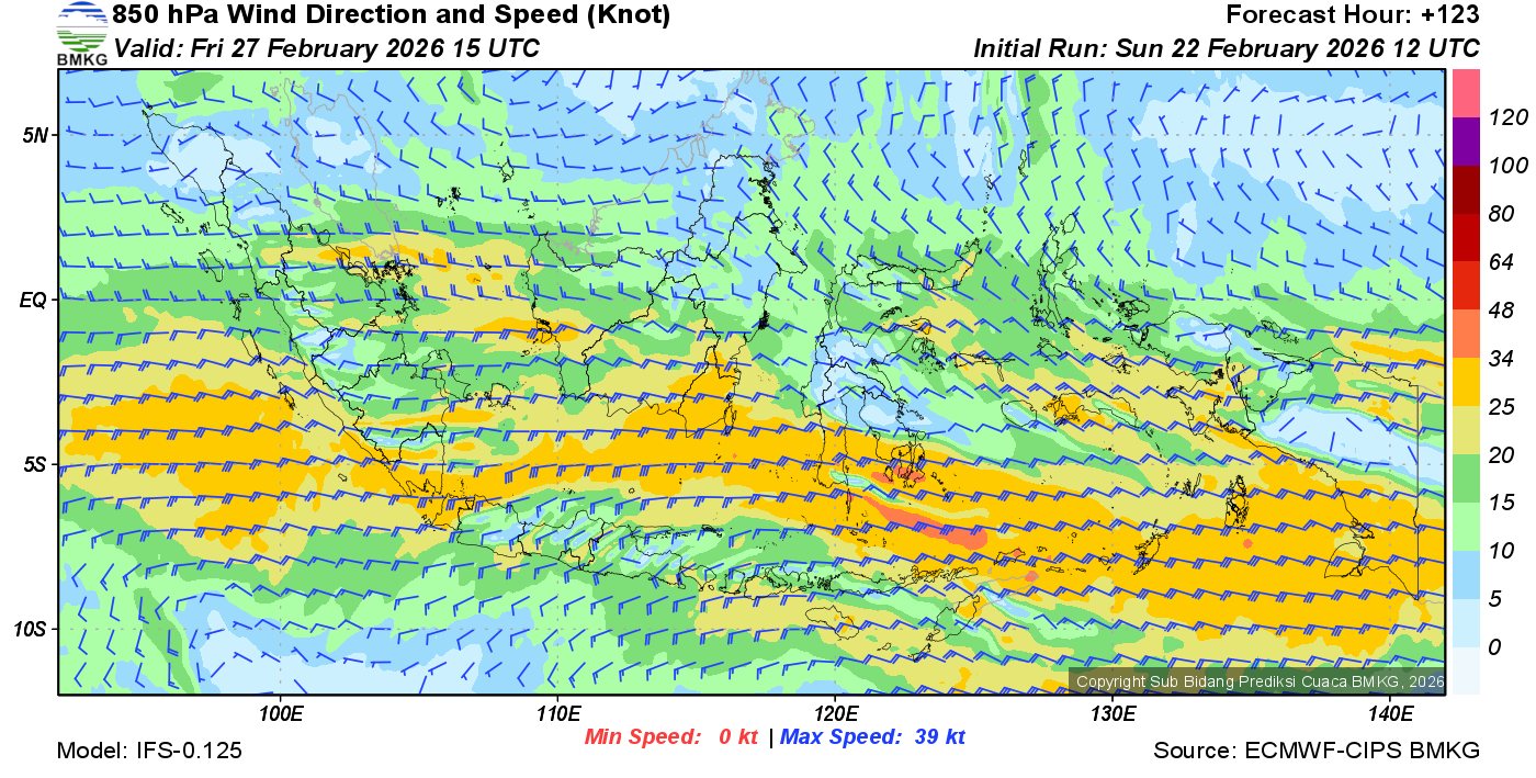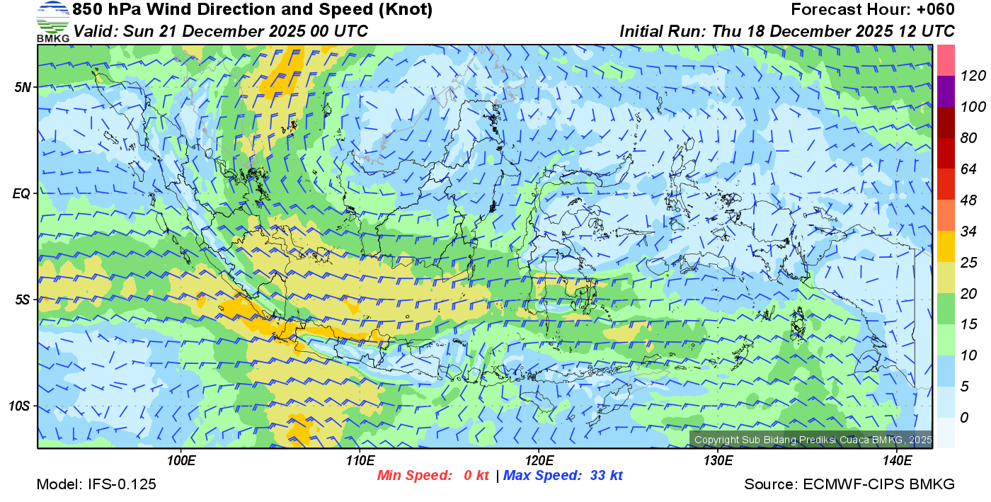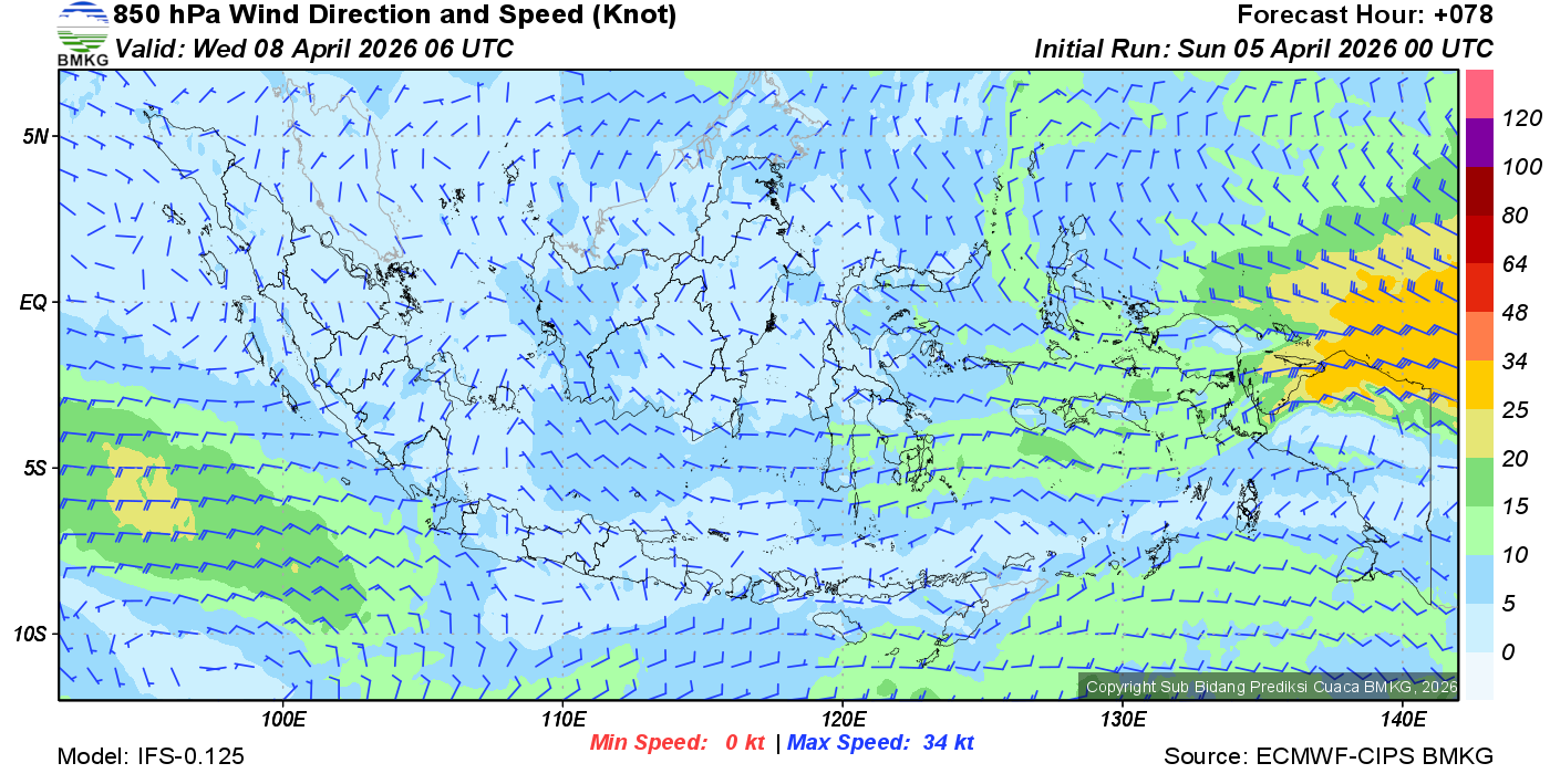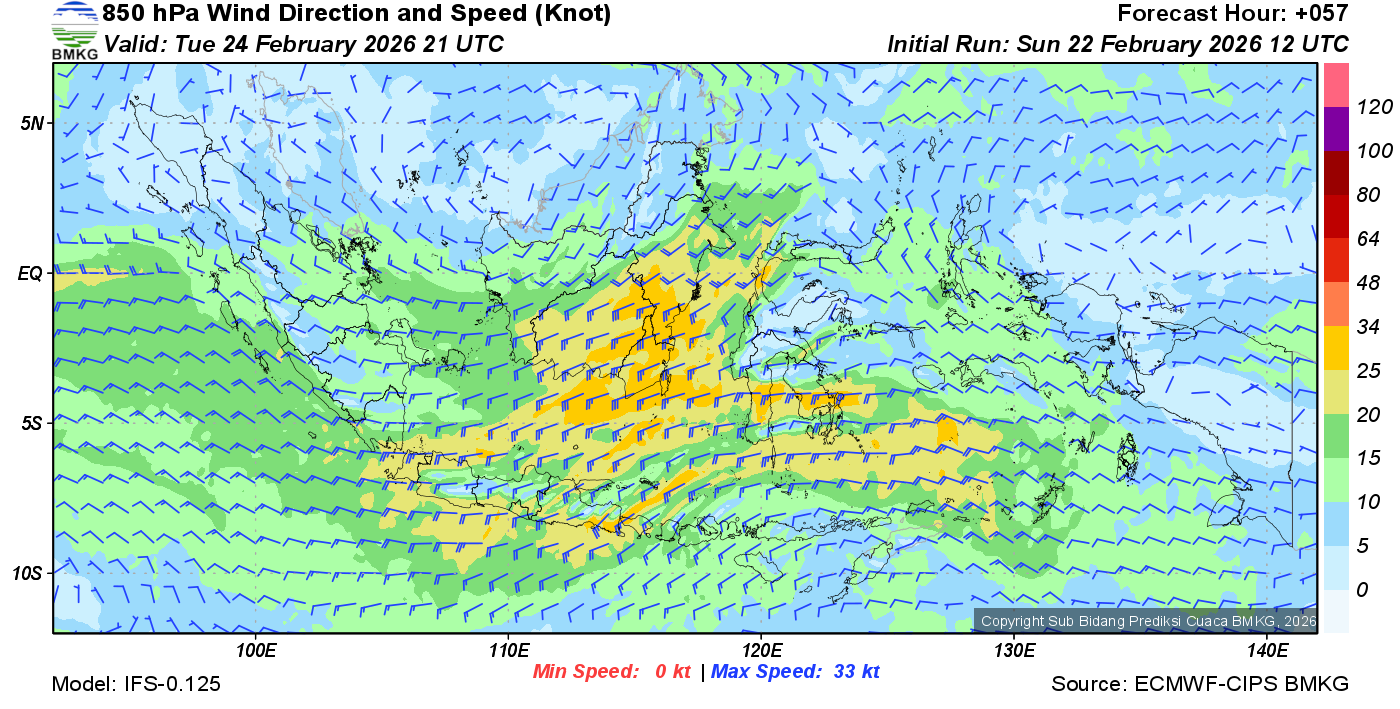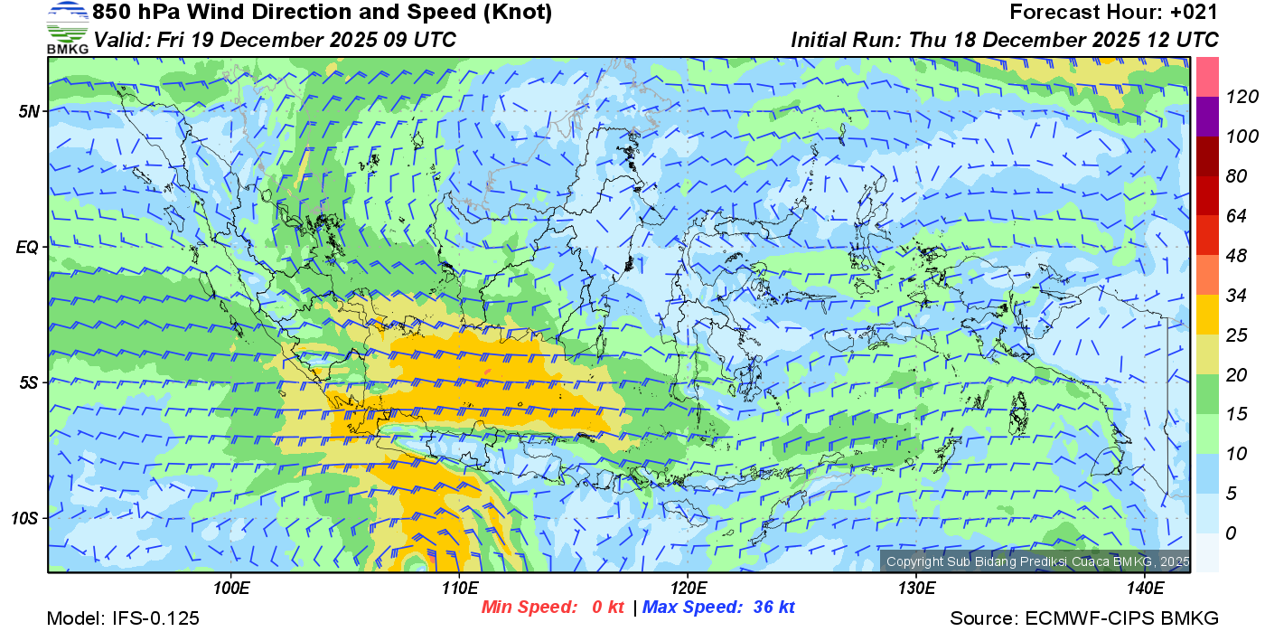 Prakiraan Angin Lapisan 850 Gunung Awu