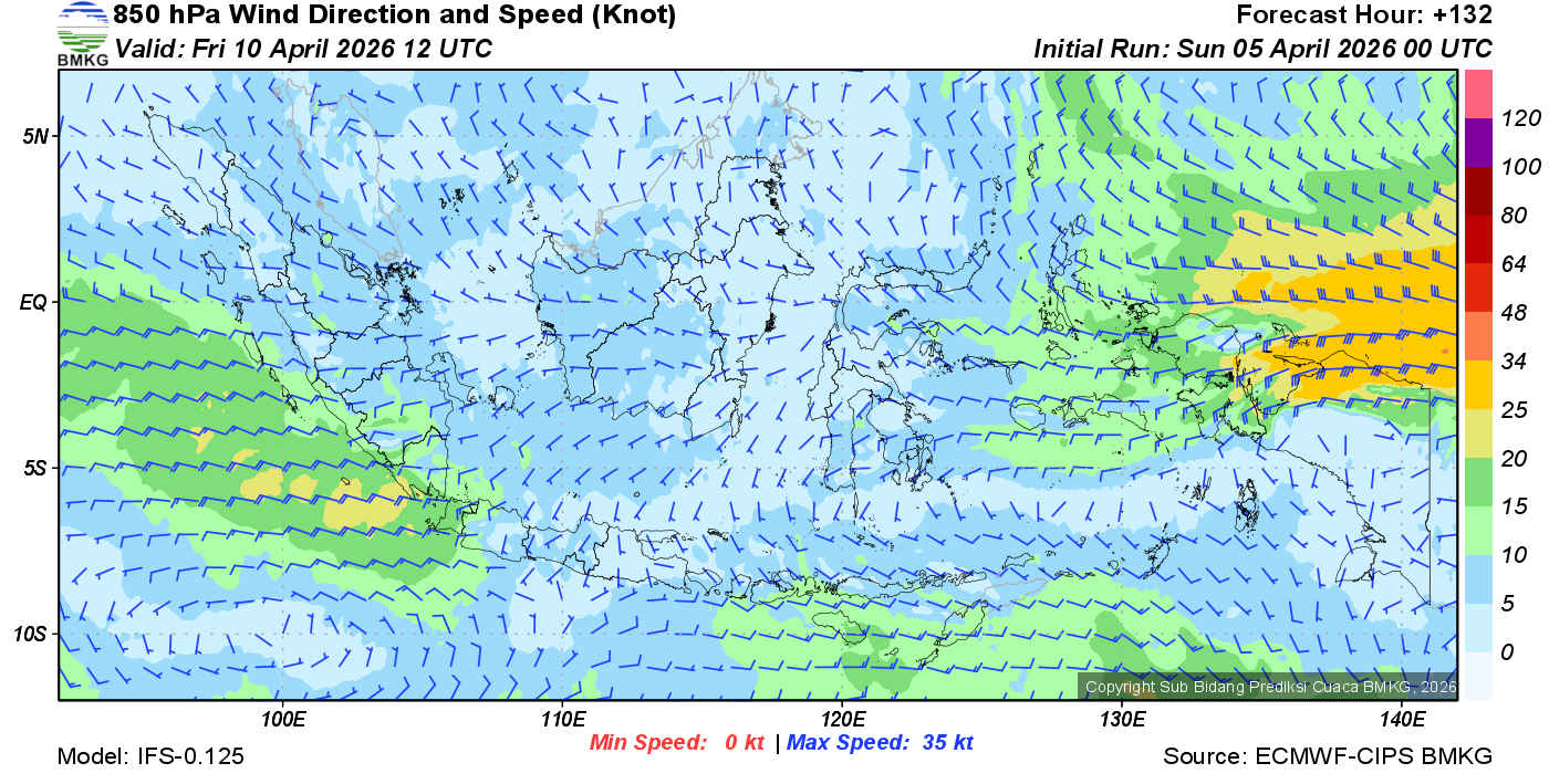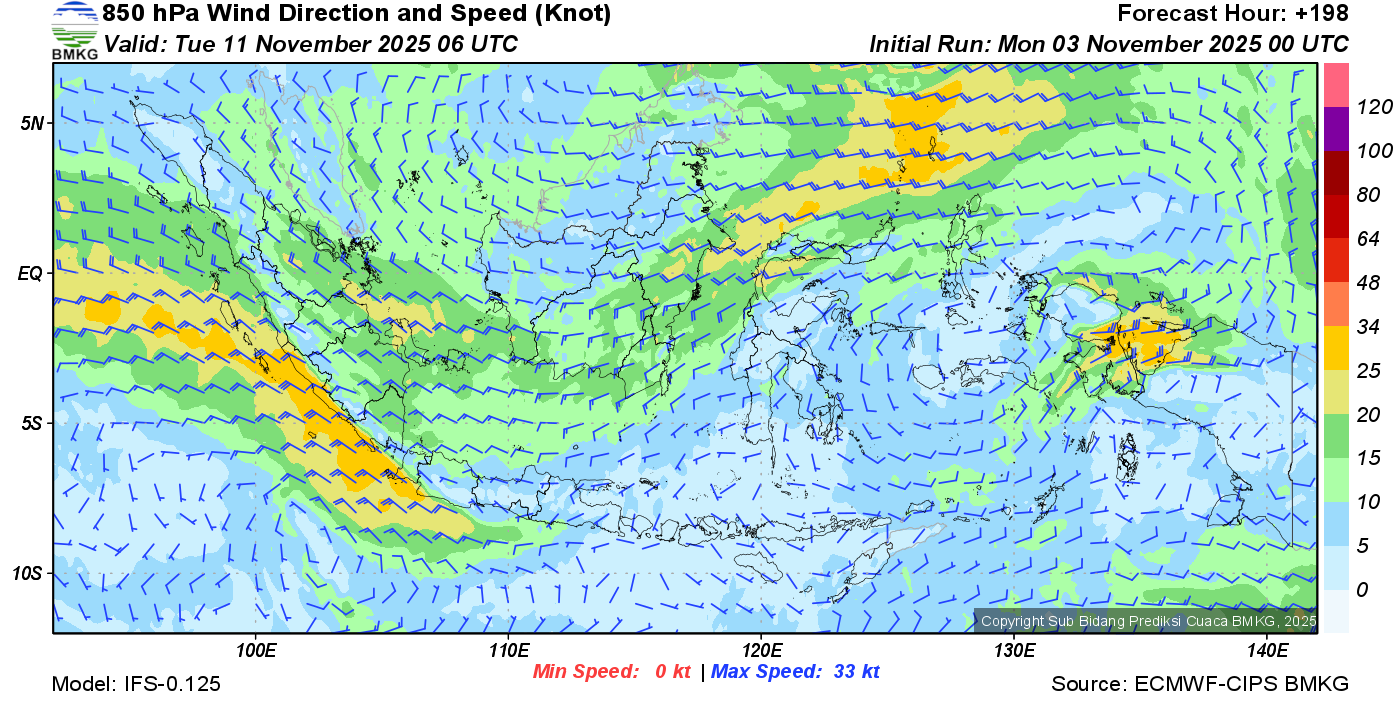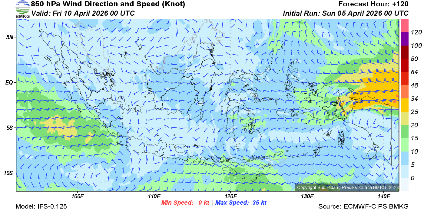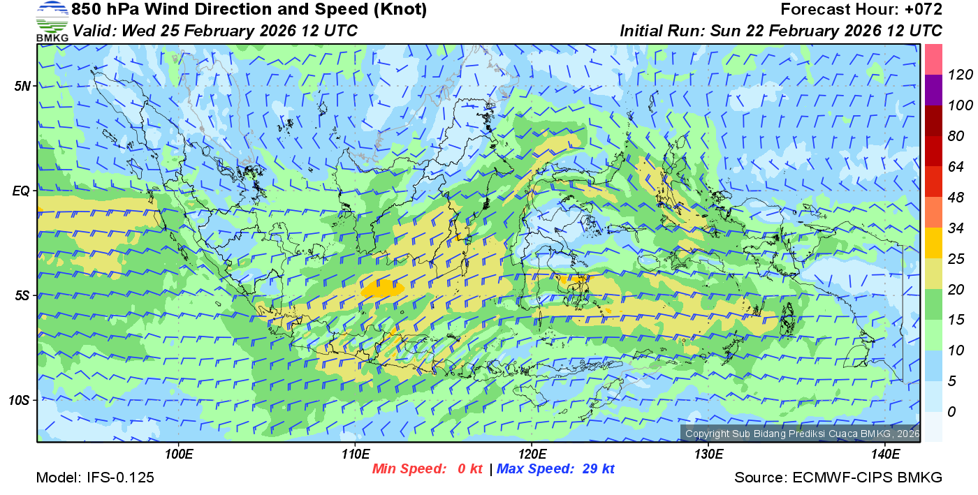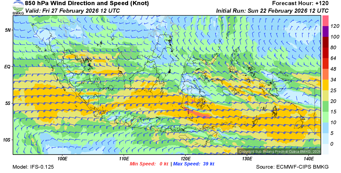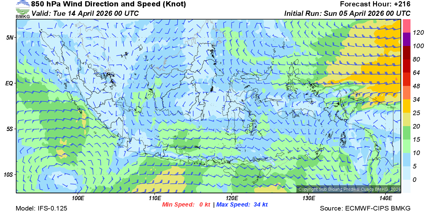 Prakiraan Angin Lapisan 850 Gunung Awu