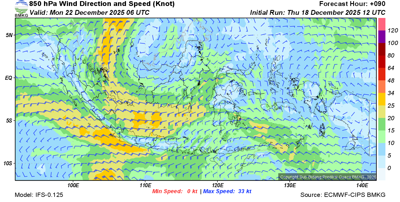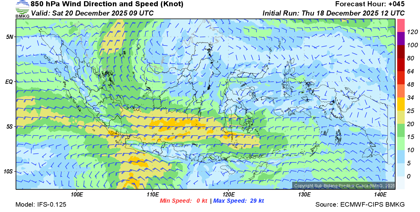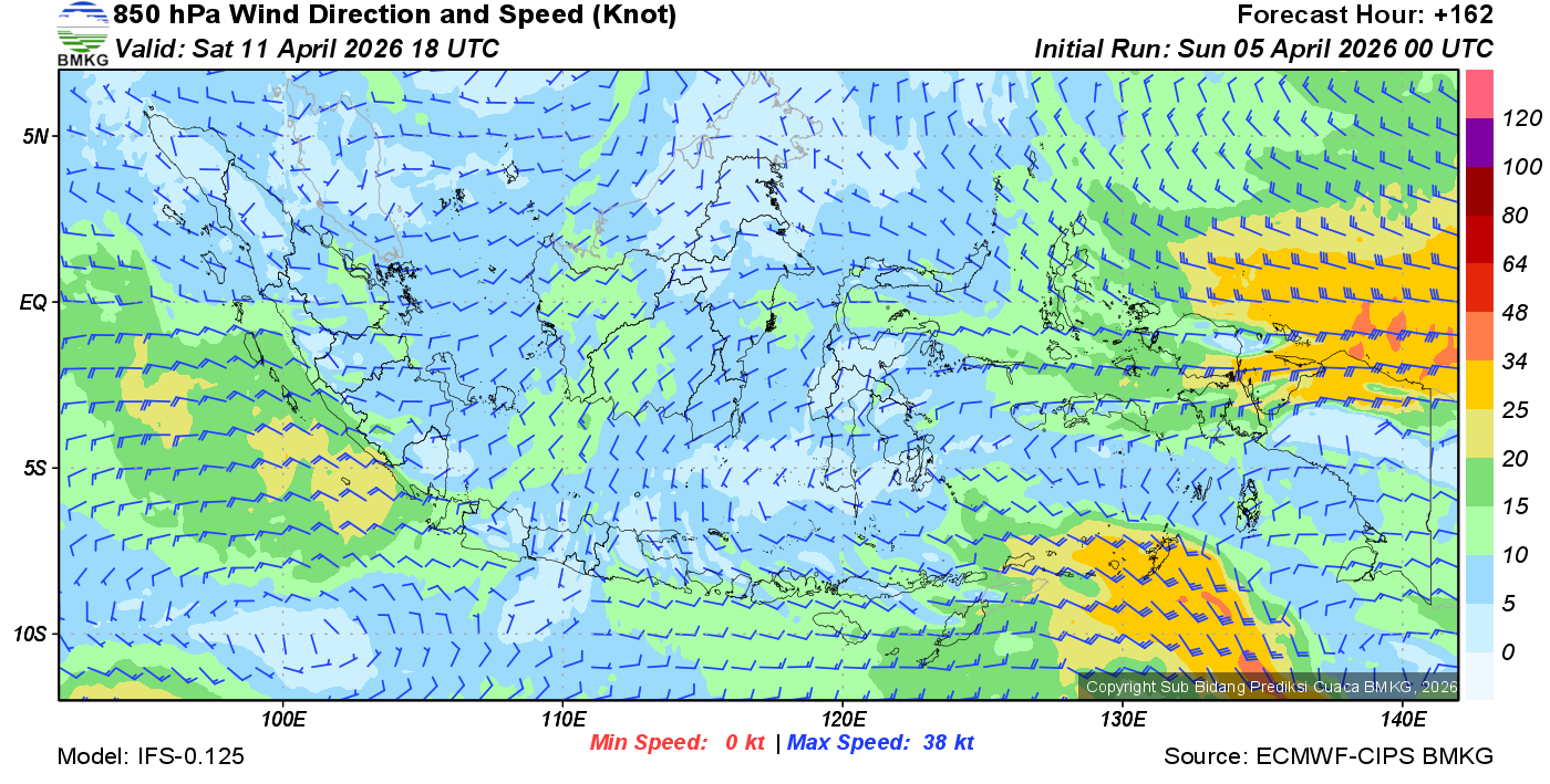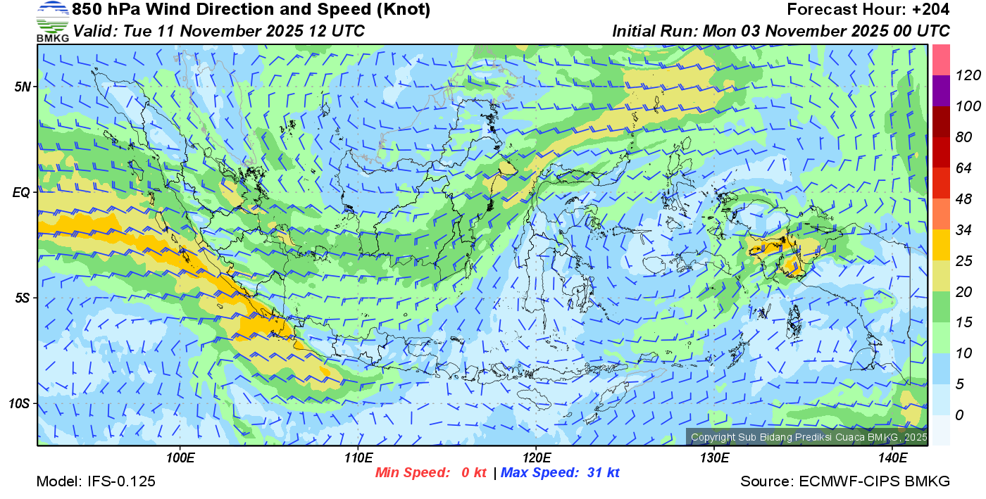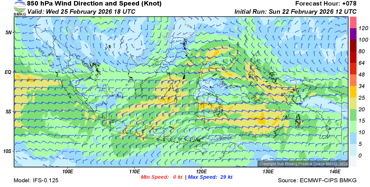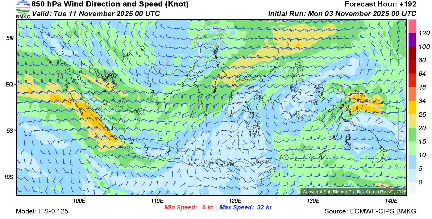 Prakiraan Angin Lapisan 850 Gunung Awu