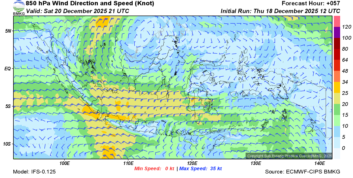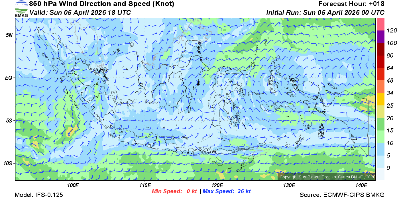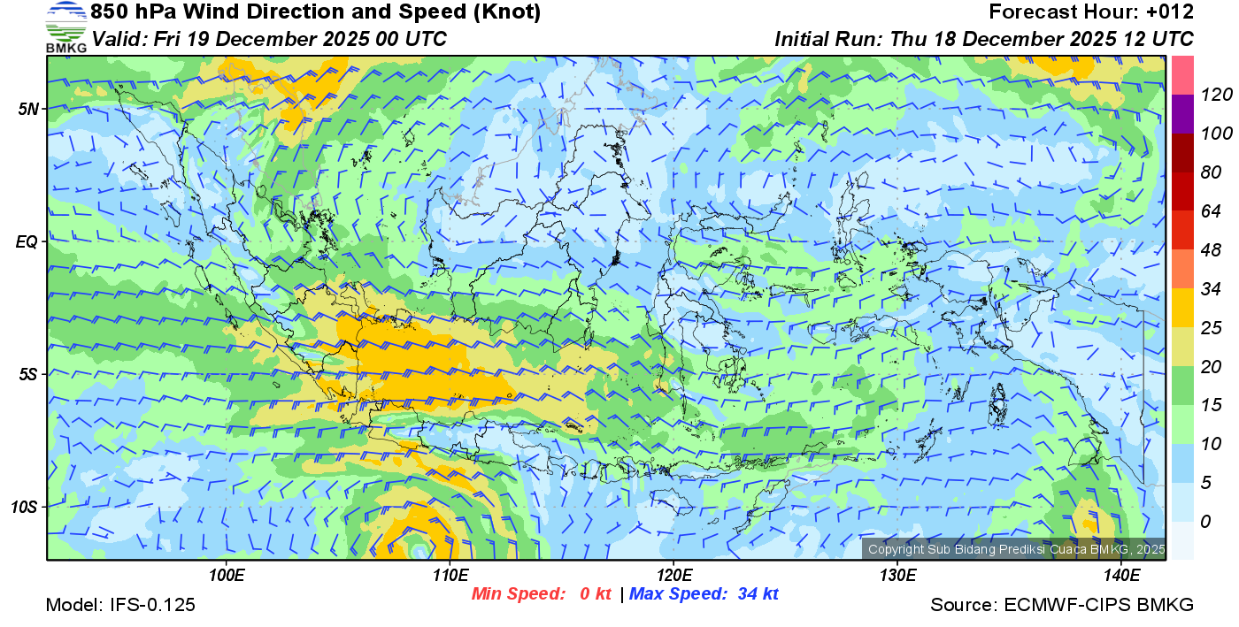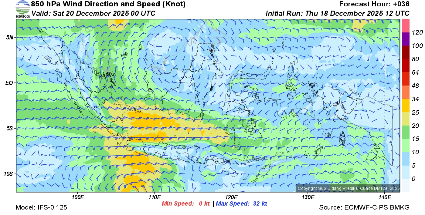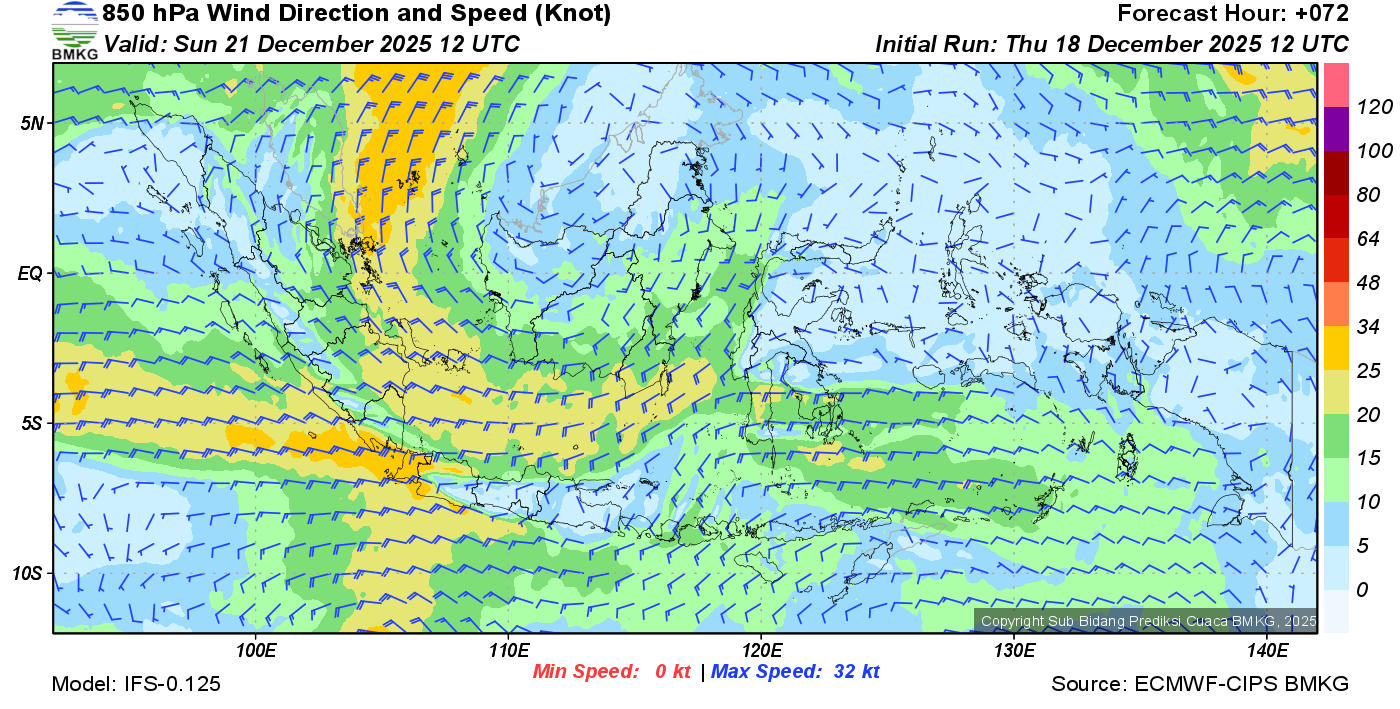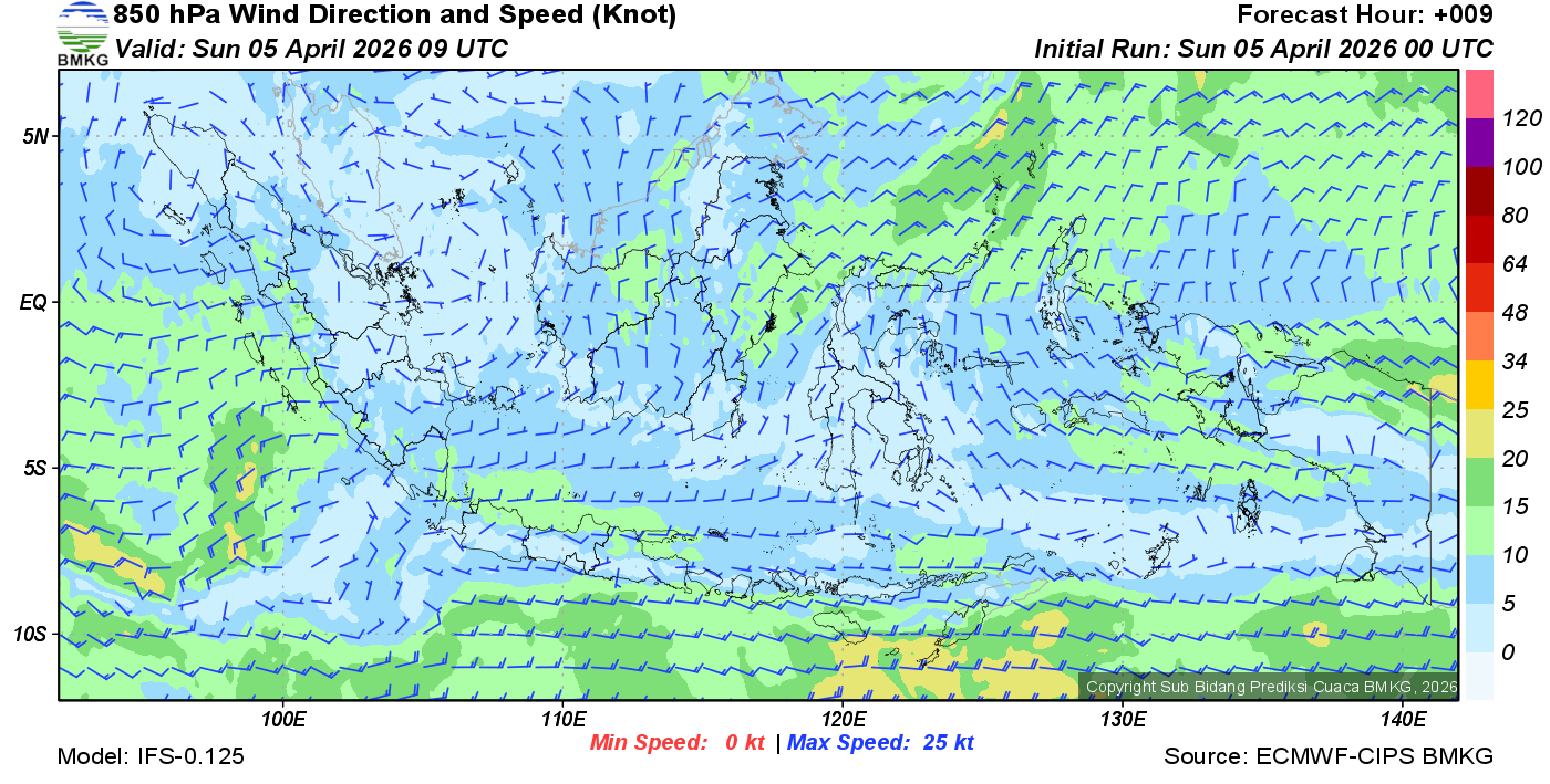 Prakiraan Angin Lapisan 850 Gunung Awu