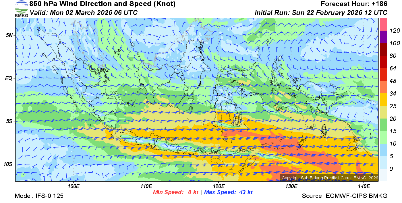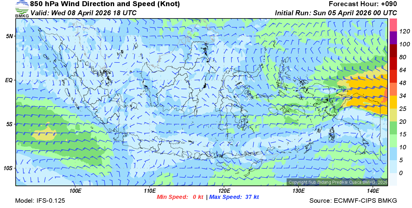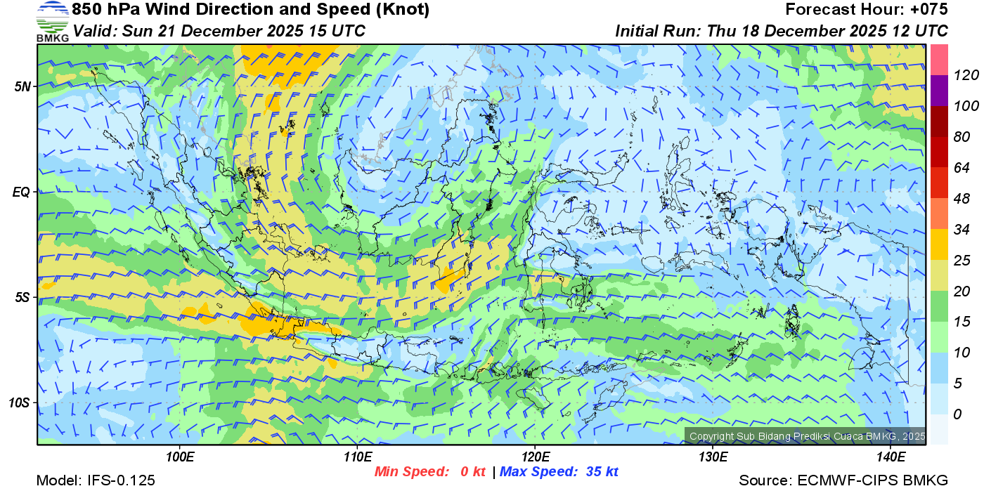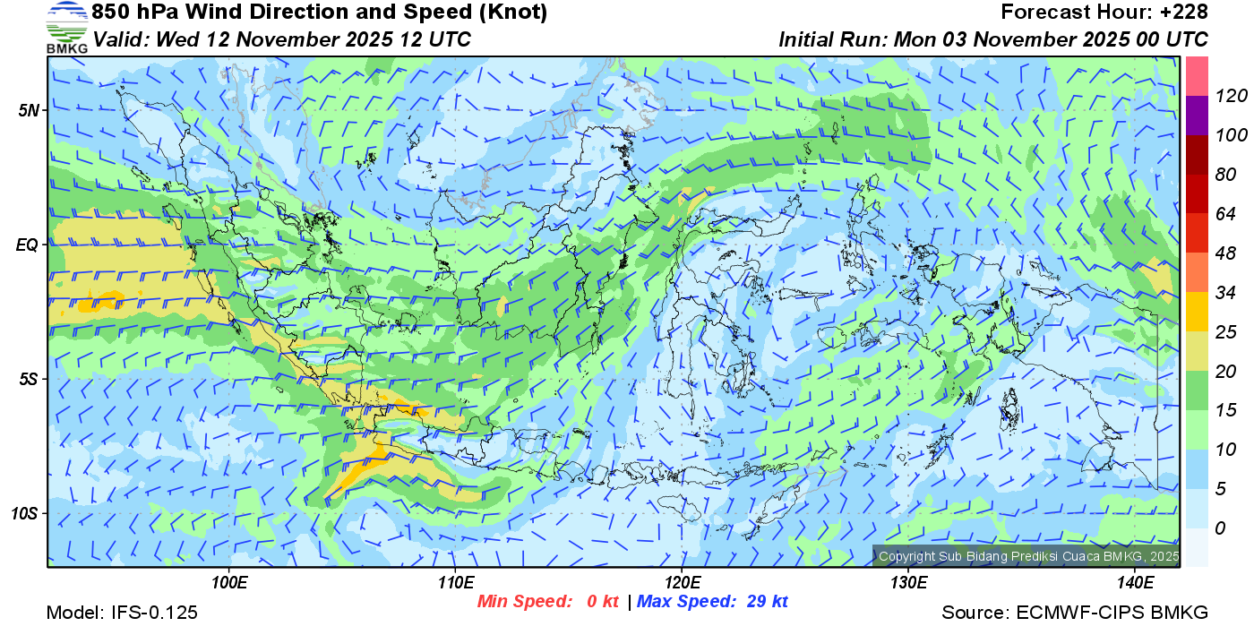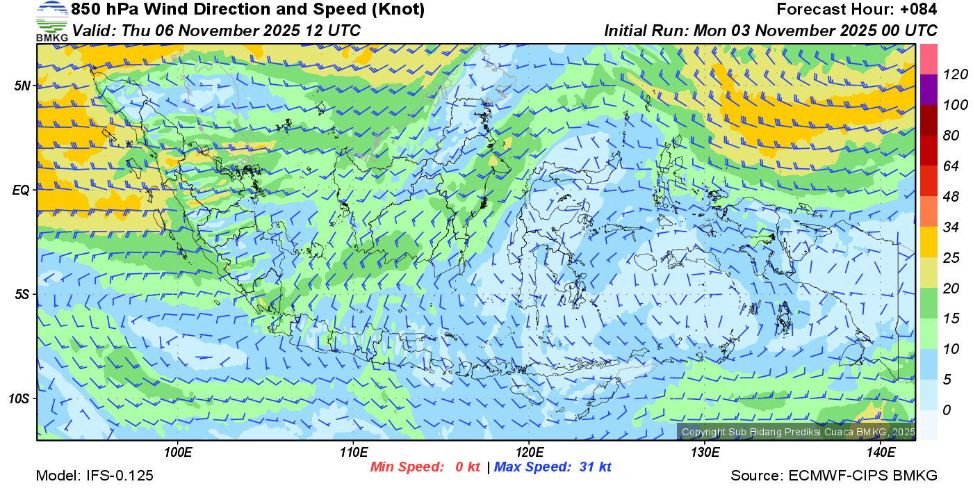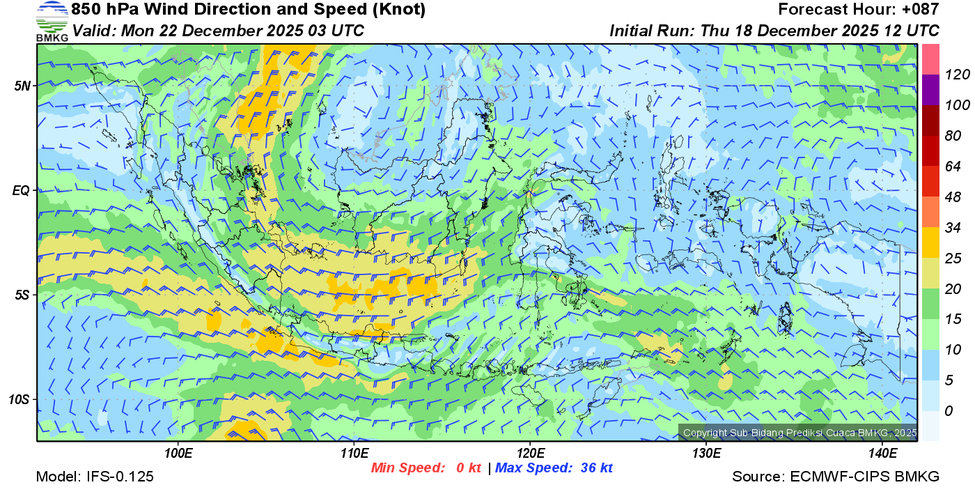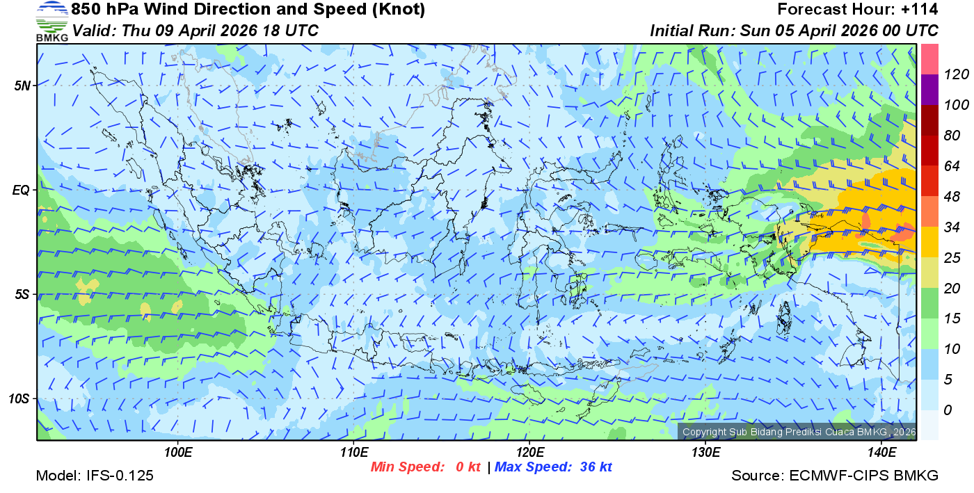 Prakiraan Angin Lapisan 850 Gunung Awu