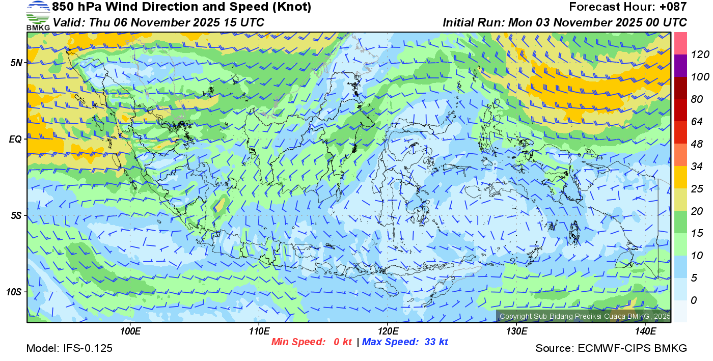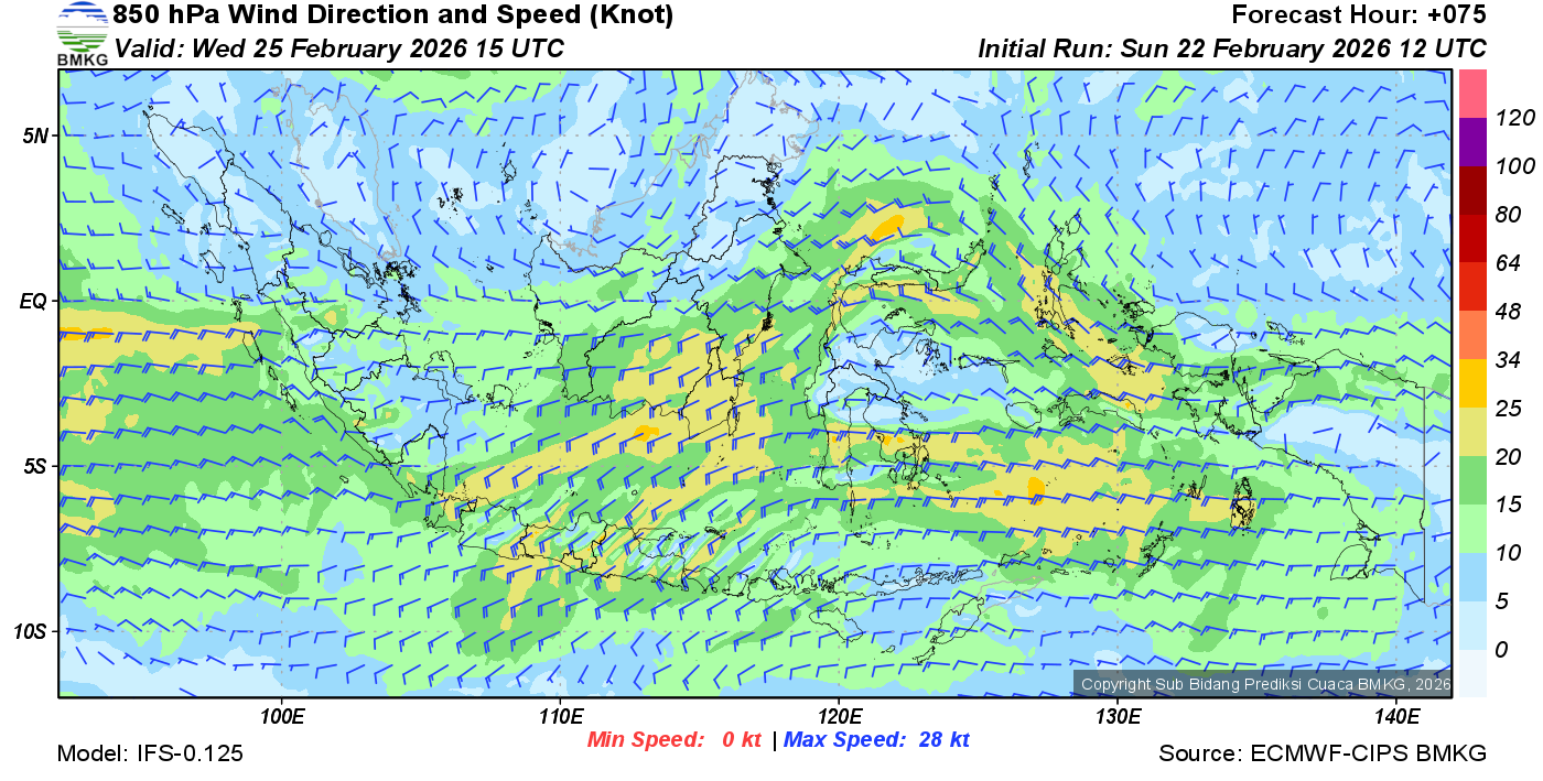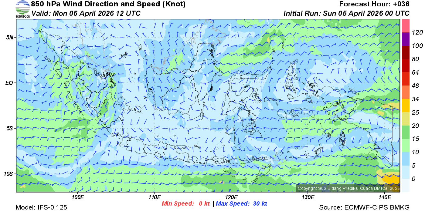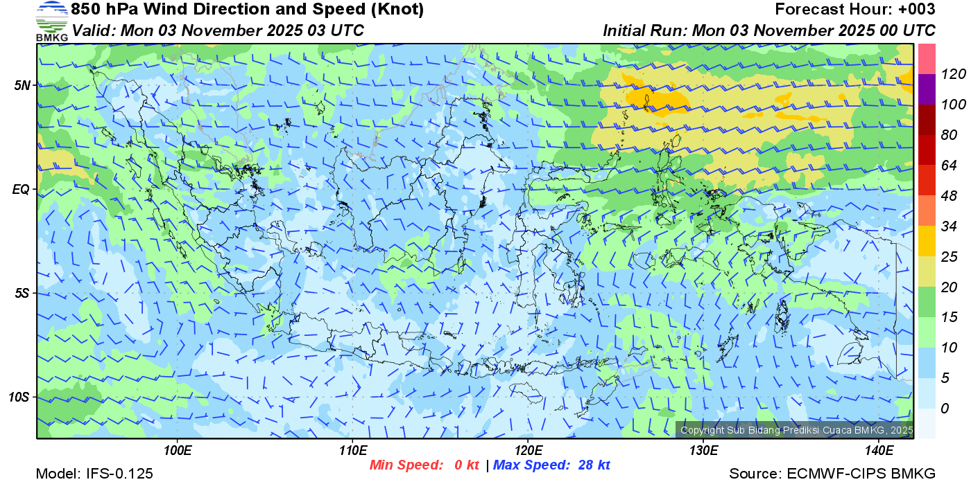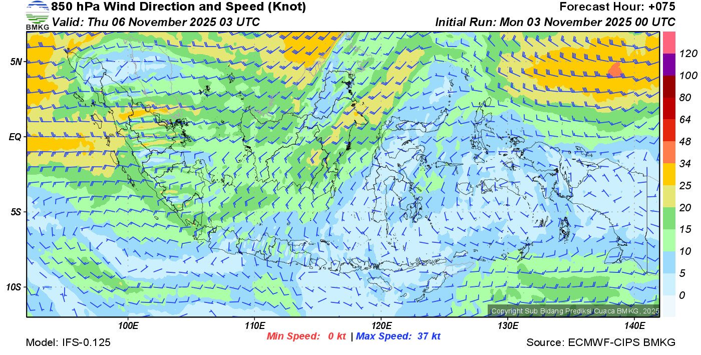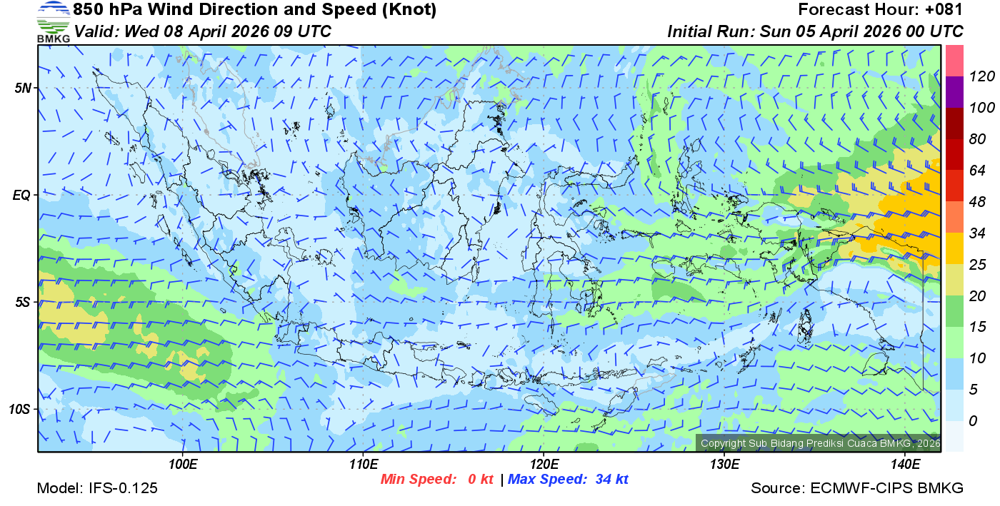 Prakiraan Angin Lapisan 850 Gunung Awu