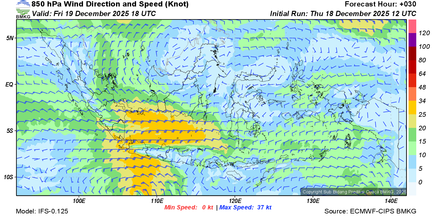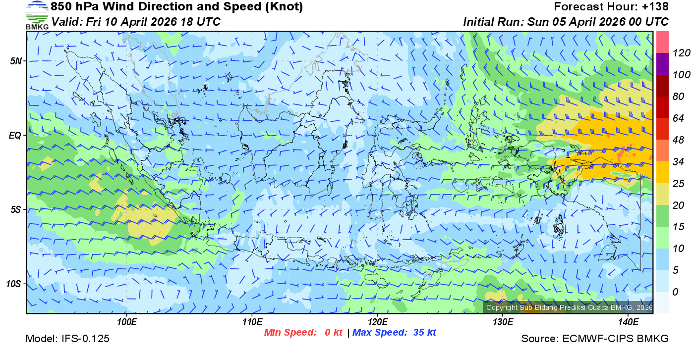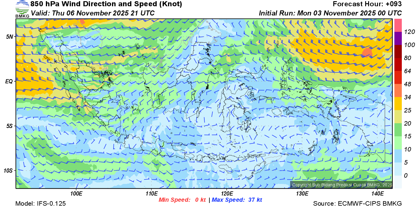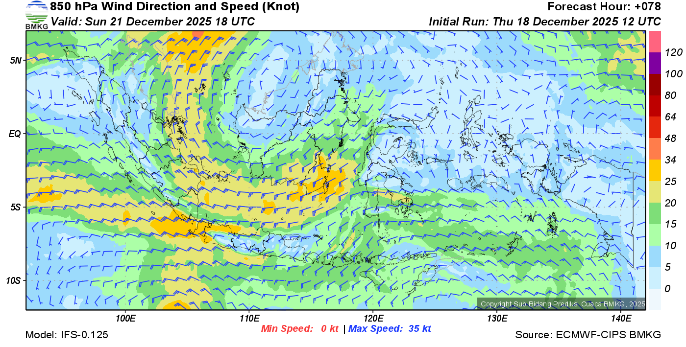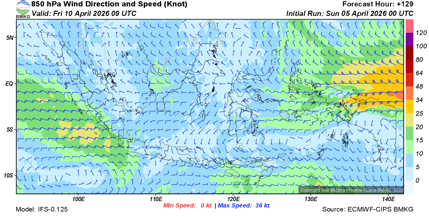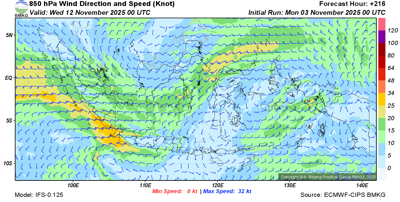 Prakiraan Angin Lapisan 850 Gunung Awu
