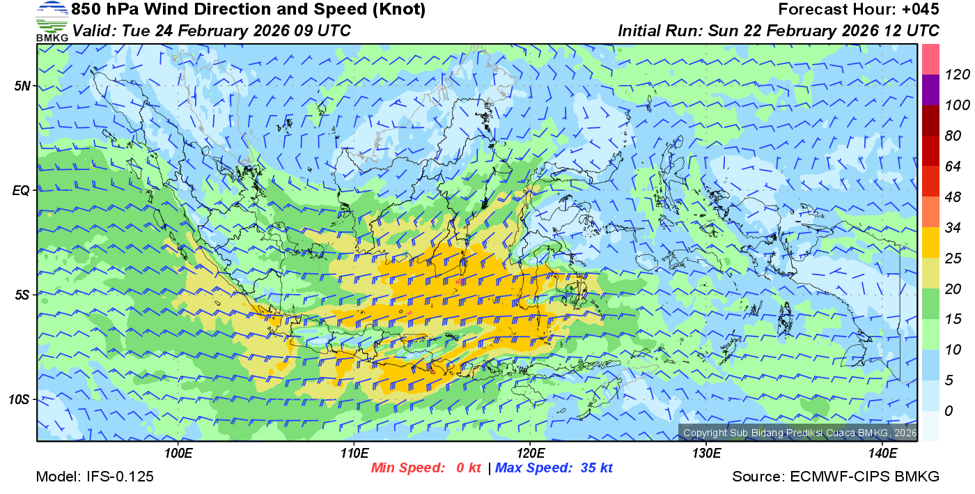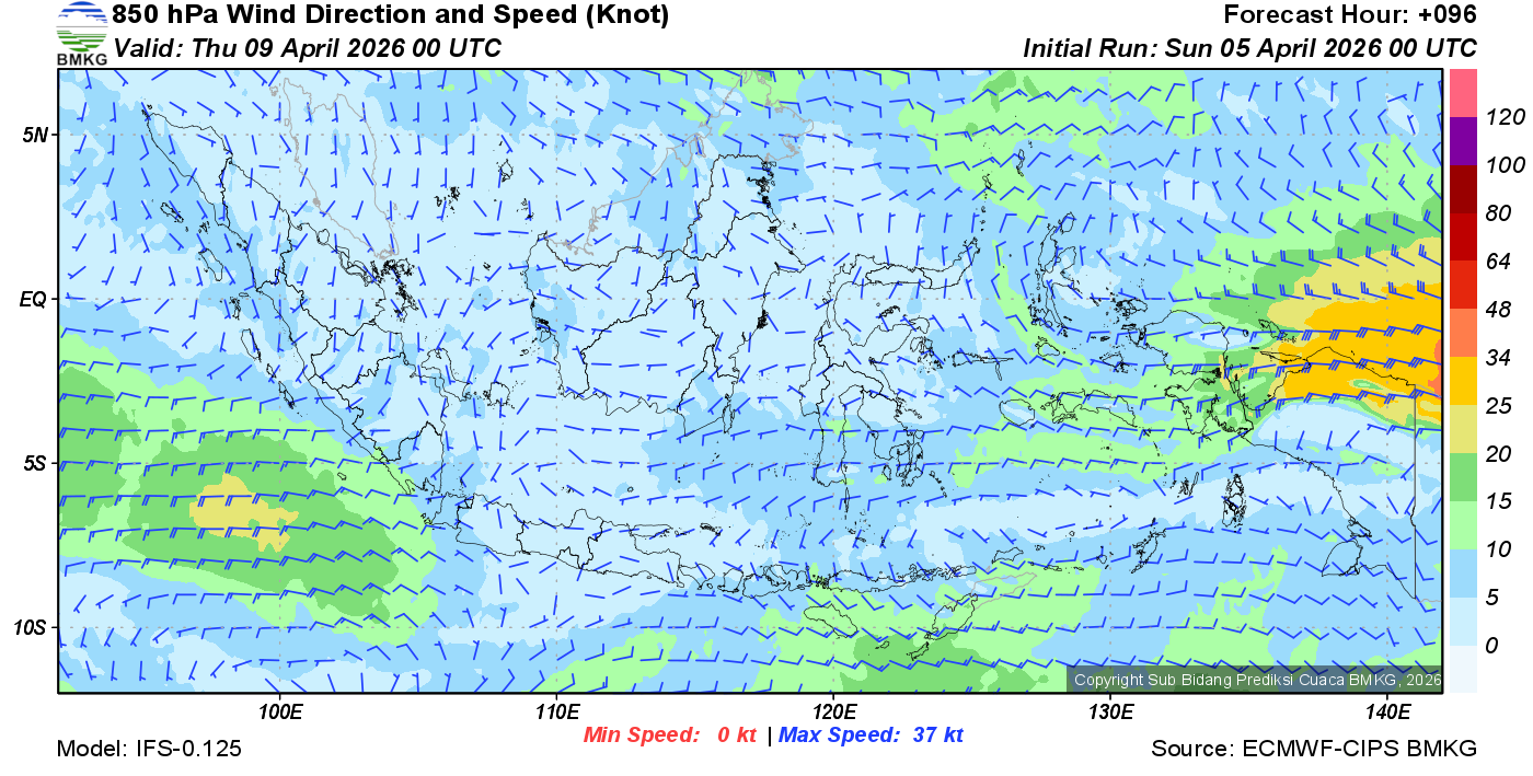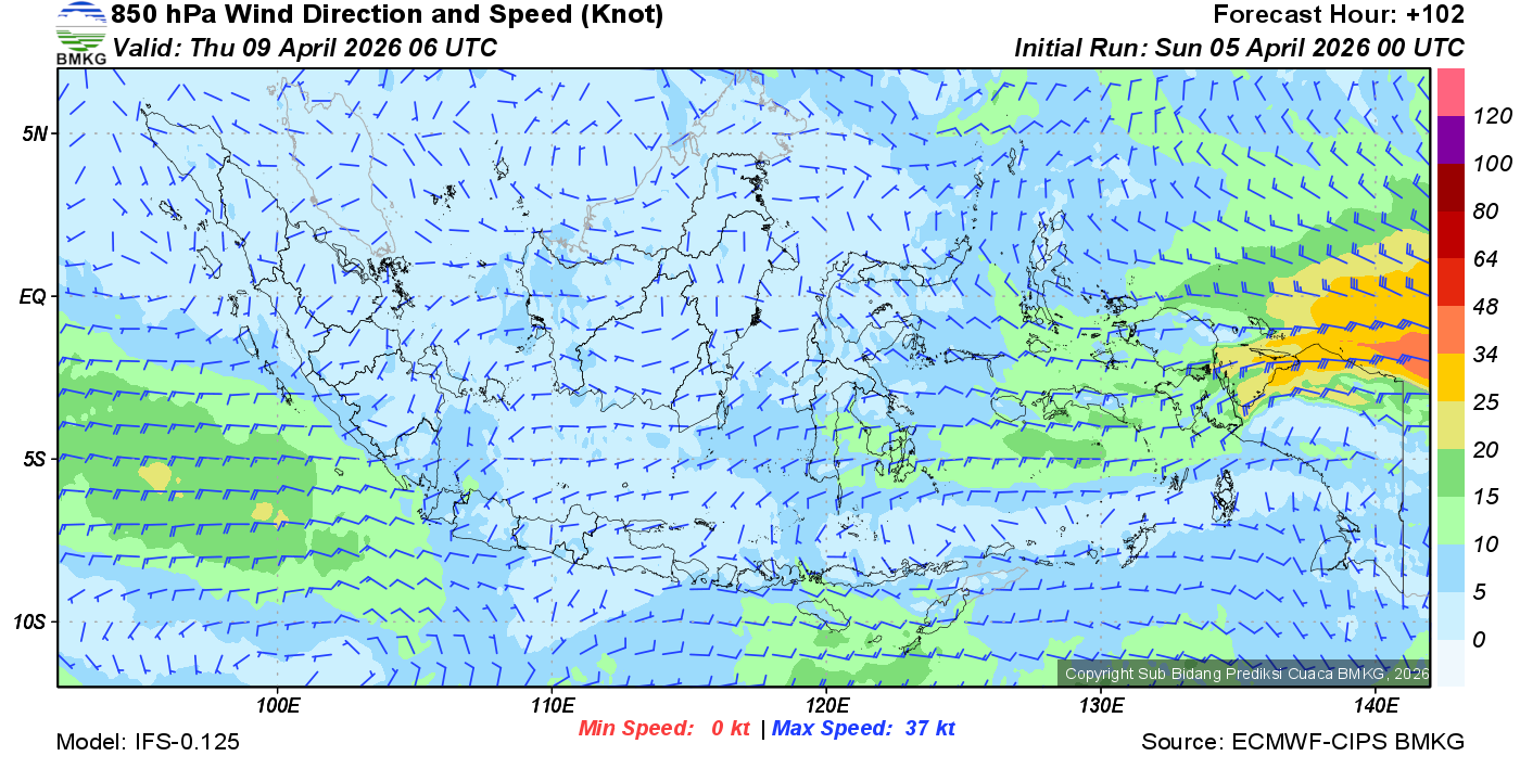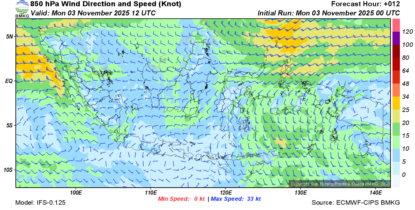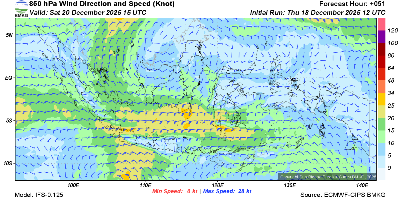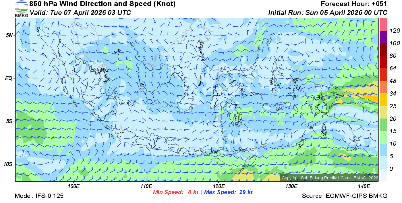 Prakiraan Angin Lapisan 850 Gunung Awu