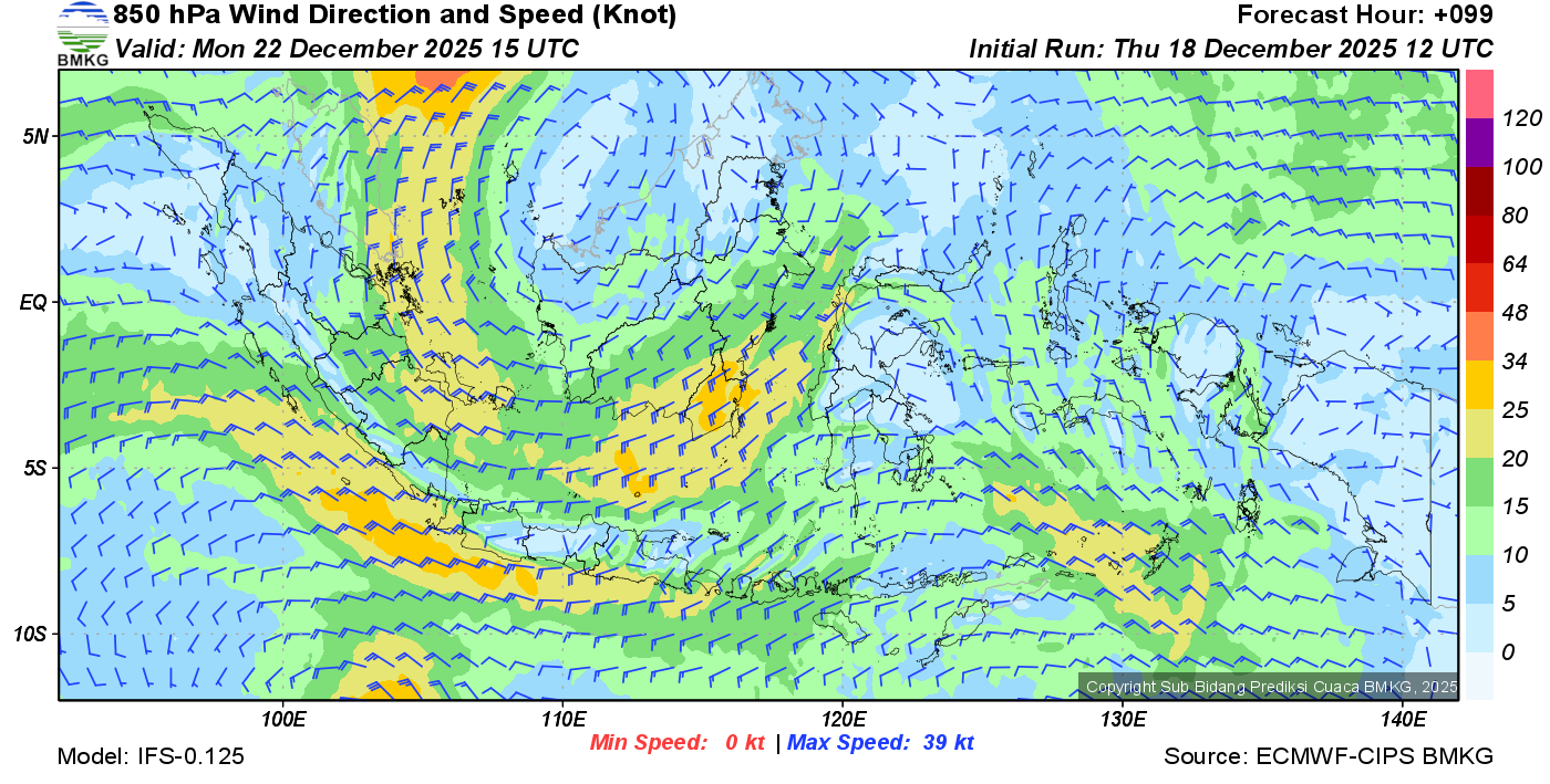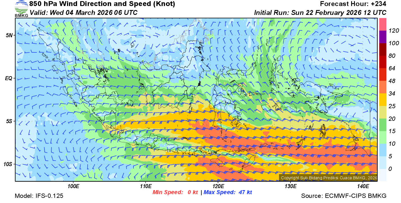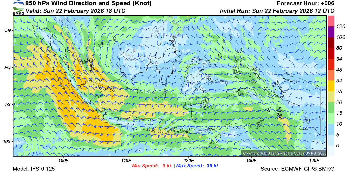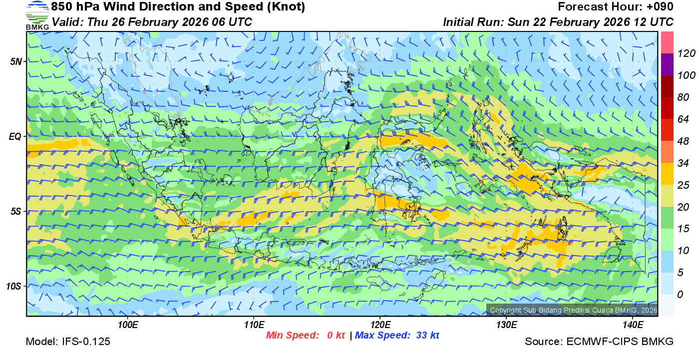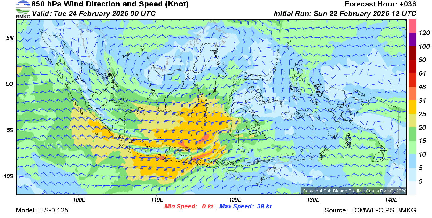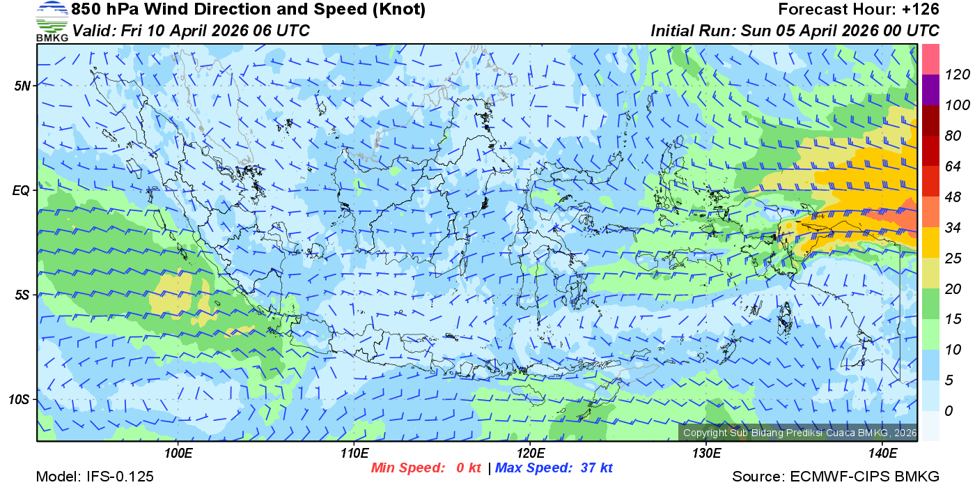Prakiraan Angin Lapisan 850 Gunung Awu