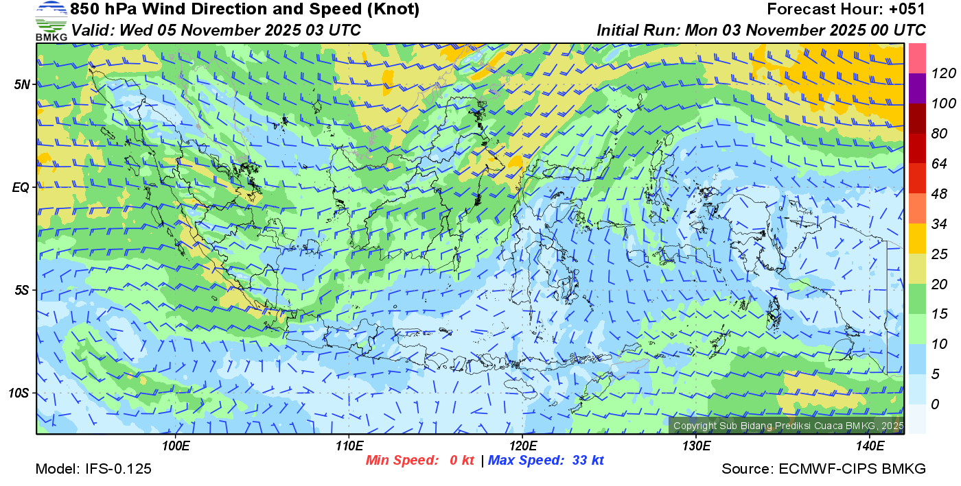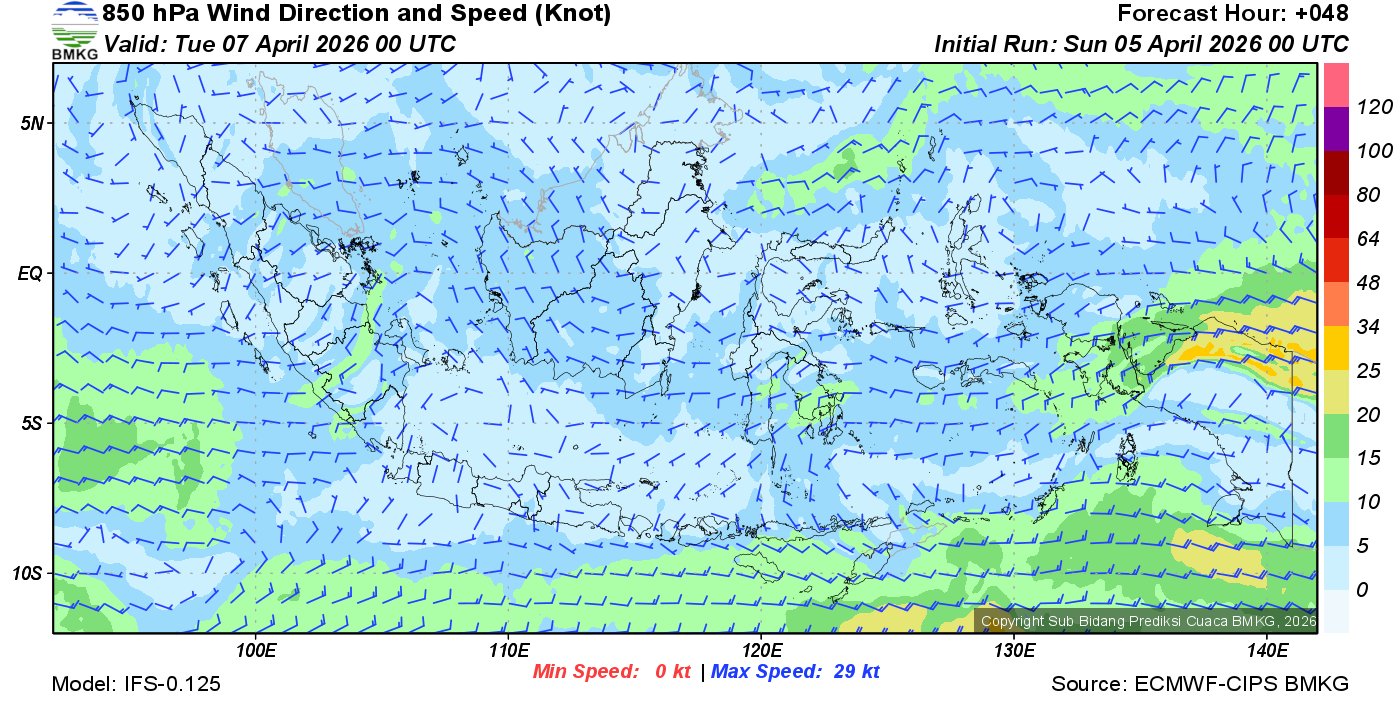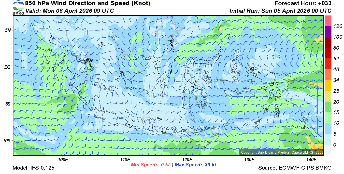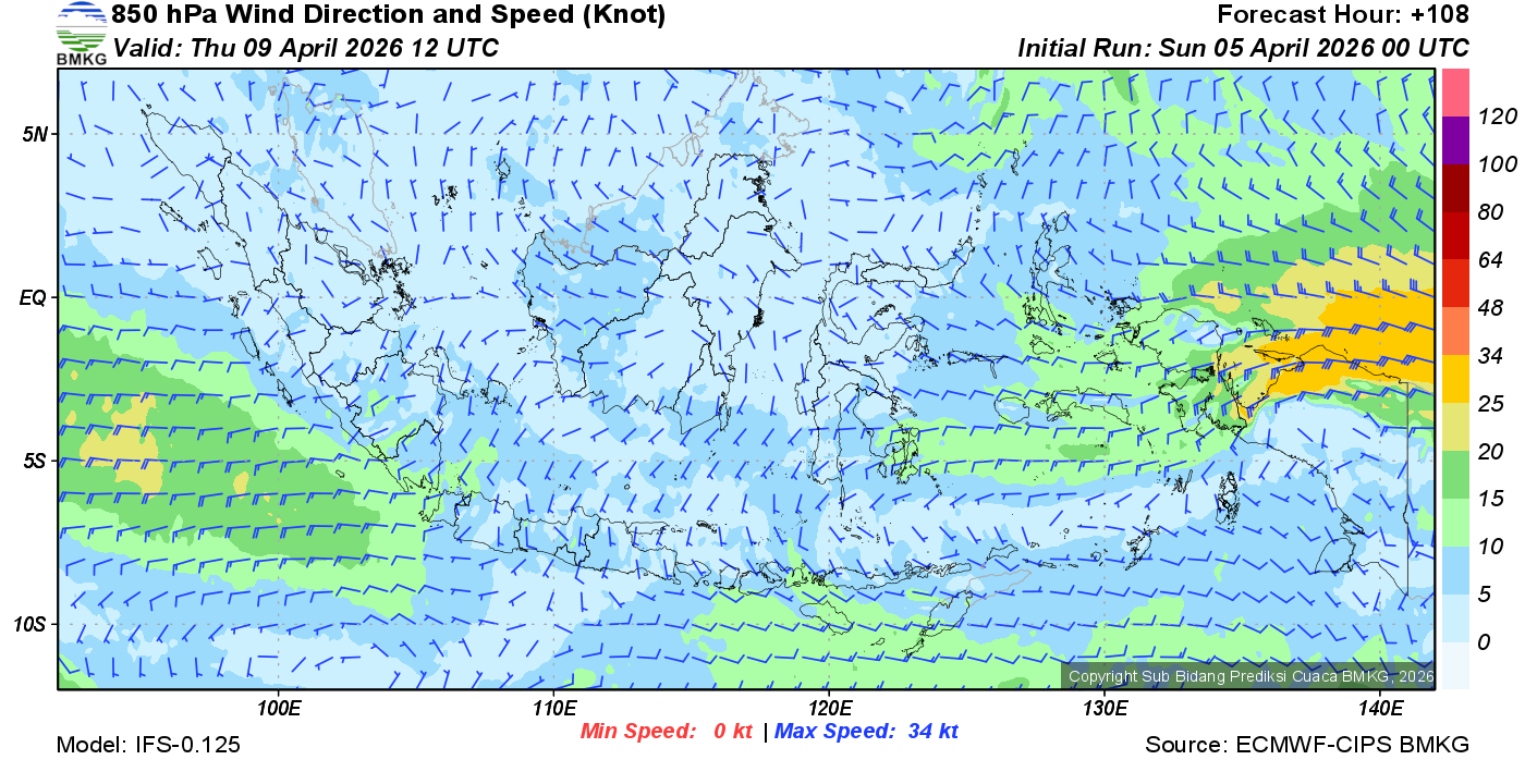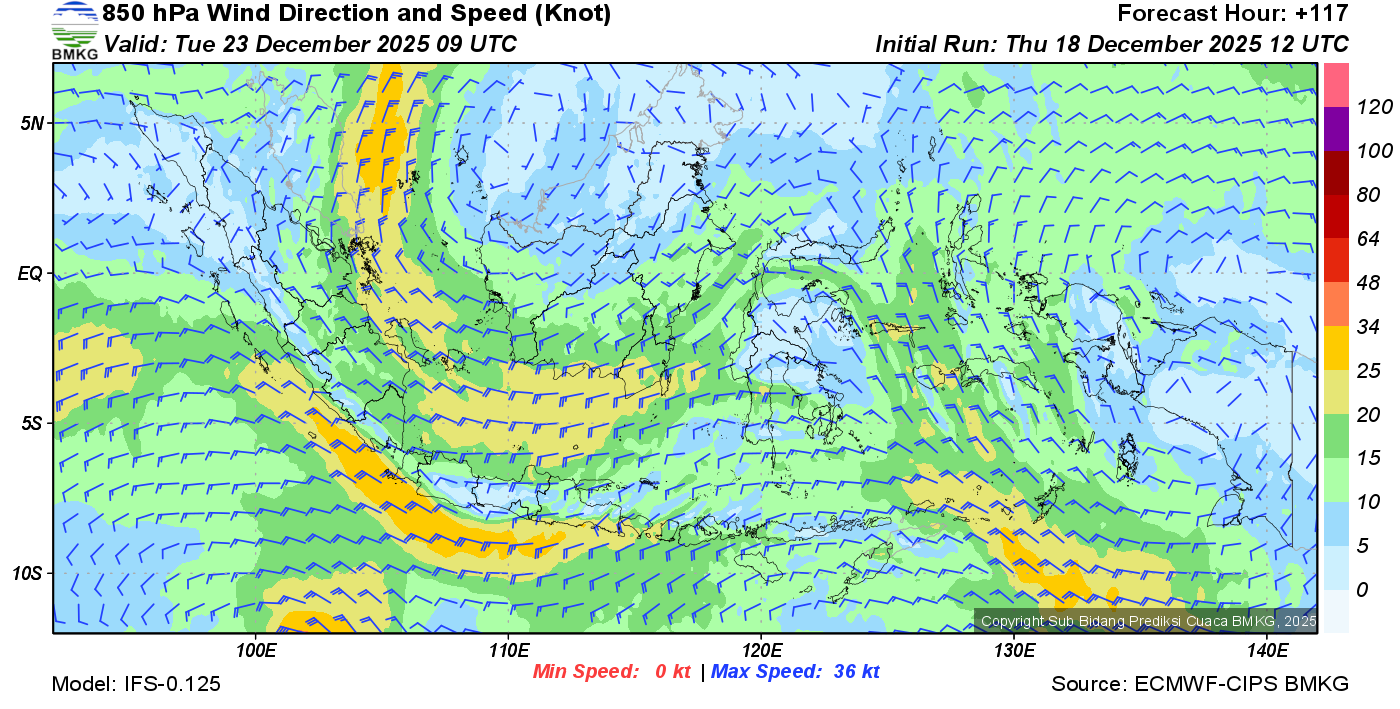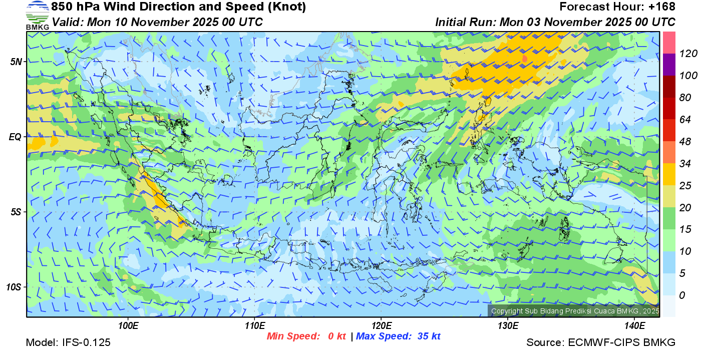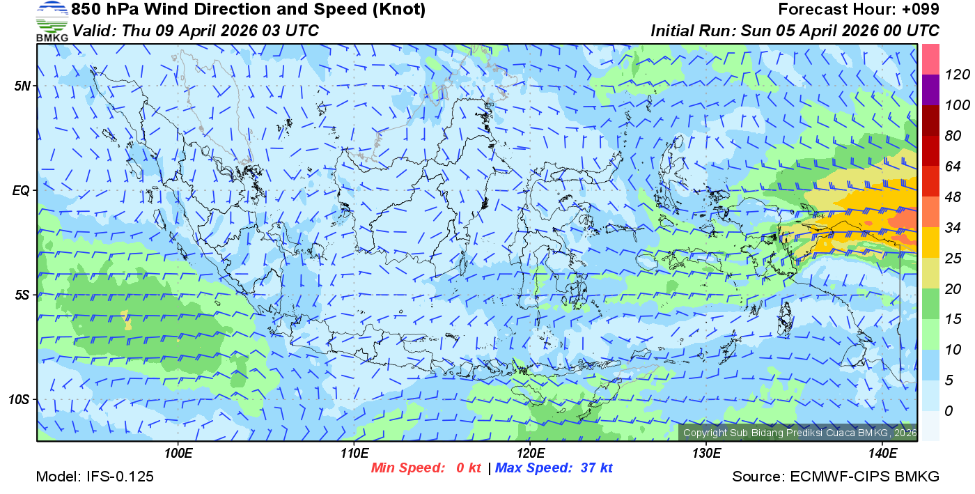 Prakiraan Angin Lapisan 850 Gunung Awu