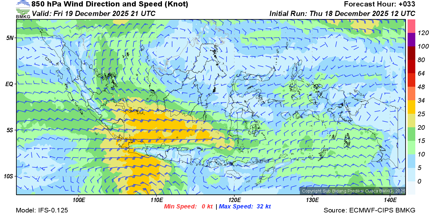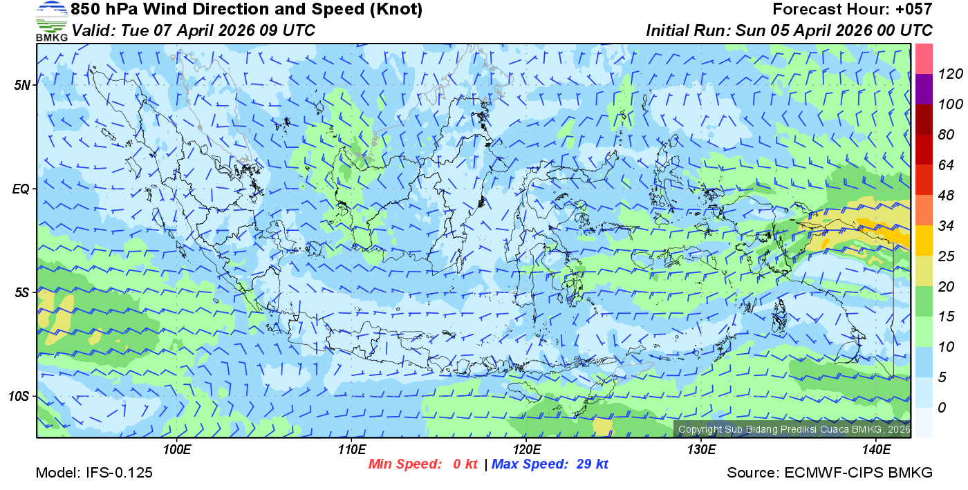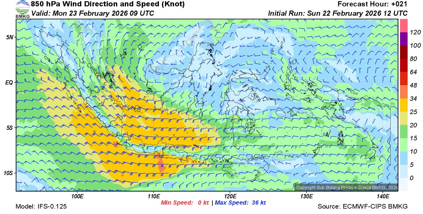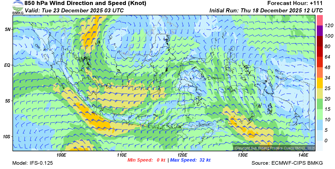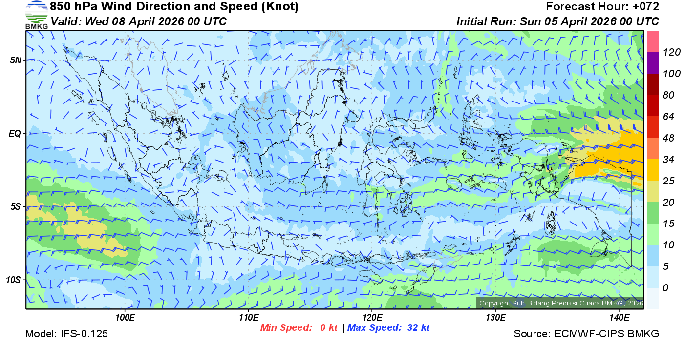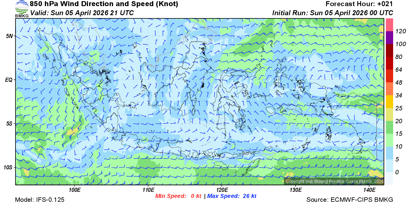 Prakiraan Angin Lapisan 850 Gunung Awu