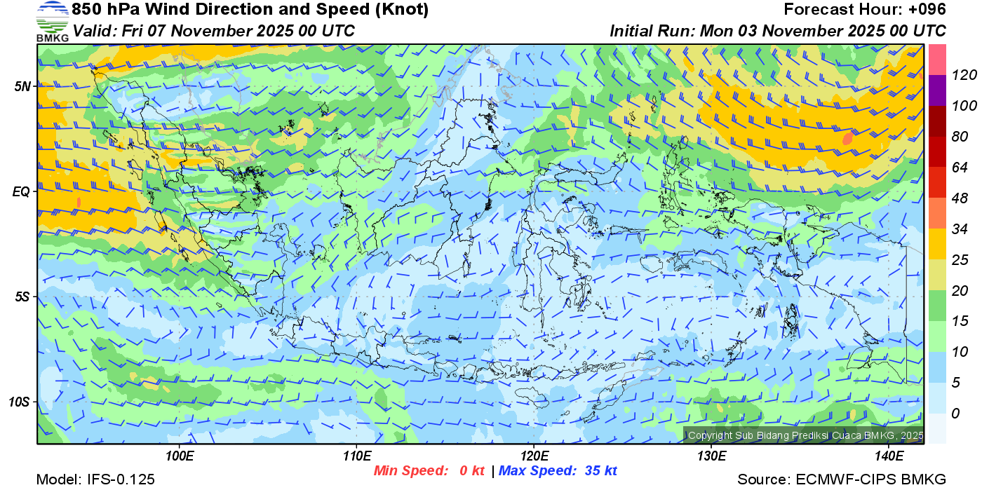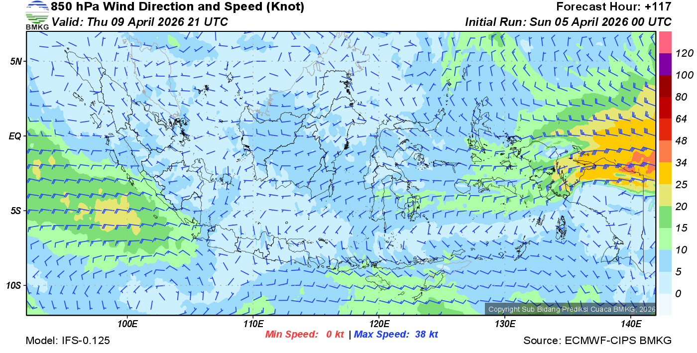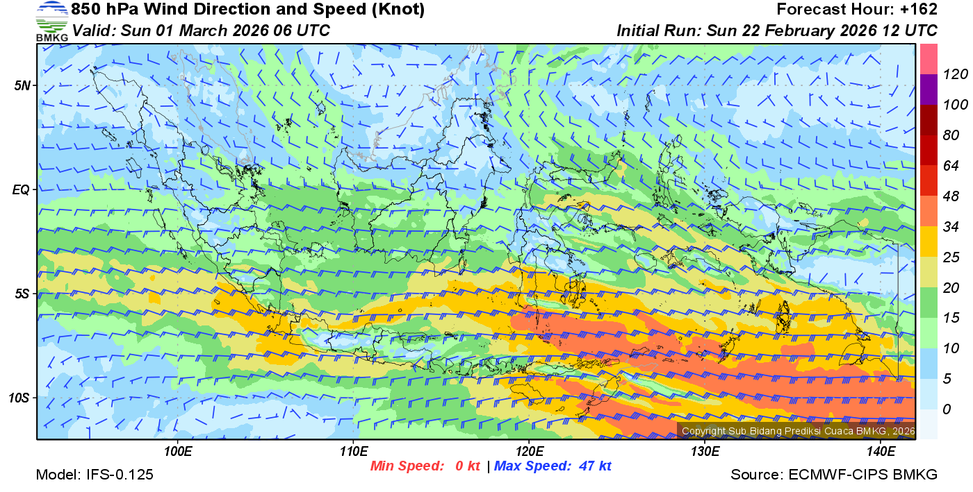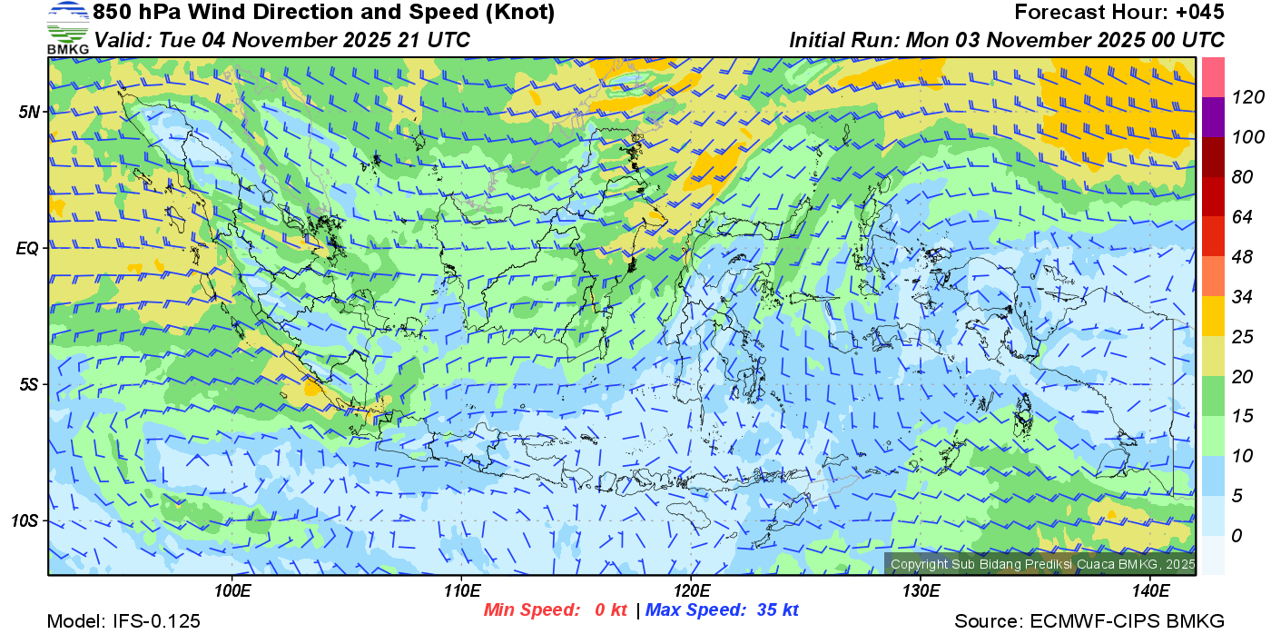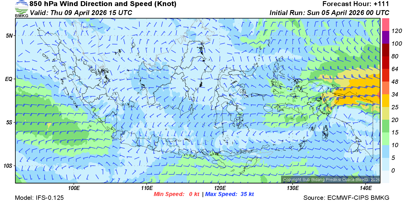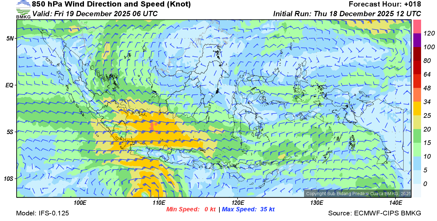 Prakiraan Angin Lapisan 850 Gunung Awu