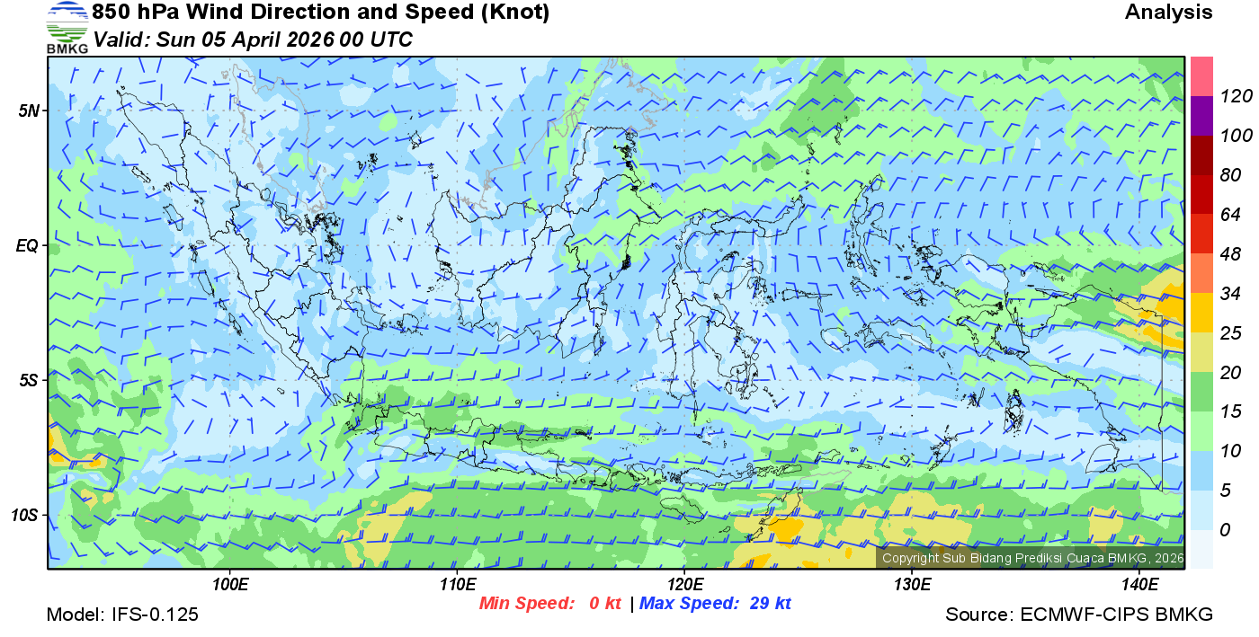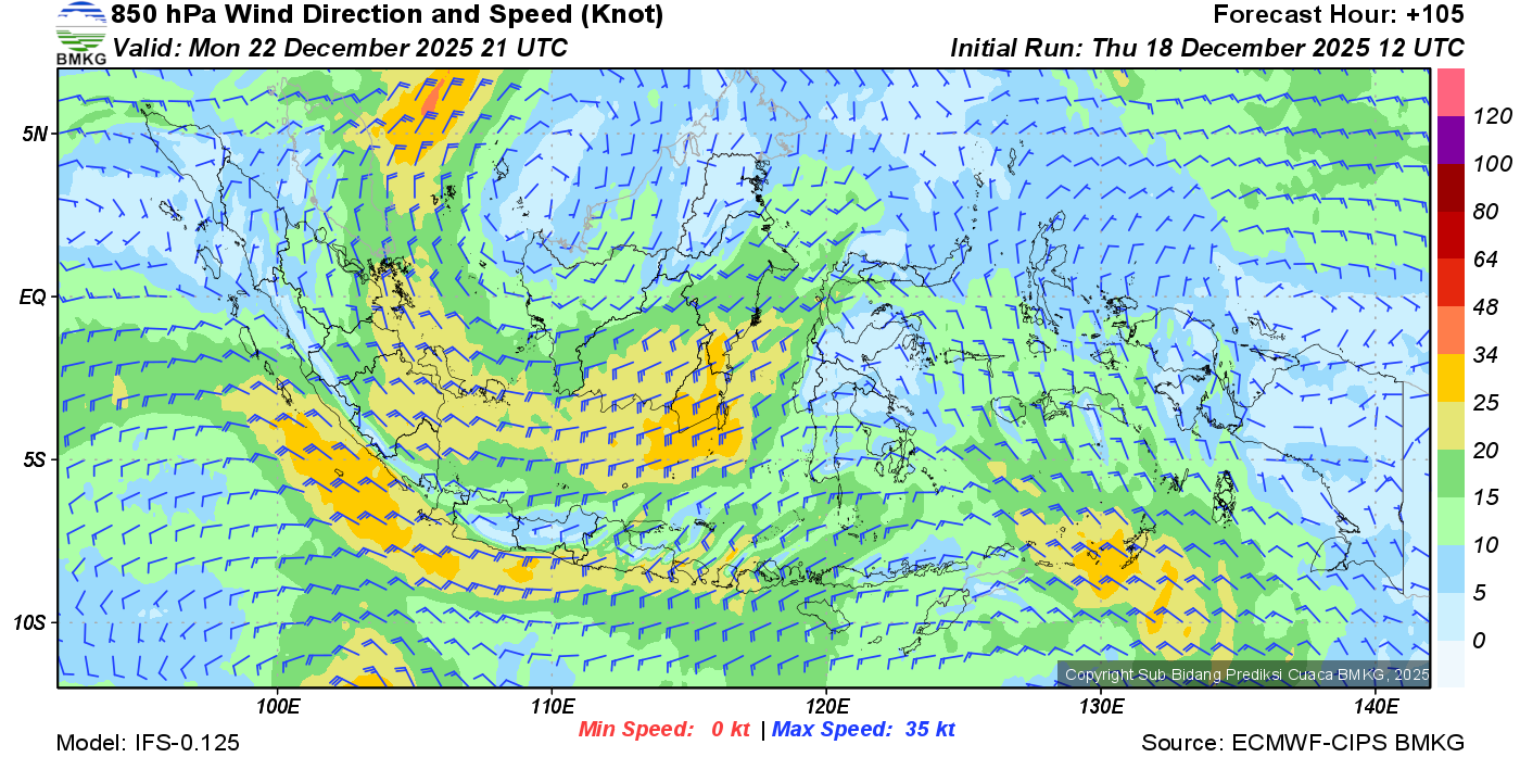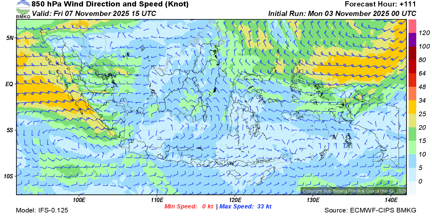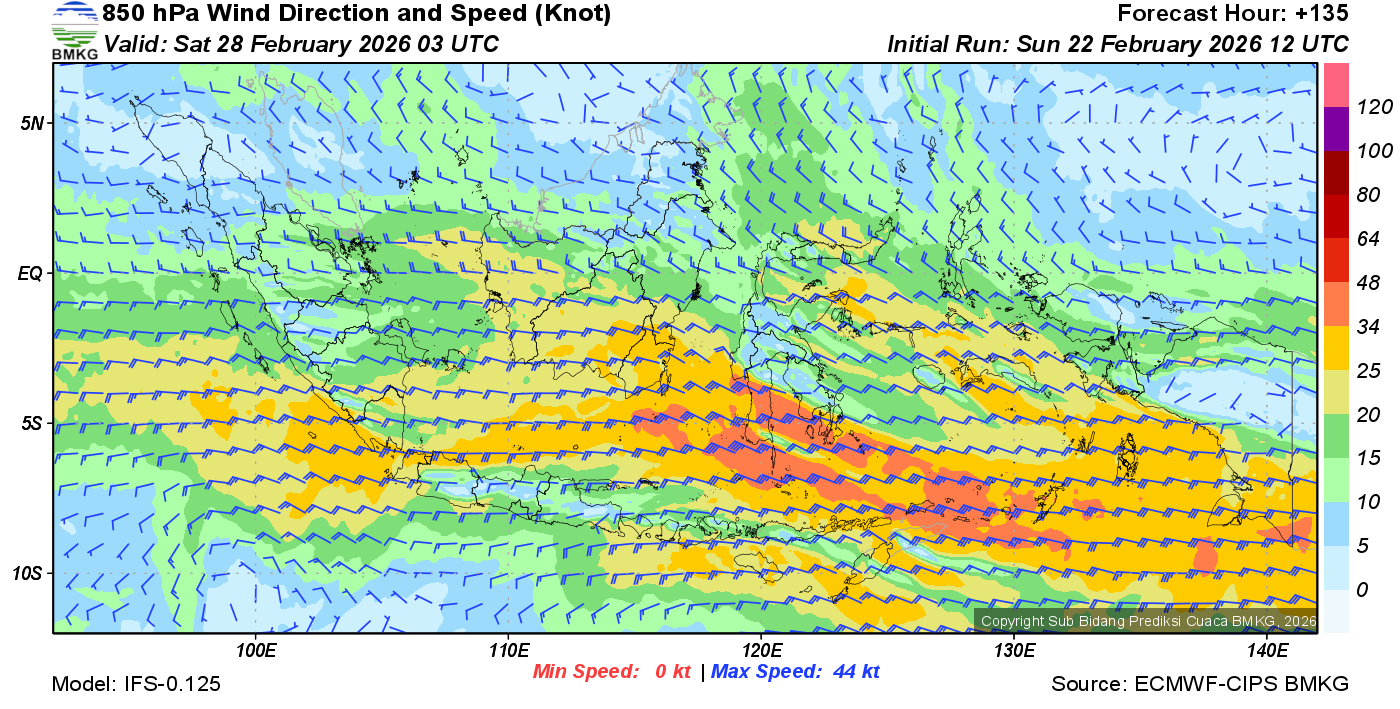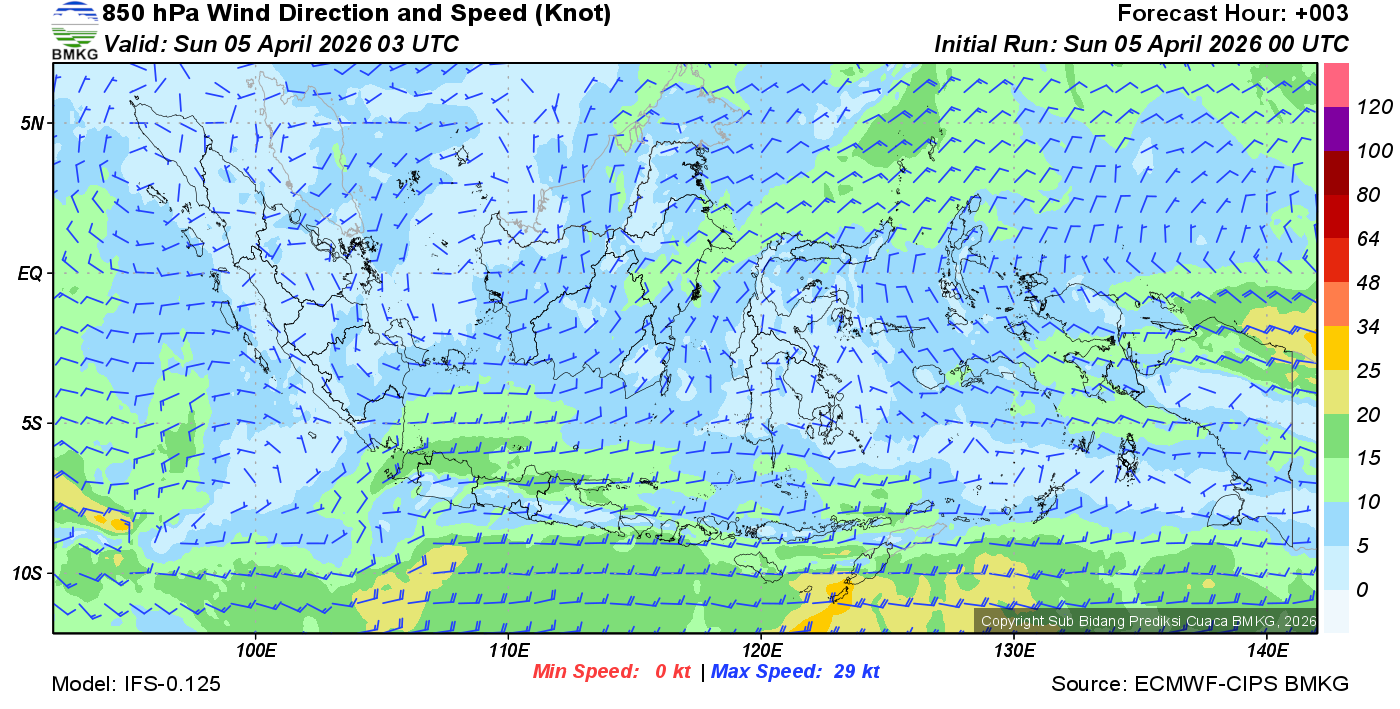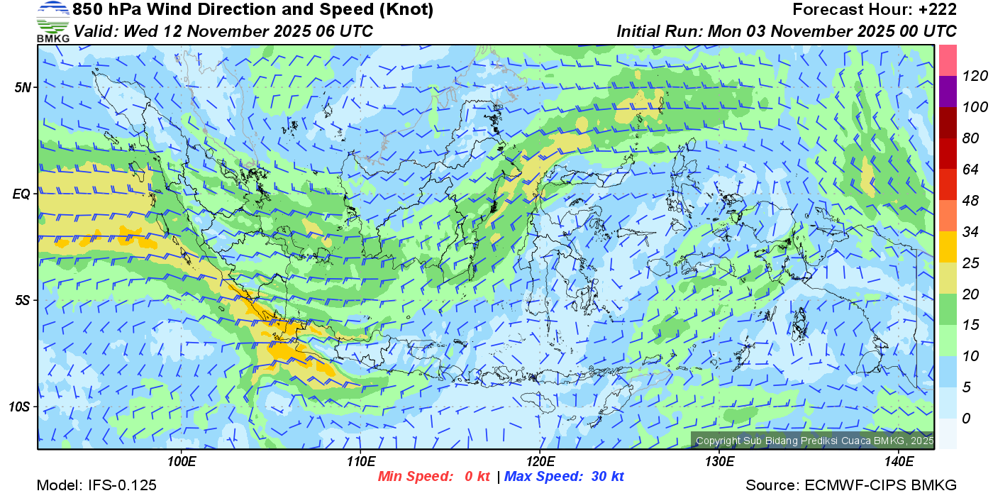 Prakiraan Angin Lapisan 850 Gunung Awu