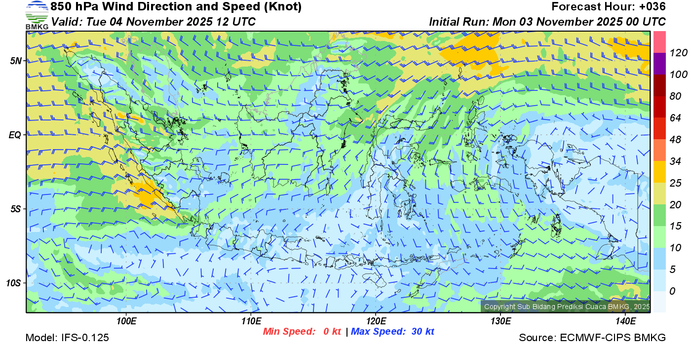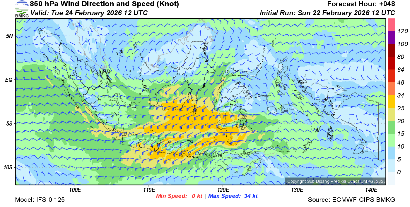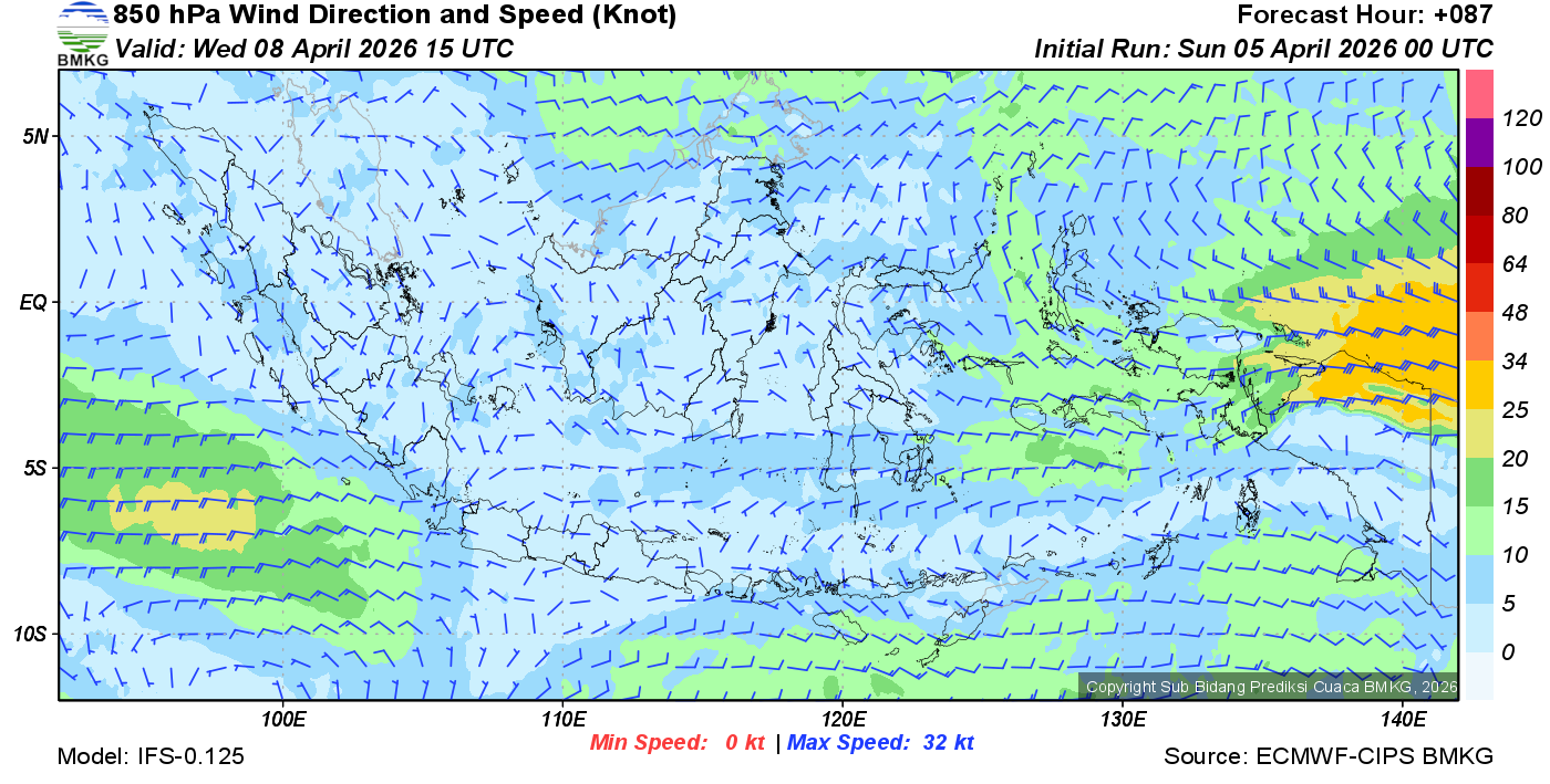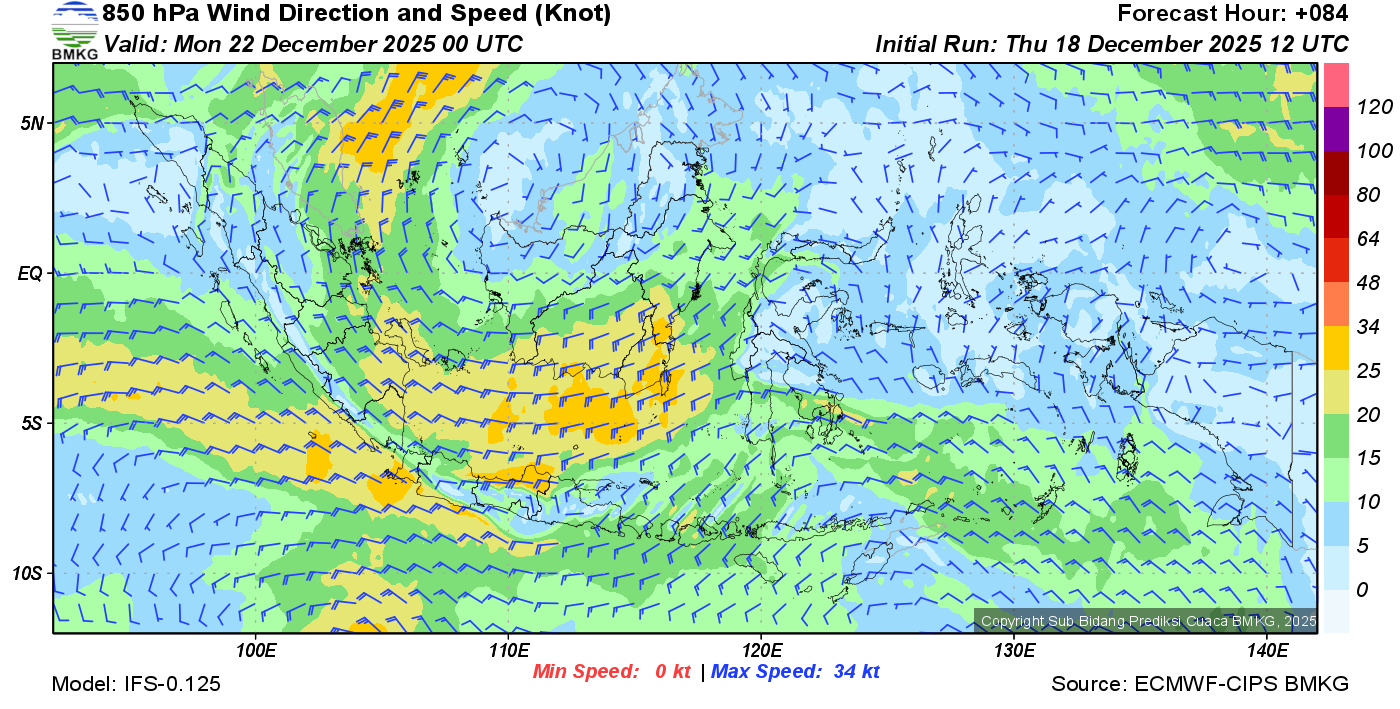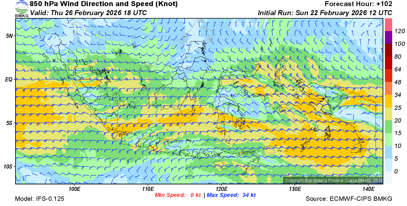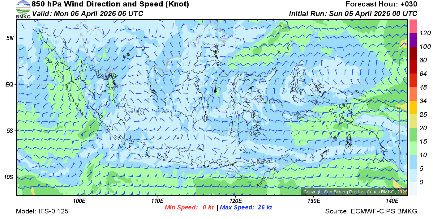 Prakiraan Angin Lapisan 850 Gunung Awu