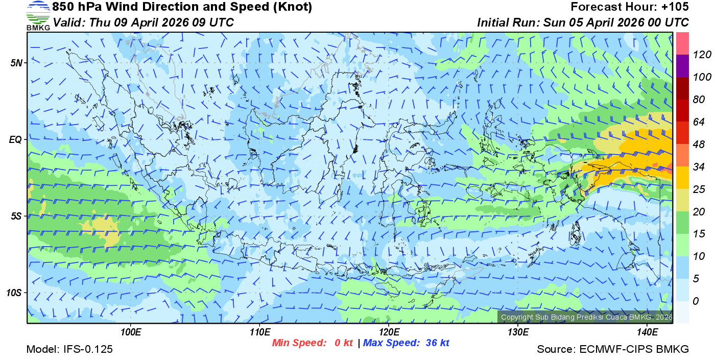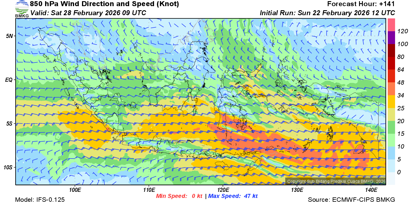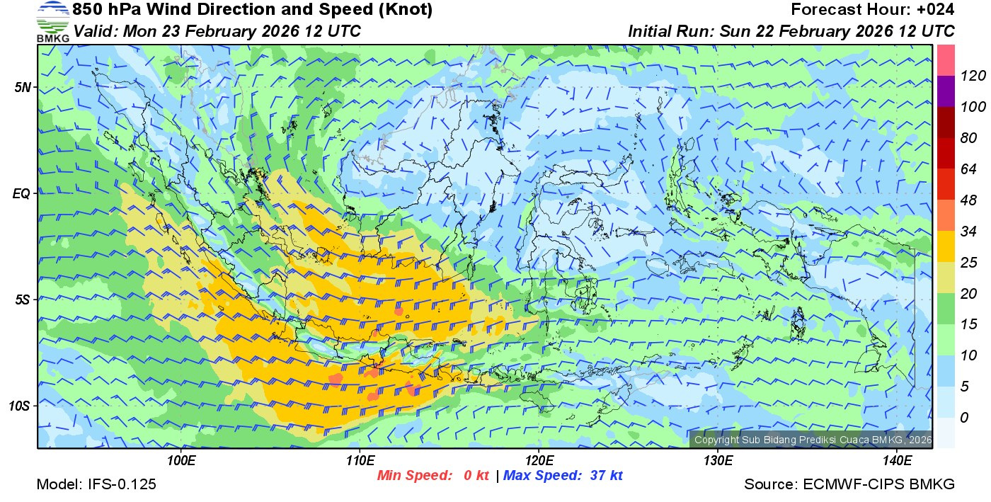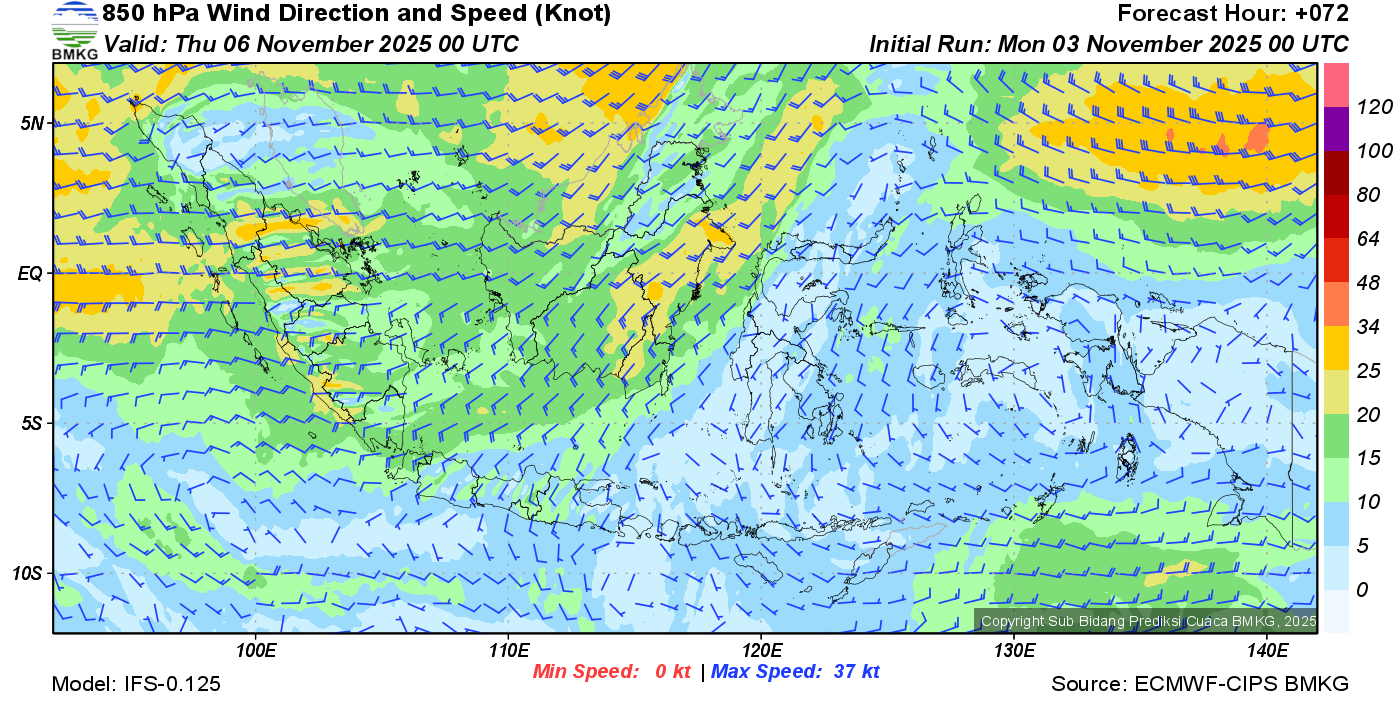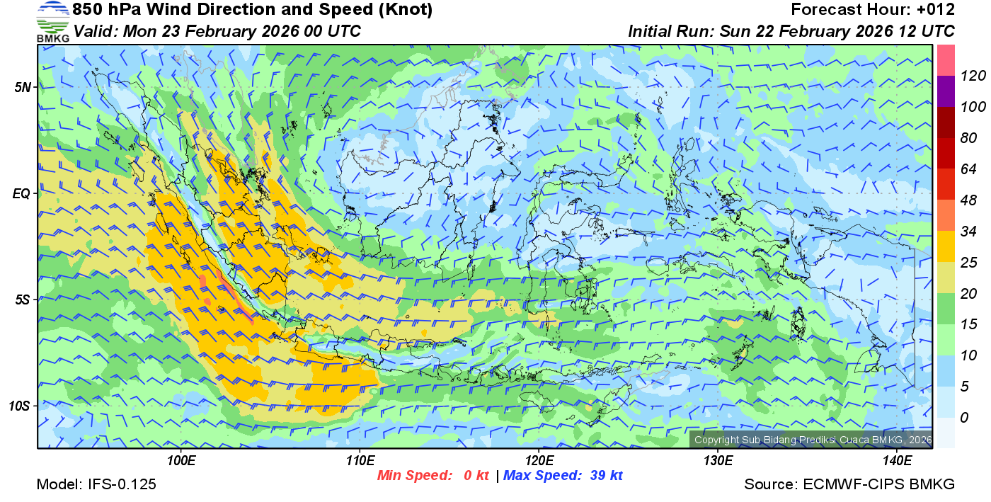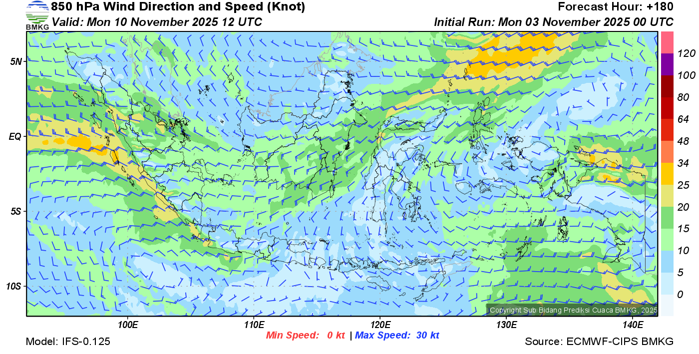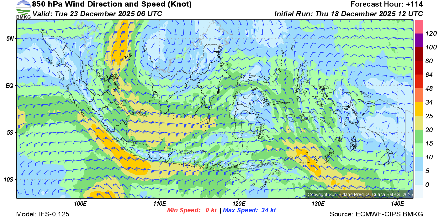 Prakiraan Angin Lapisan 850 Gunung Awu