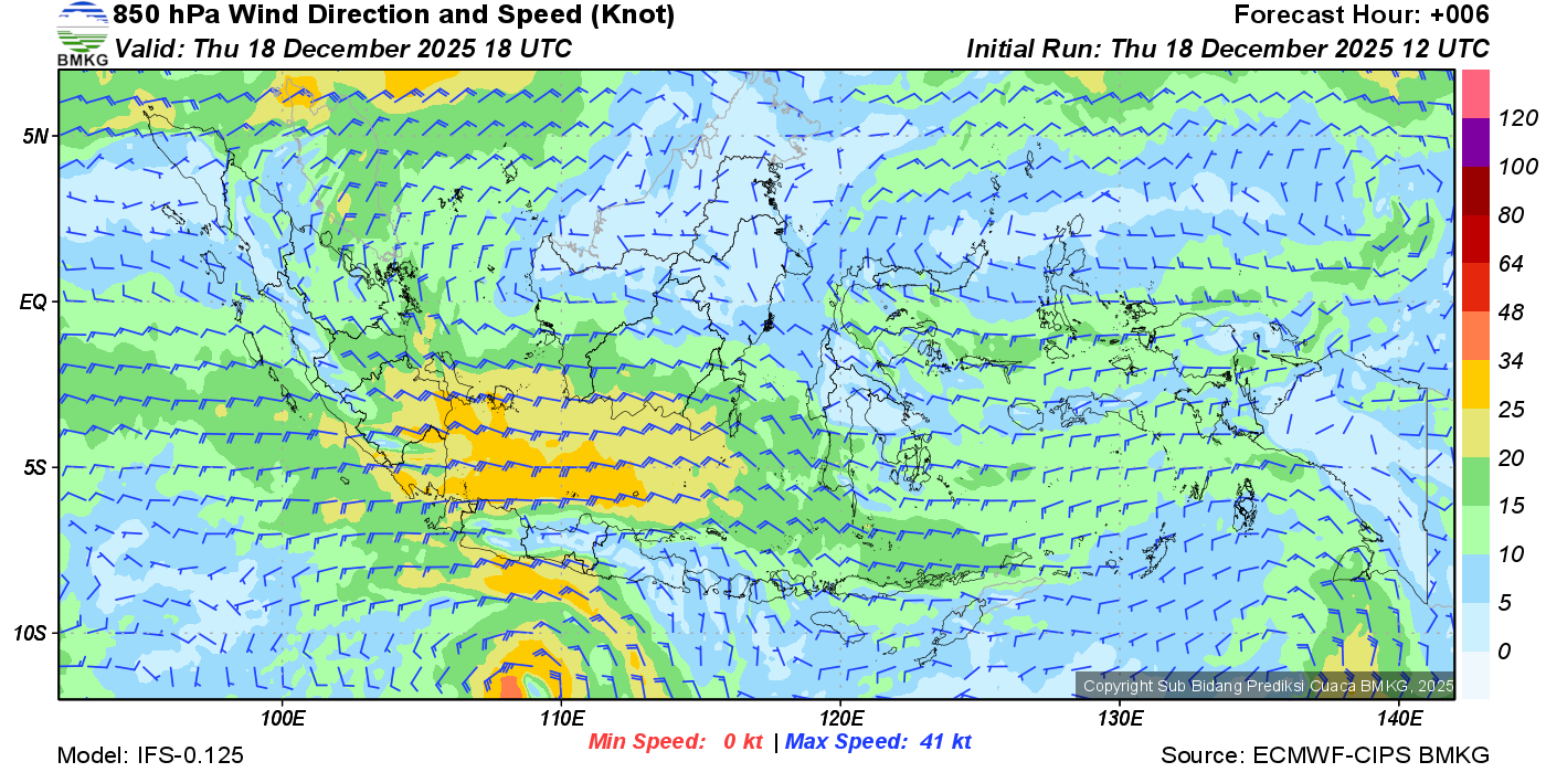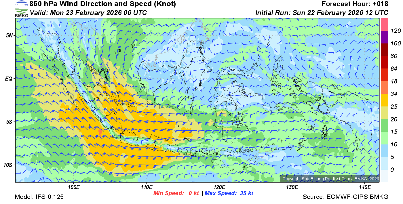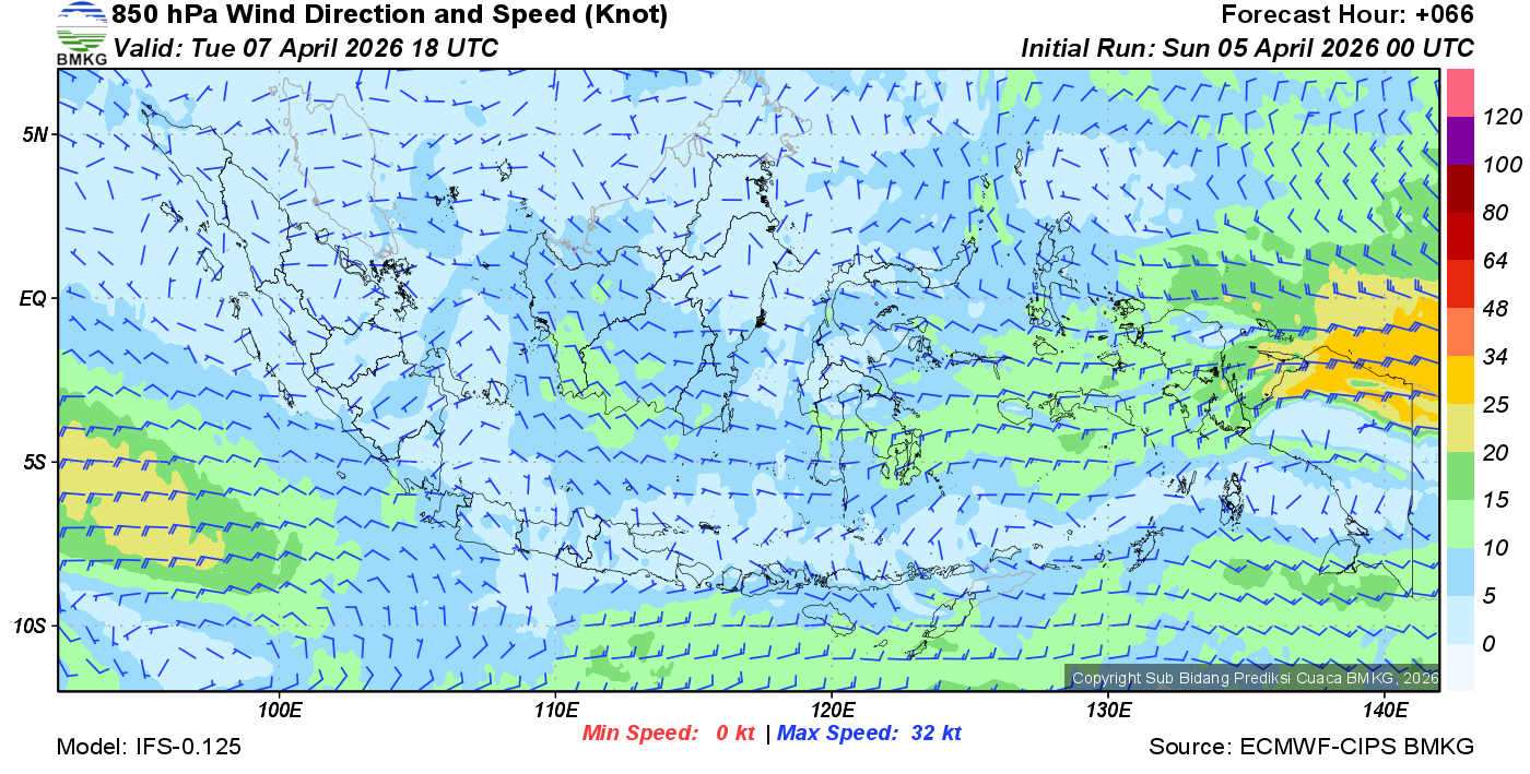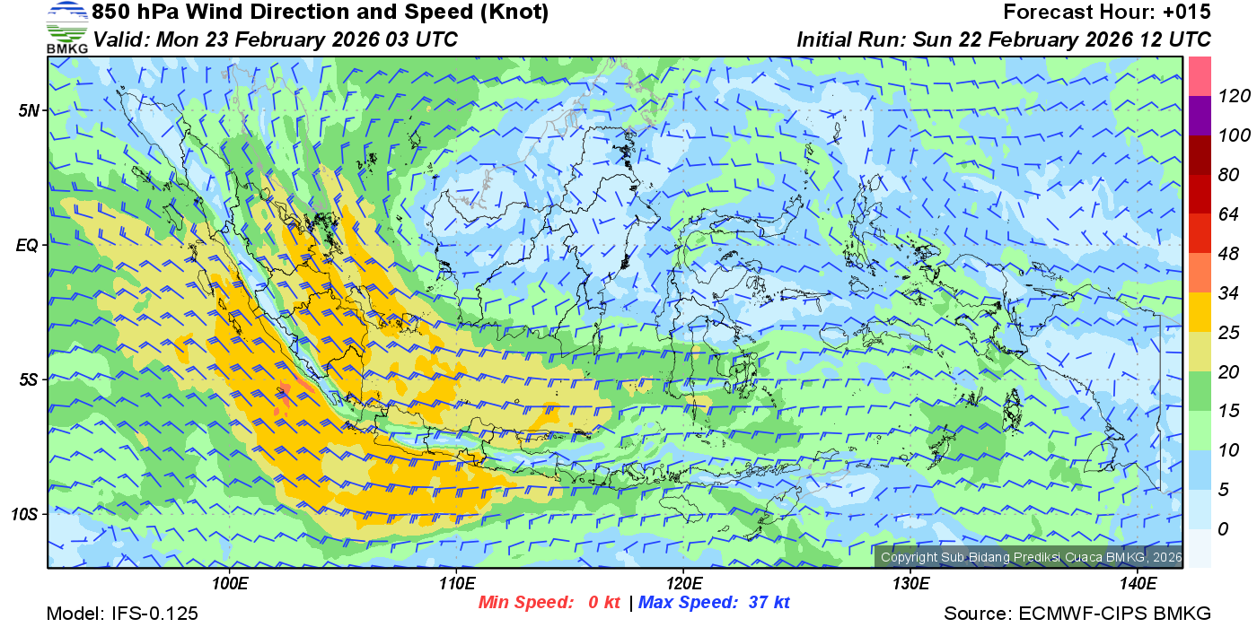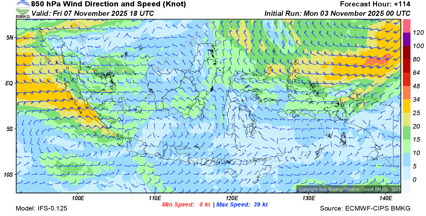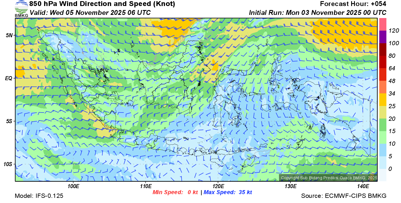 Prakiraan Angin Lapisan 850 Gunung Awu