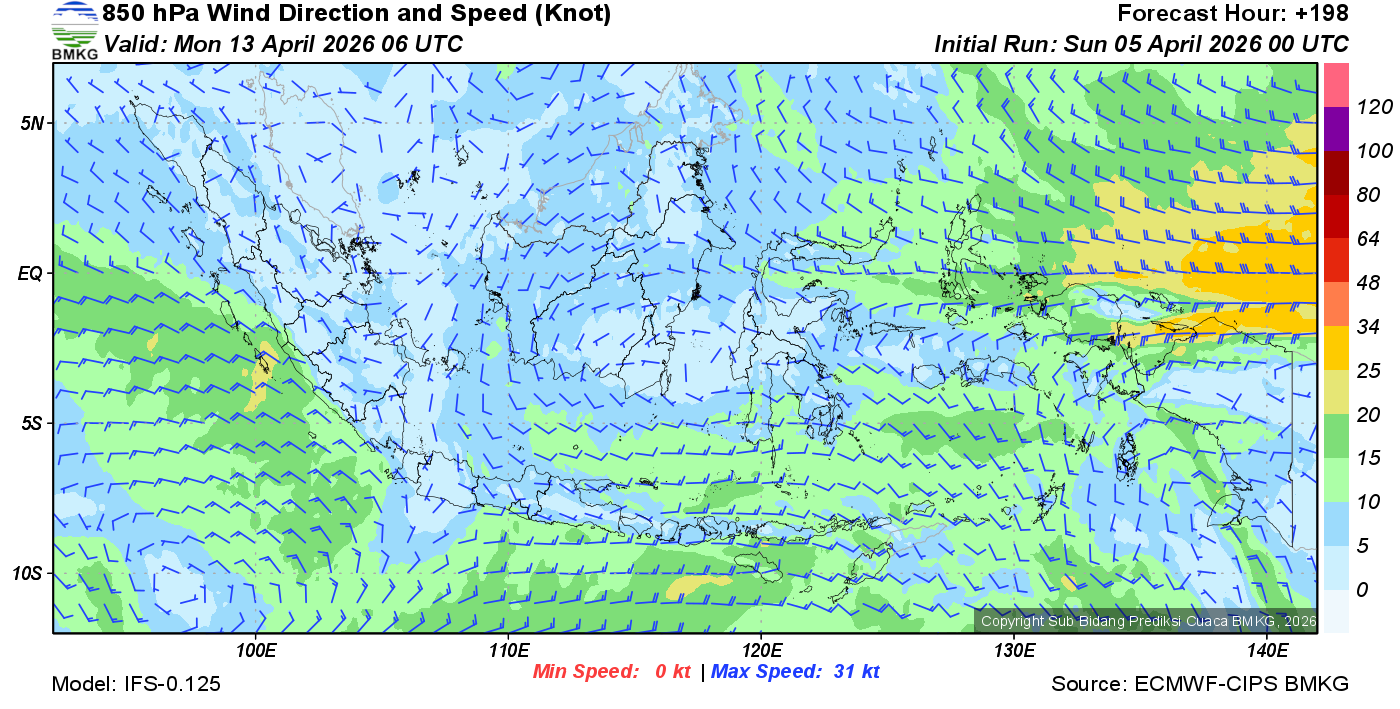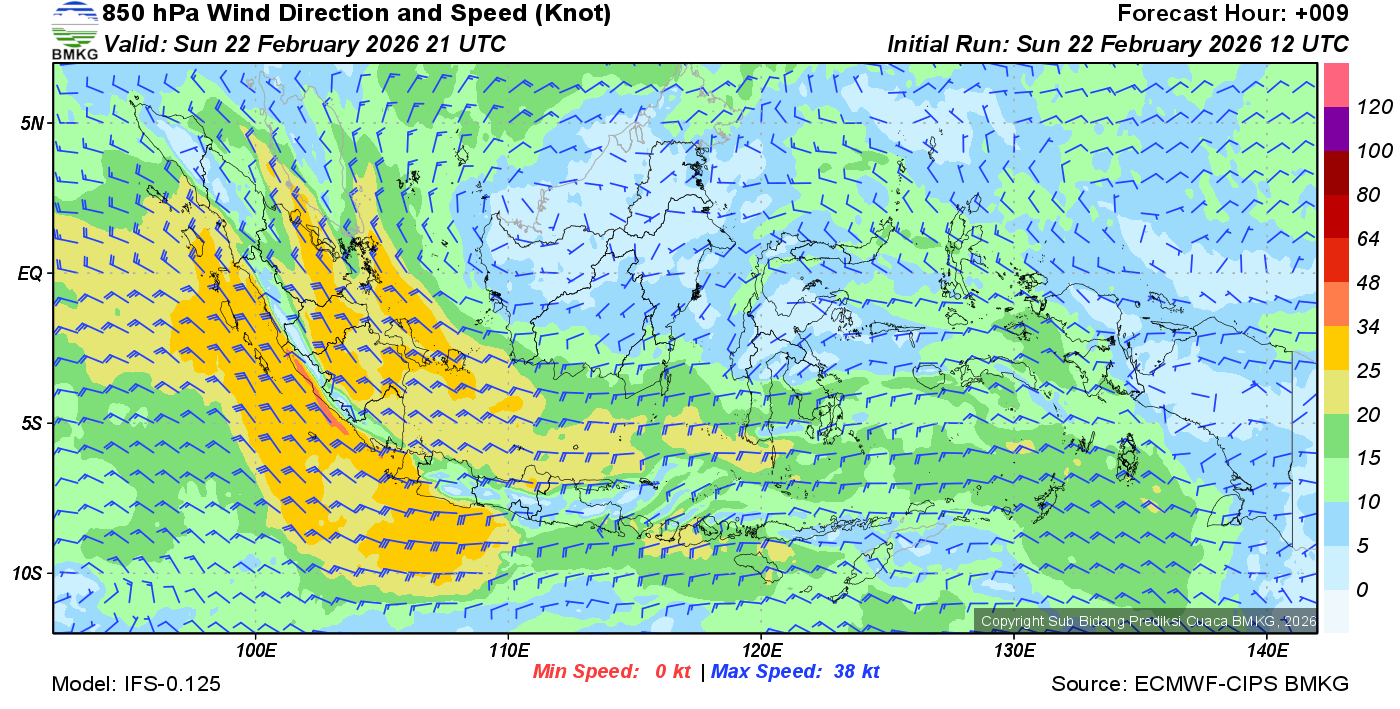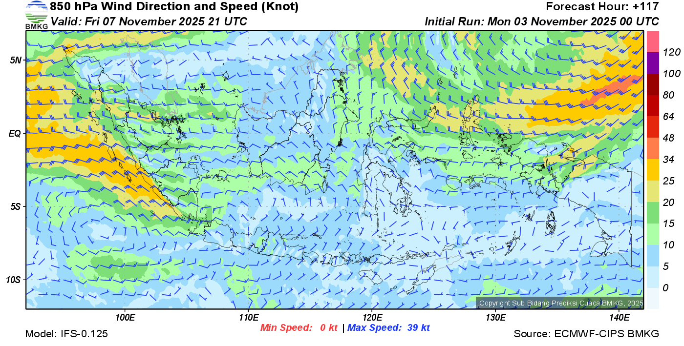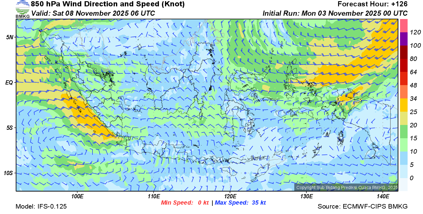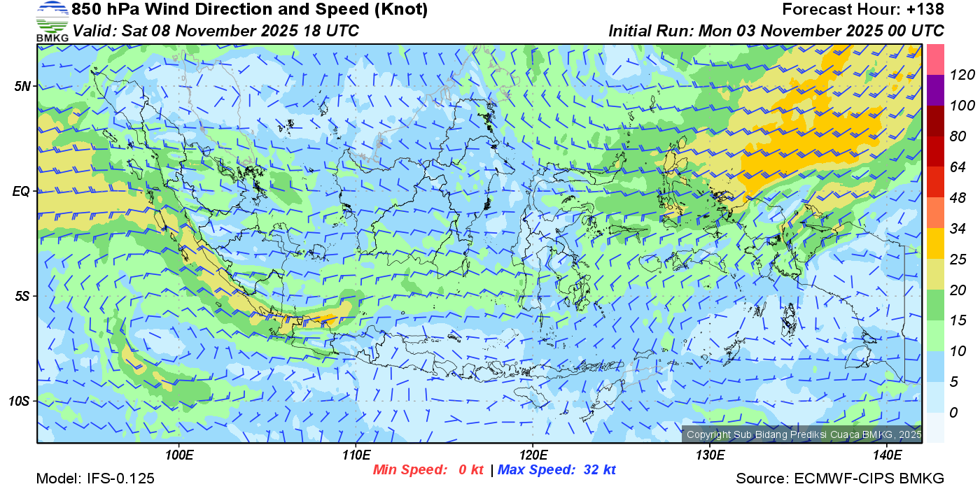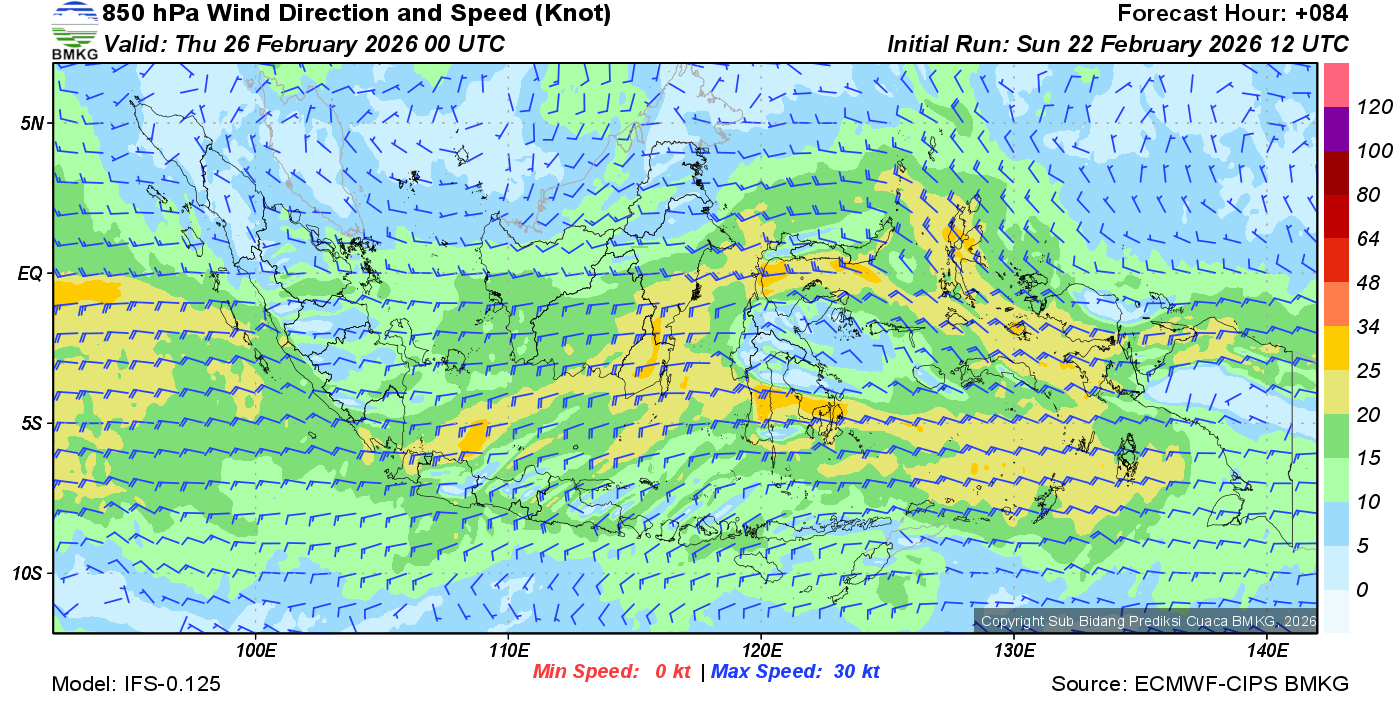 Prakiraan Angin Lapisan 850 Gunung Awu